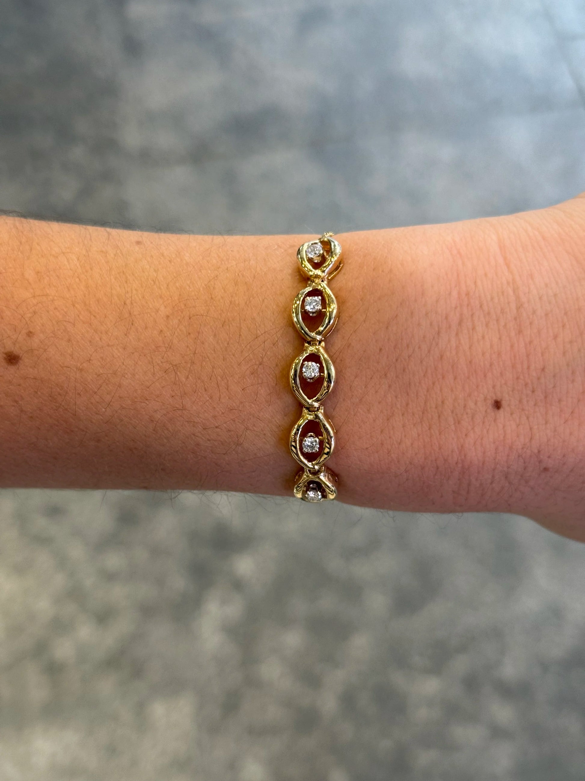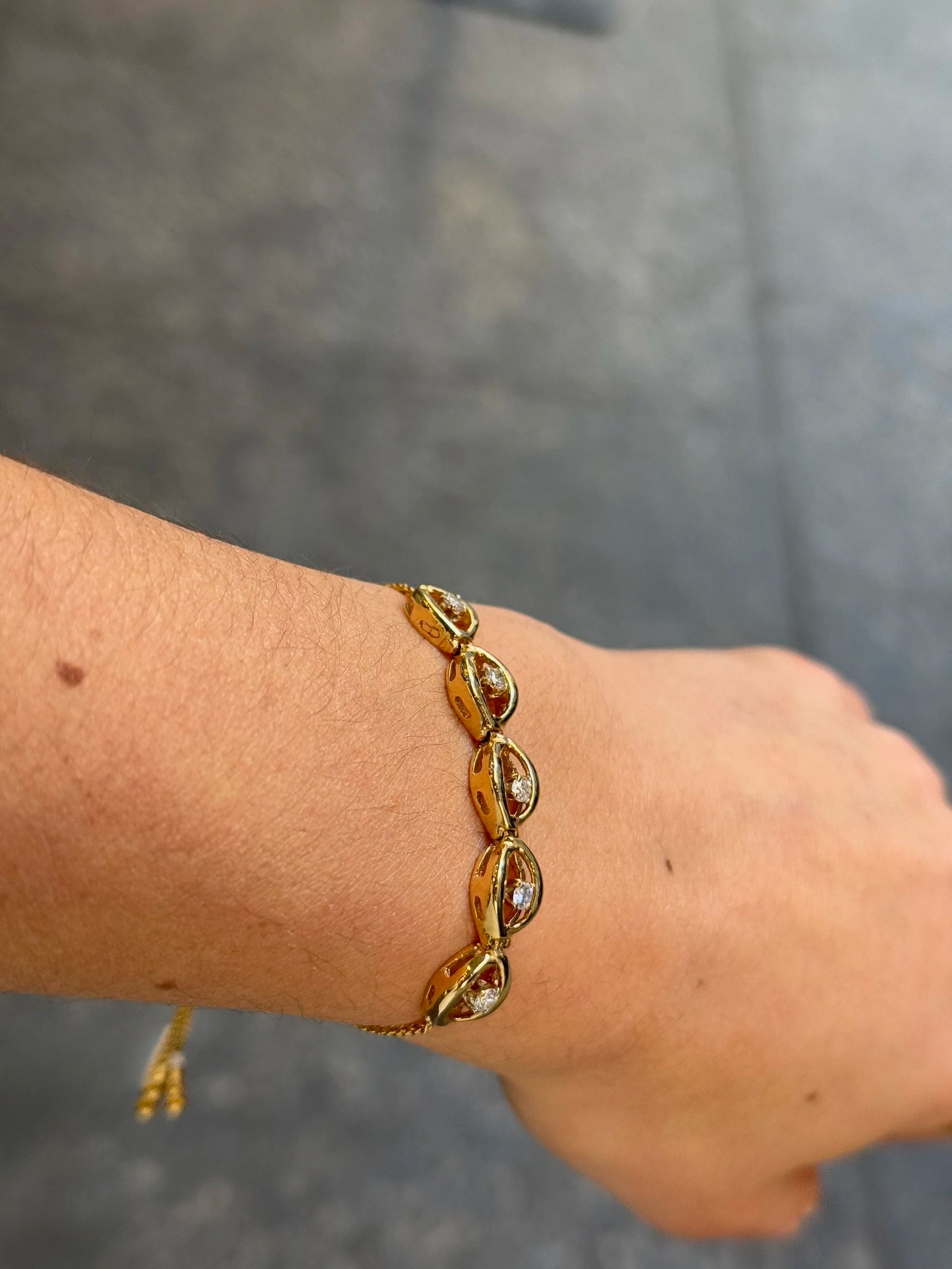 Ladies Adjustable Five Spaced Out Gold and Center Diamond Bracelet