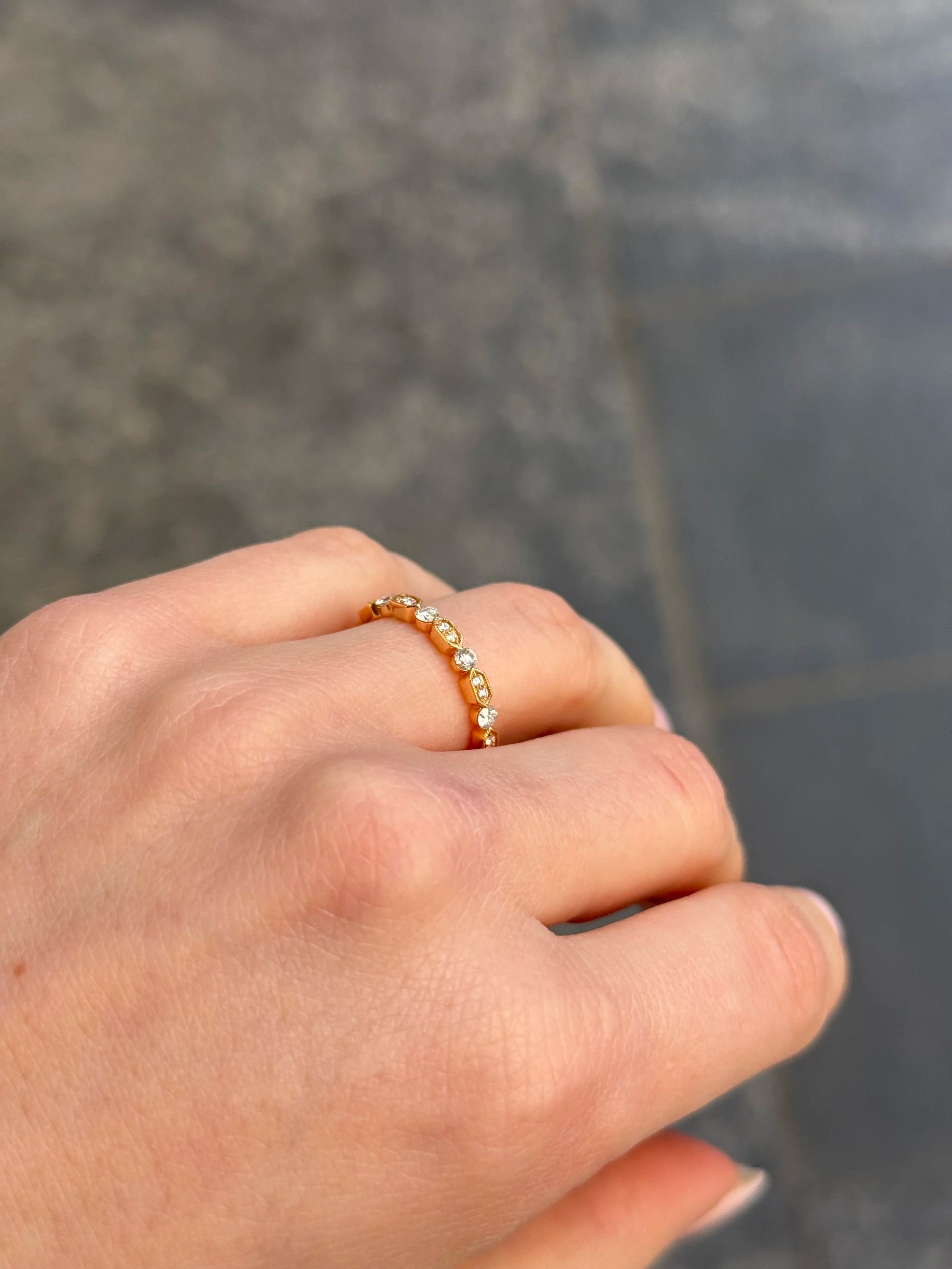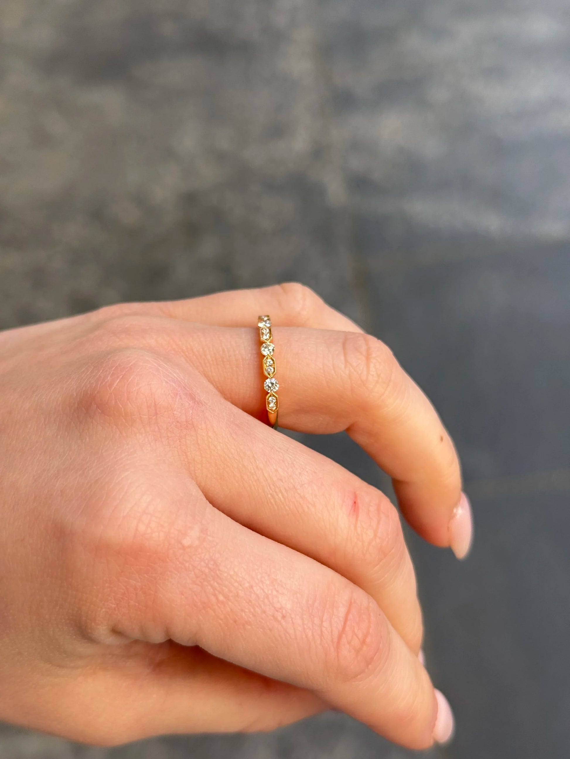 Ladies Alternating Double Stone Milgrain and Bezel Set Wedding Band