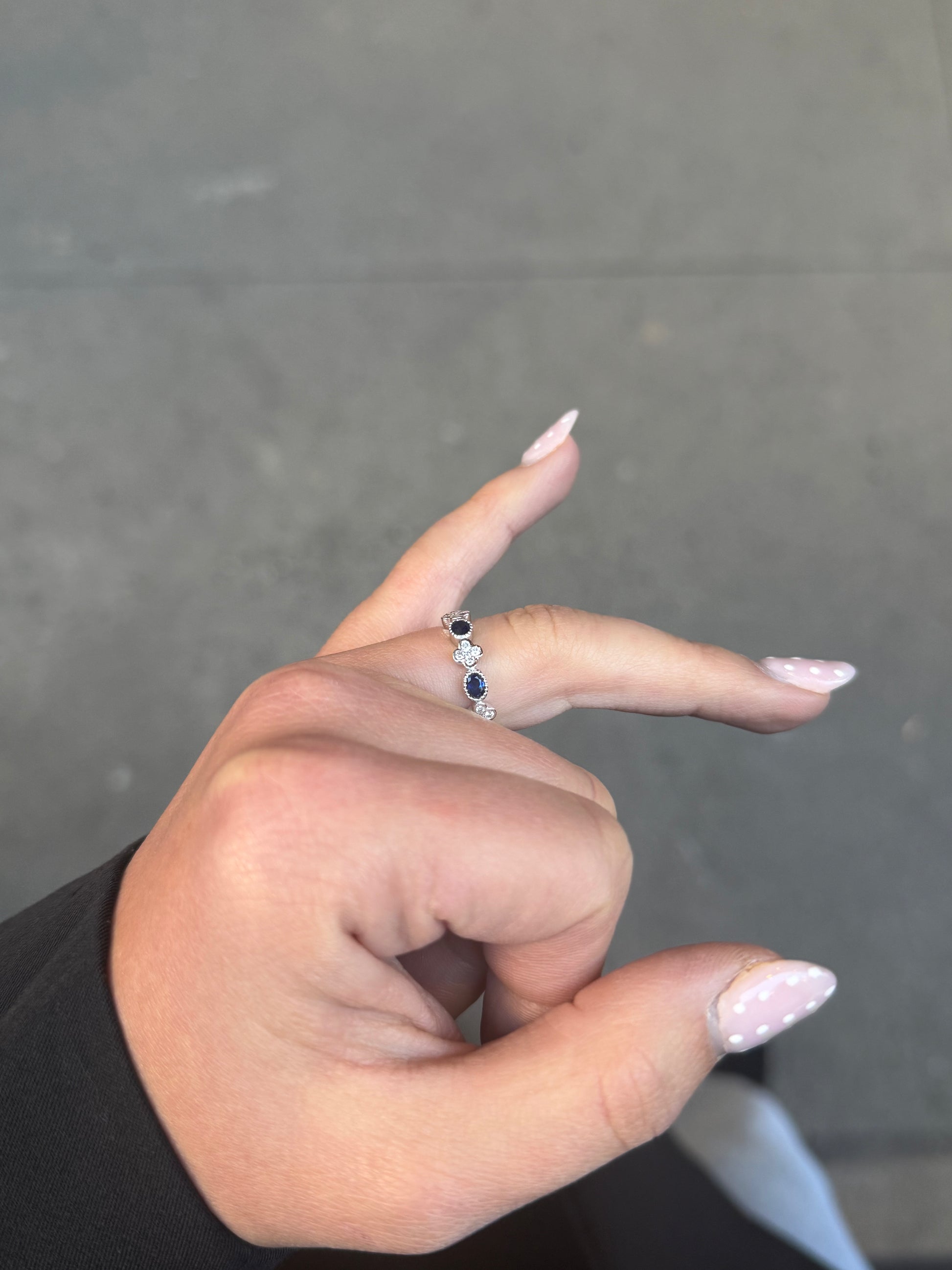 Ladies Alternating Oval Sapphire and Clover Band