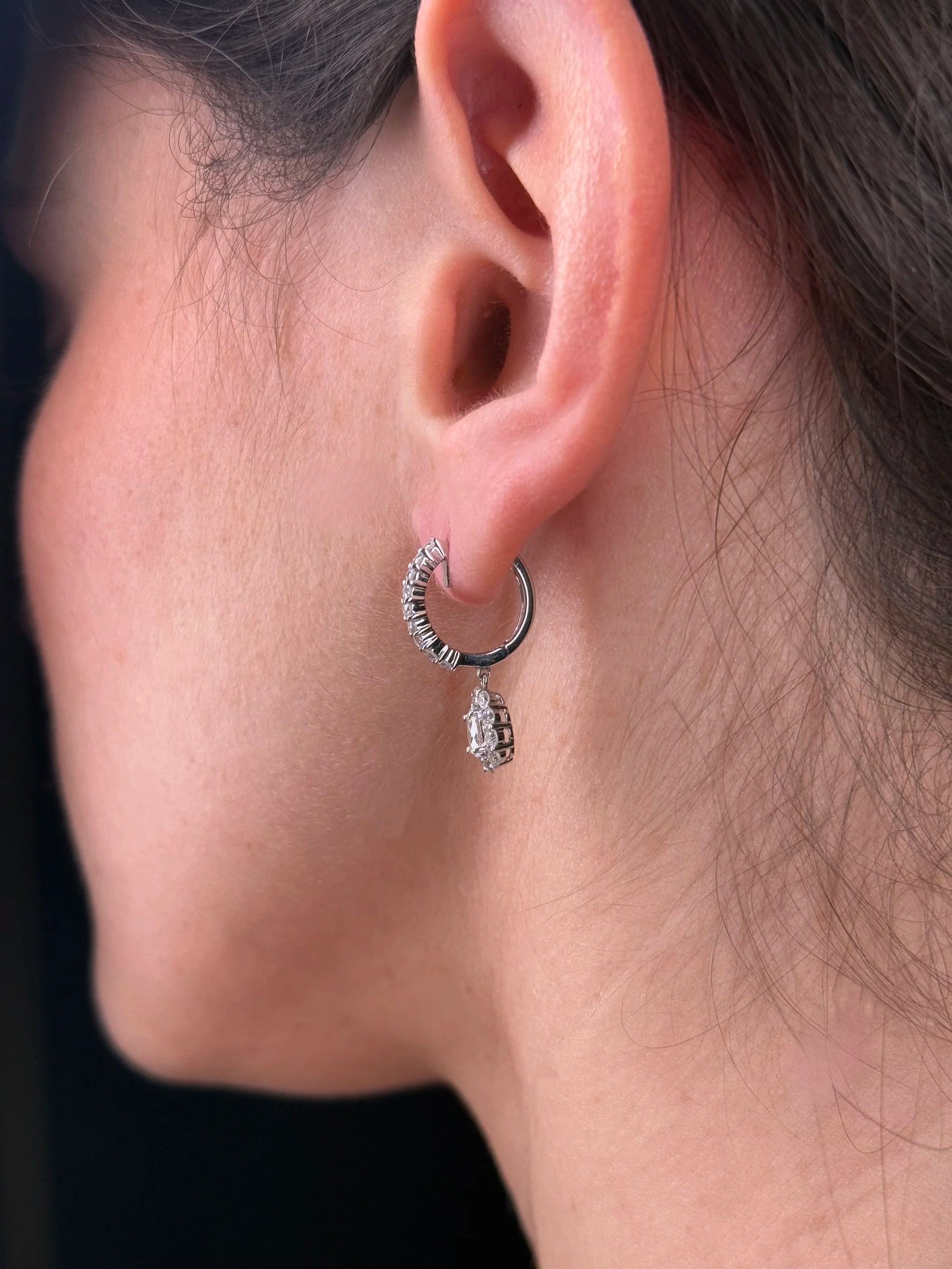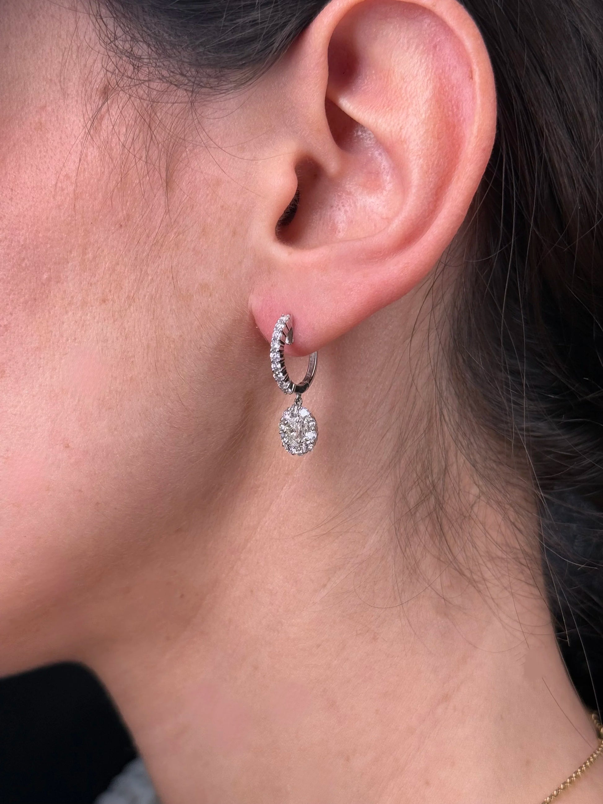Ladies Center Oval Stone Dangle Diamond Earrings