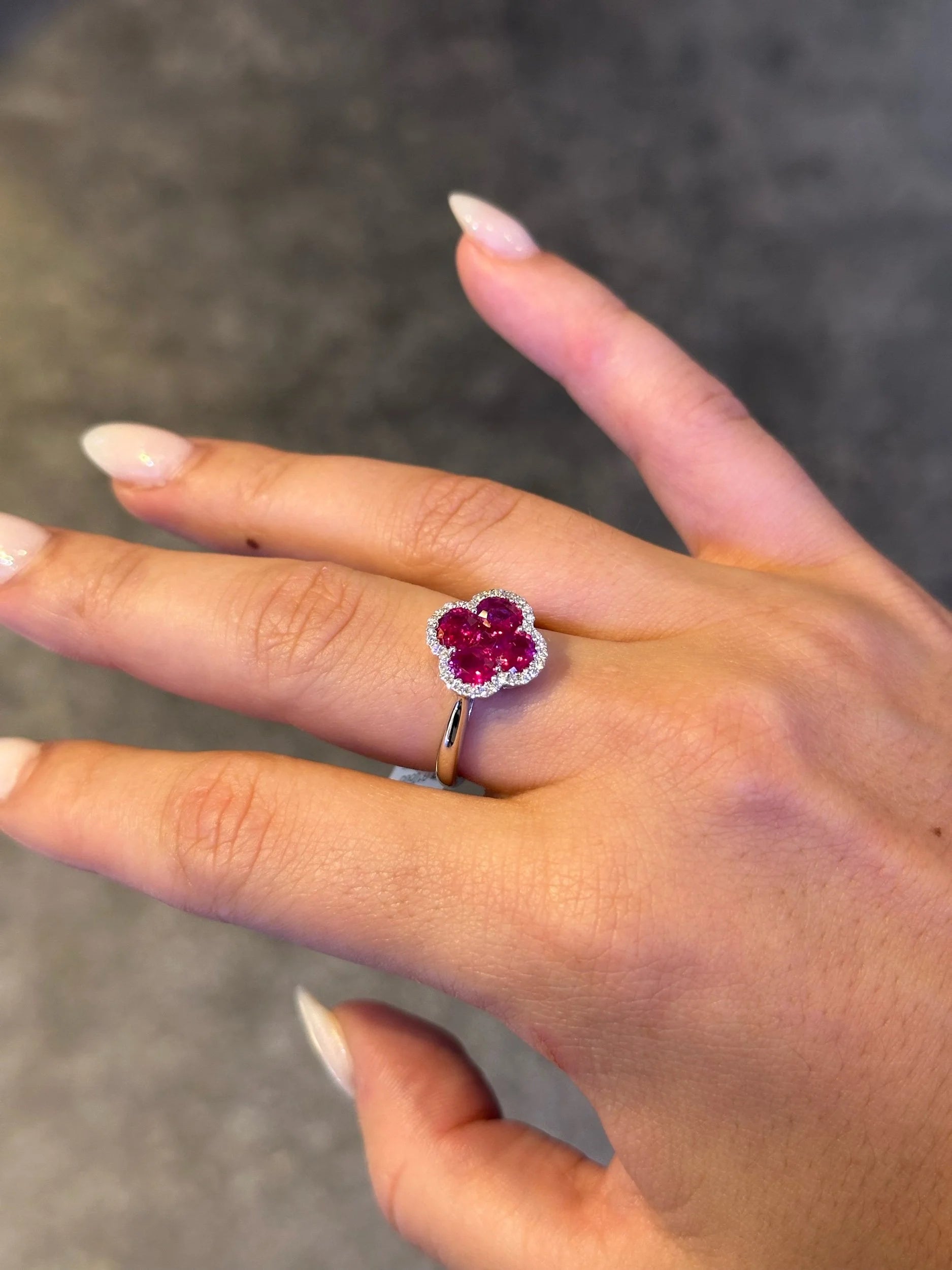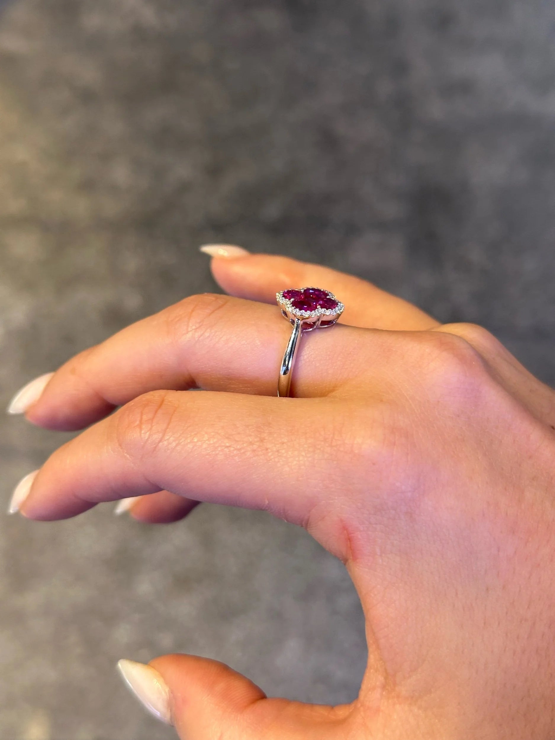 Ladies Clover Shape Ruby and Round Diamond Ring