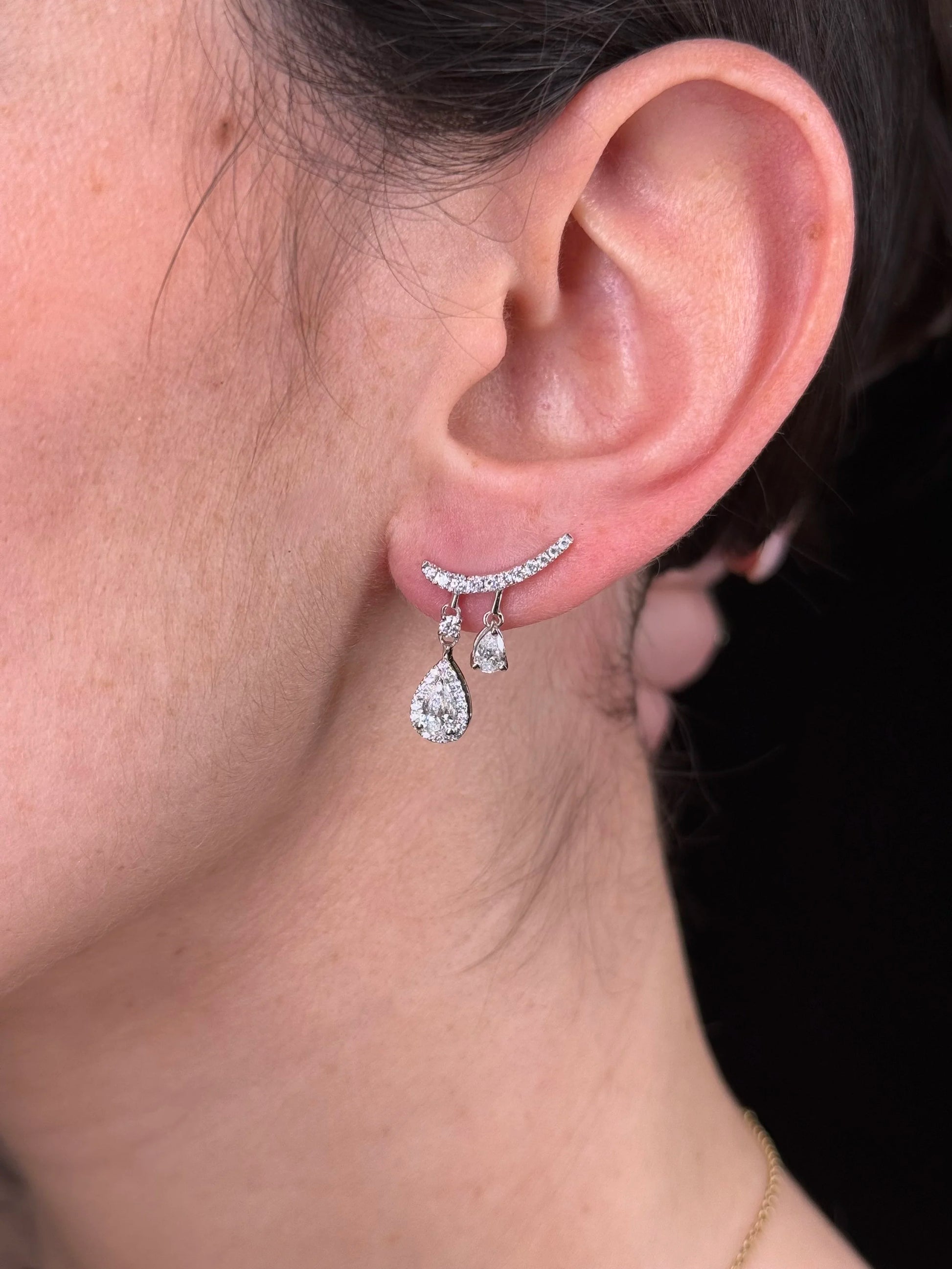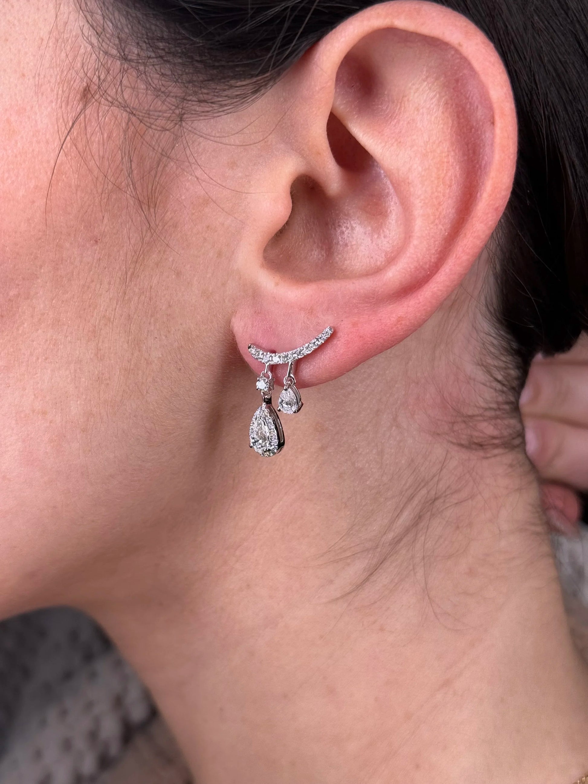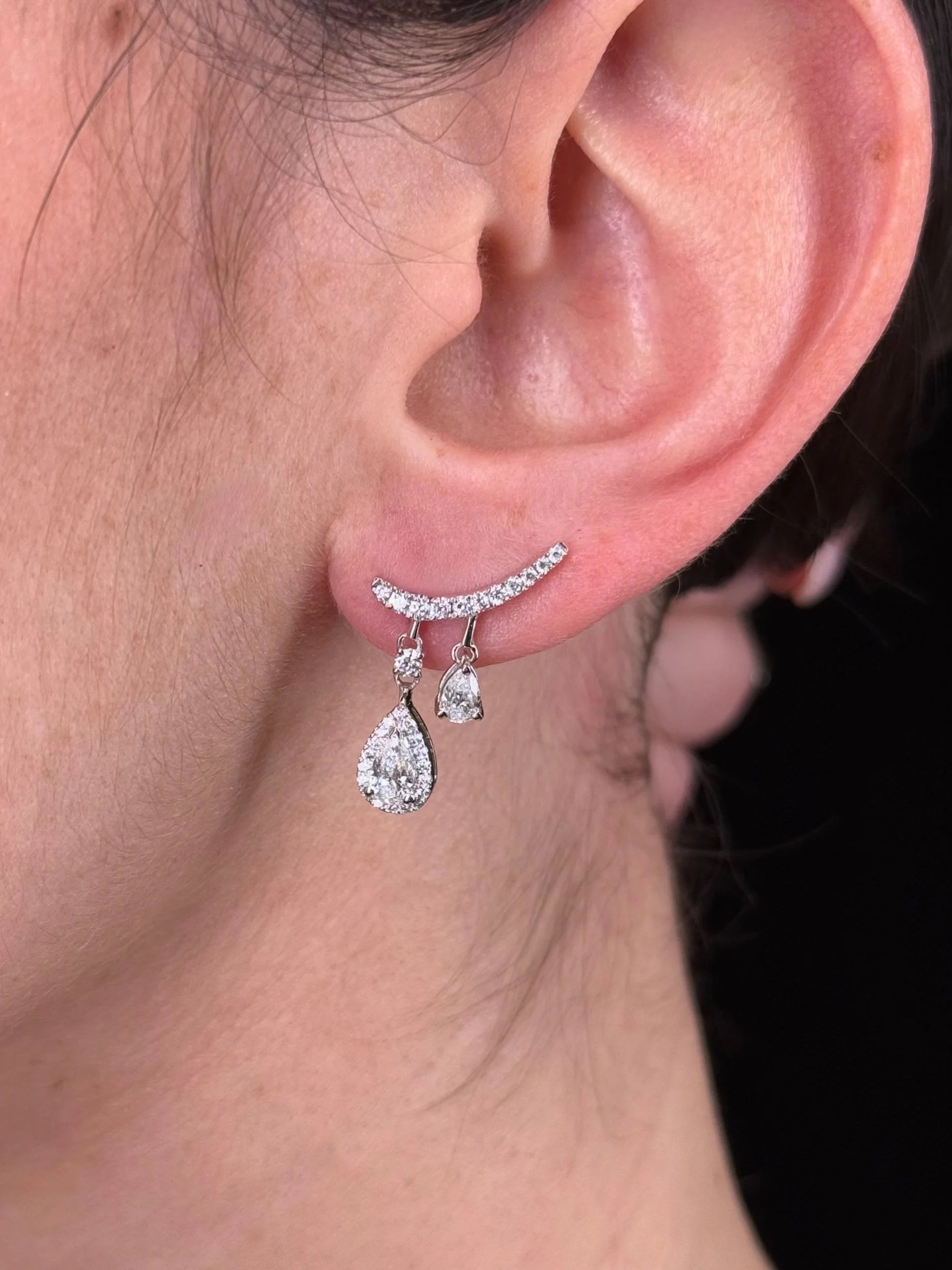 Ladies Dangle Pear and Round Diamond Climber Earrings