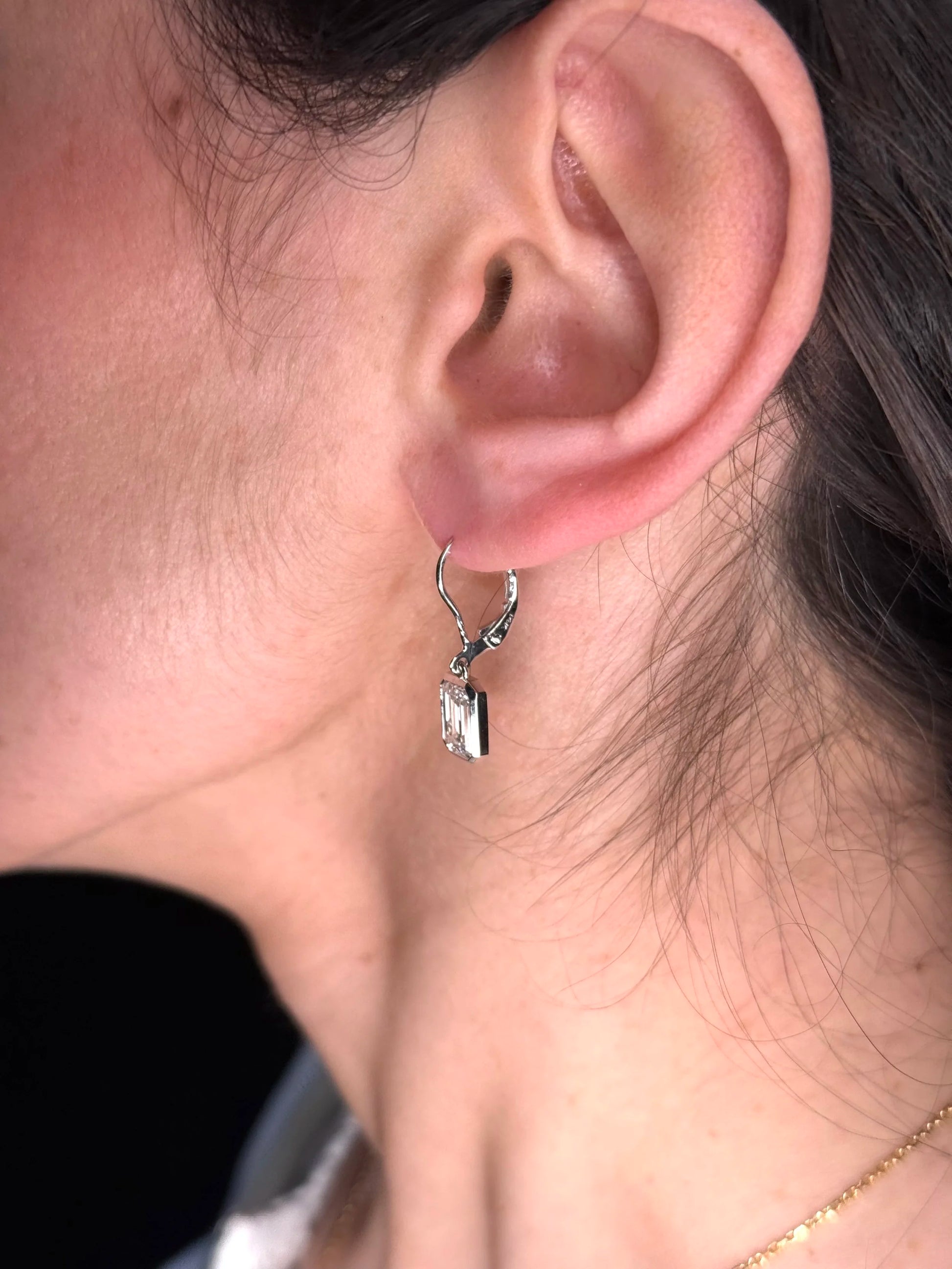 Ladies Dangling Bezel Set Emerald Lab Grown Earring