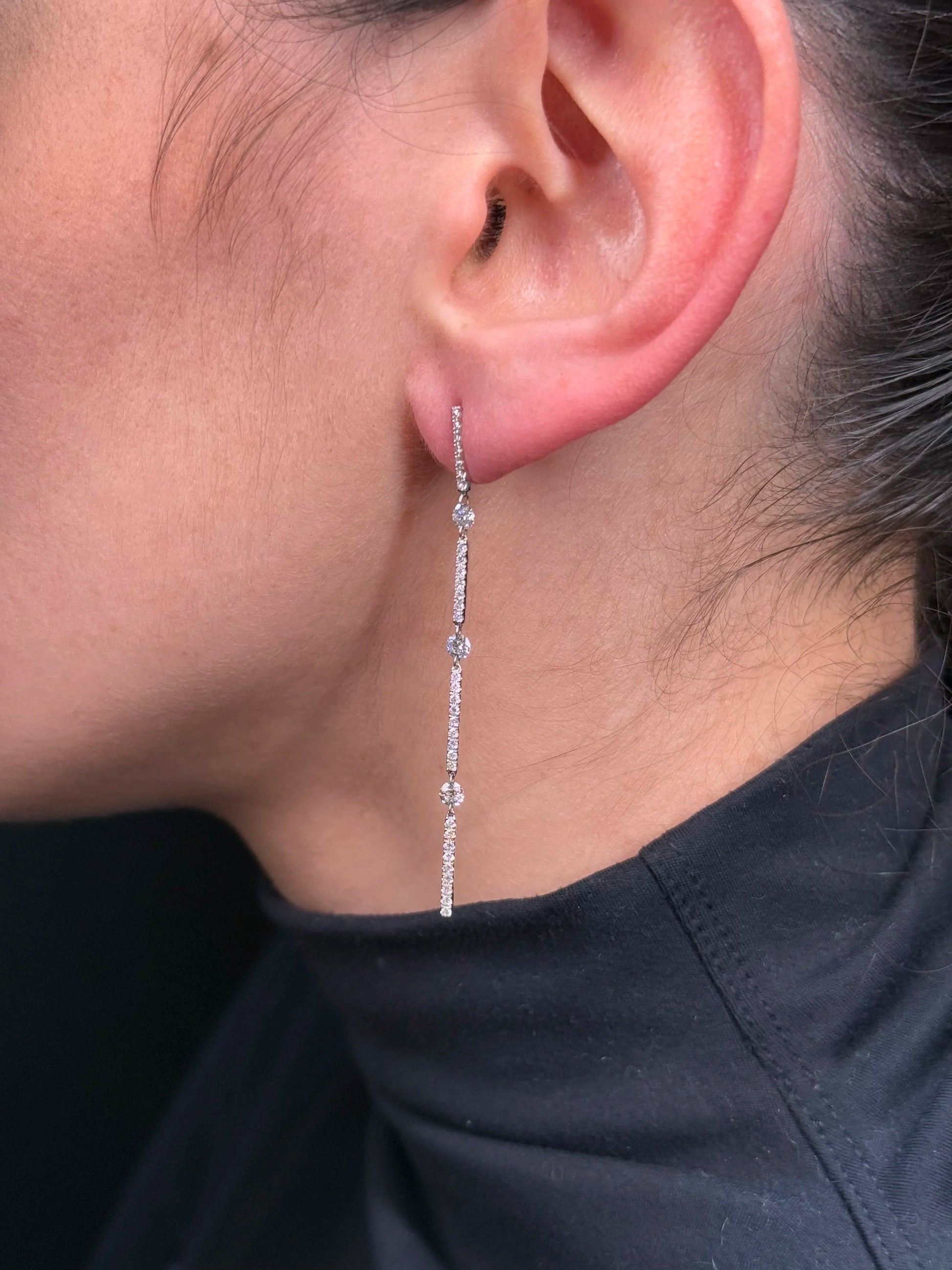 Ladies Diamond Bar with Floating Diamonds in Between Earrings