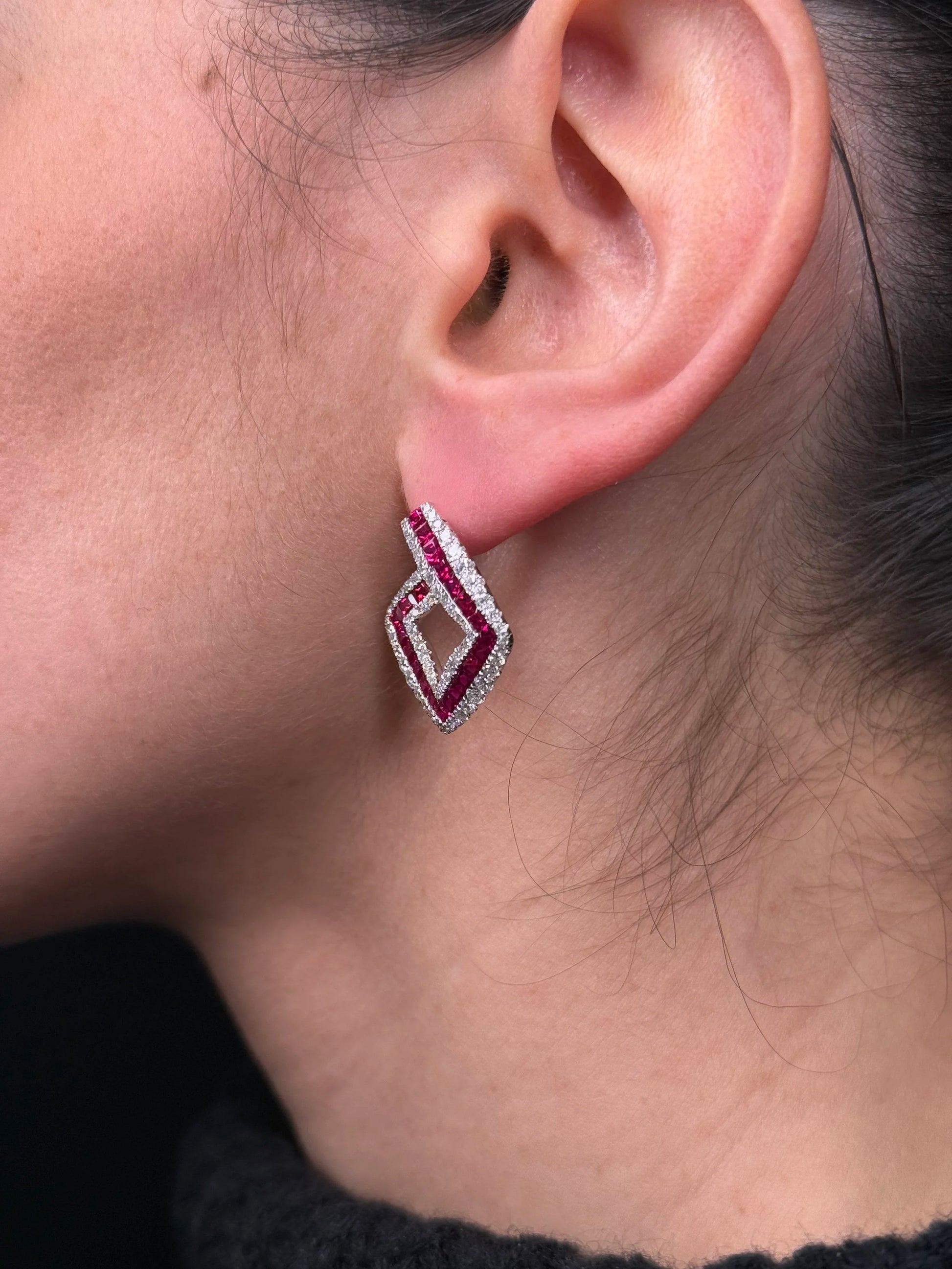 Ladies Diamond Shape Ruby and Diamond Earrings