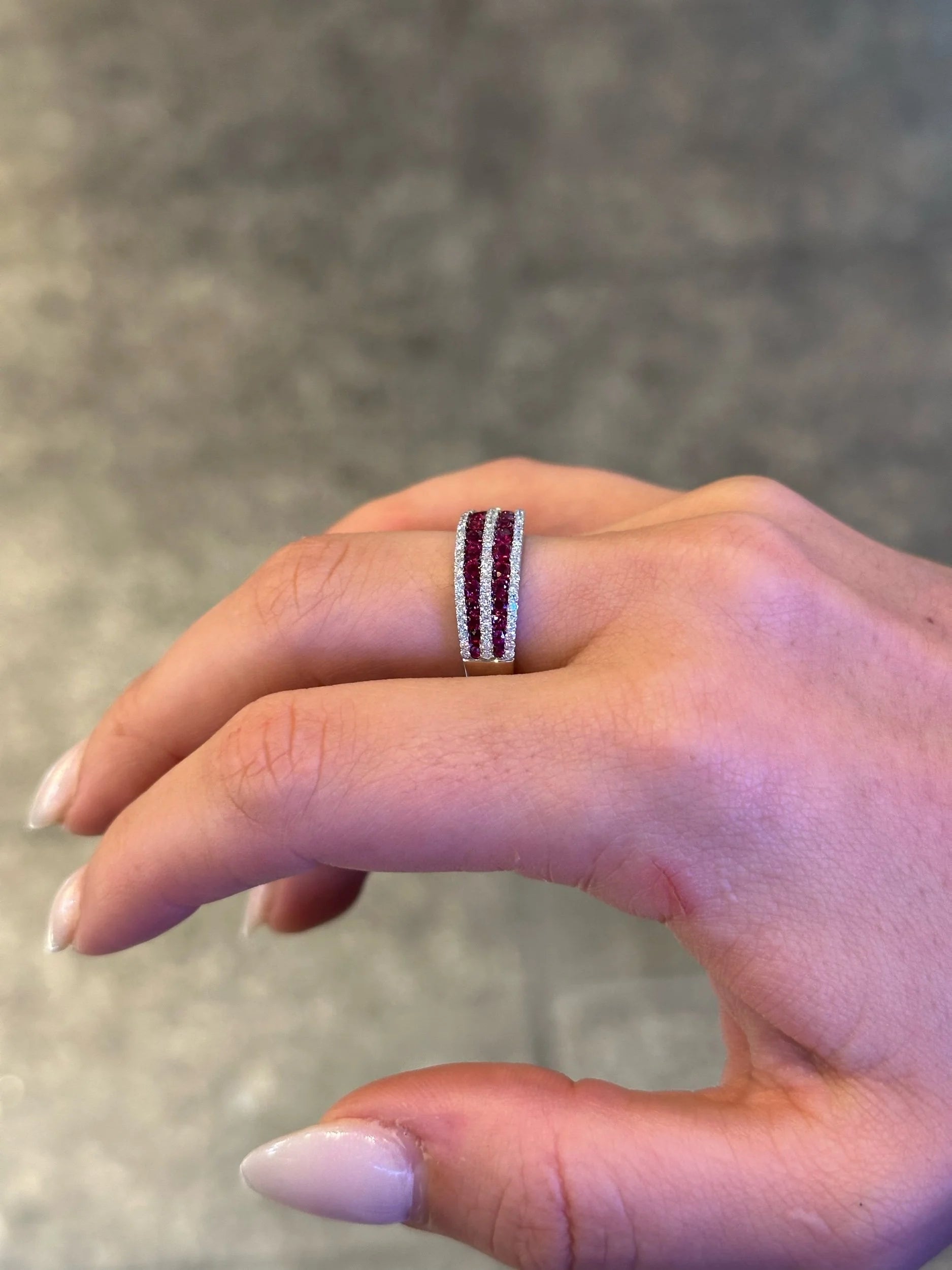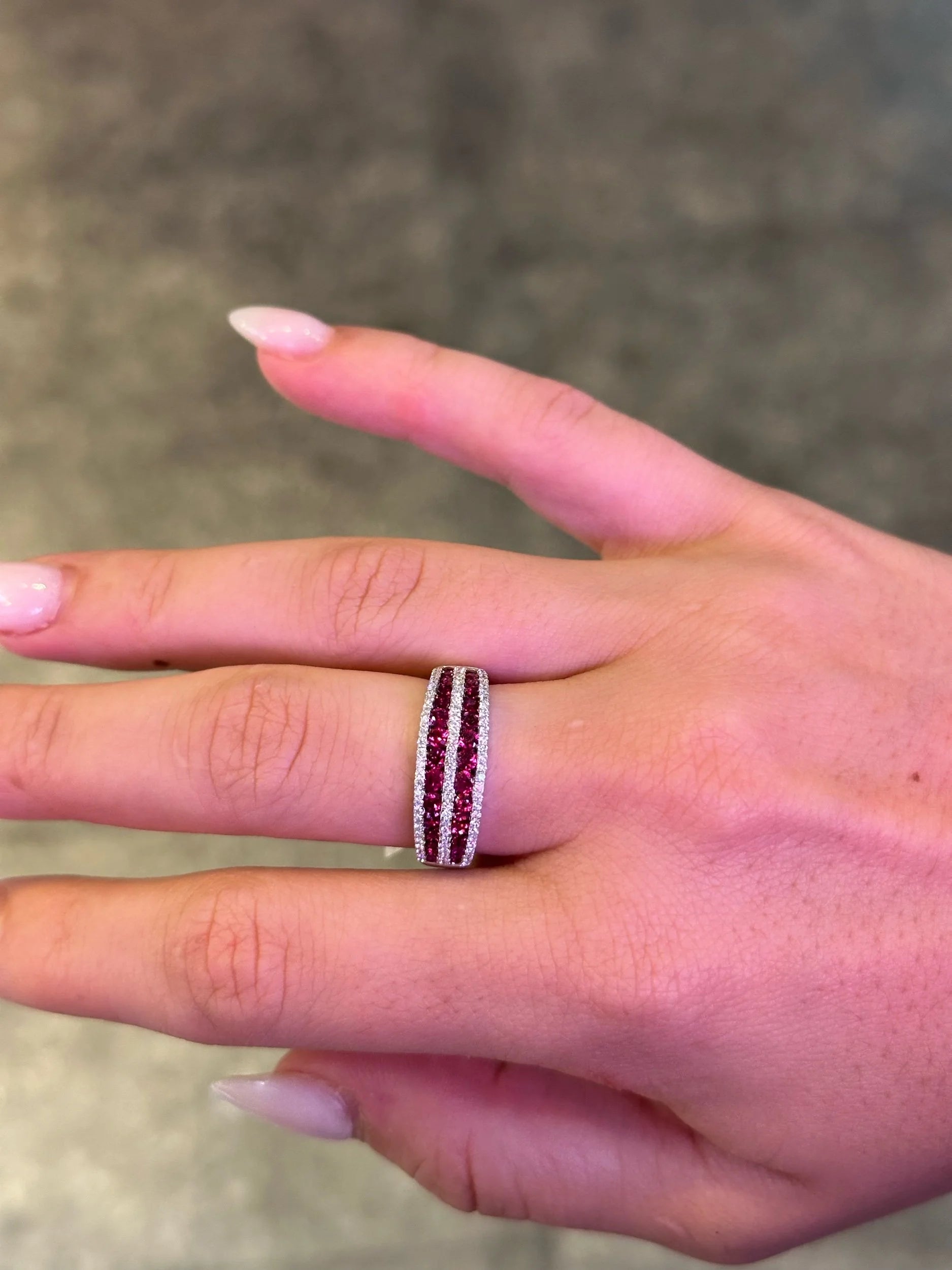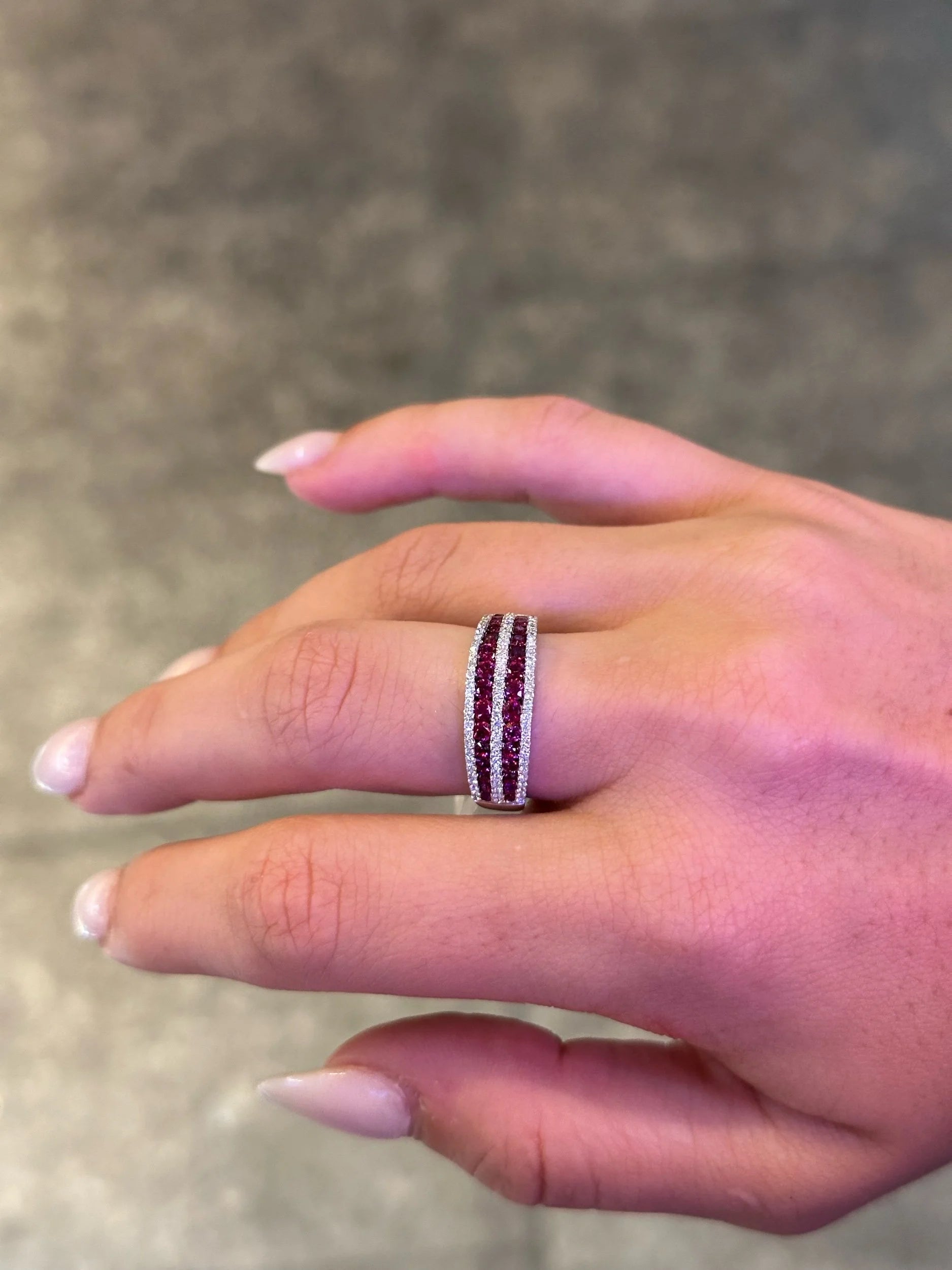 Ladies Double Row Ruby and Triple Row Round Diamond Ring