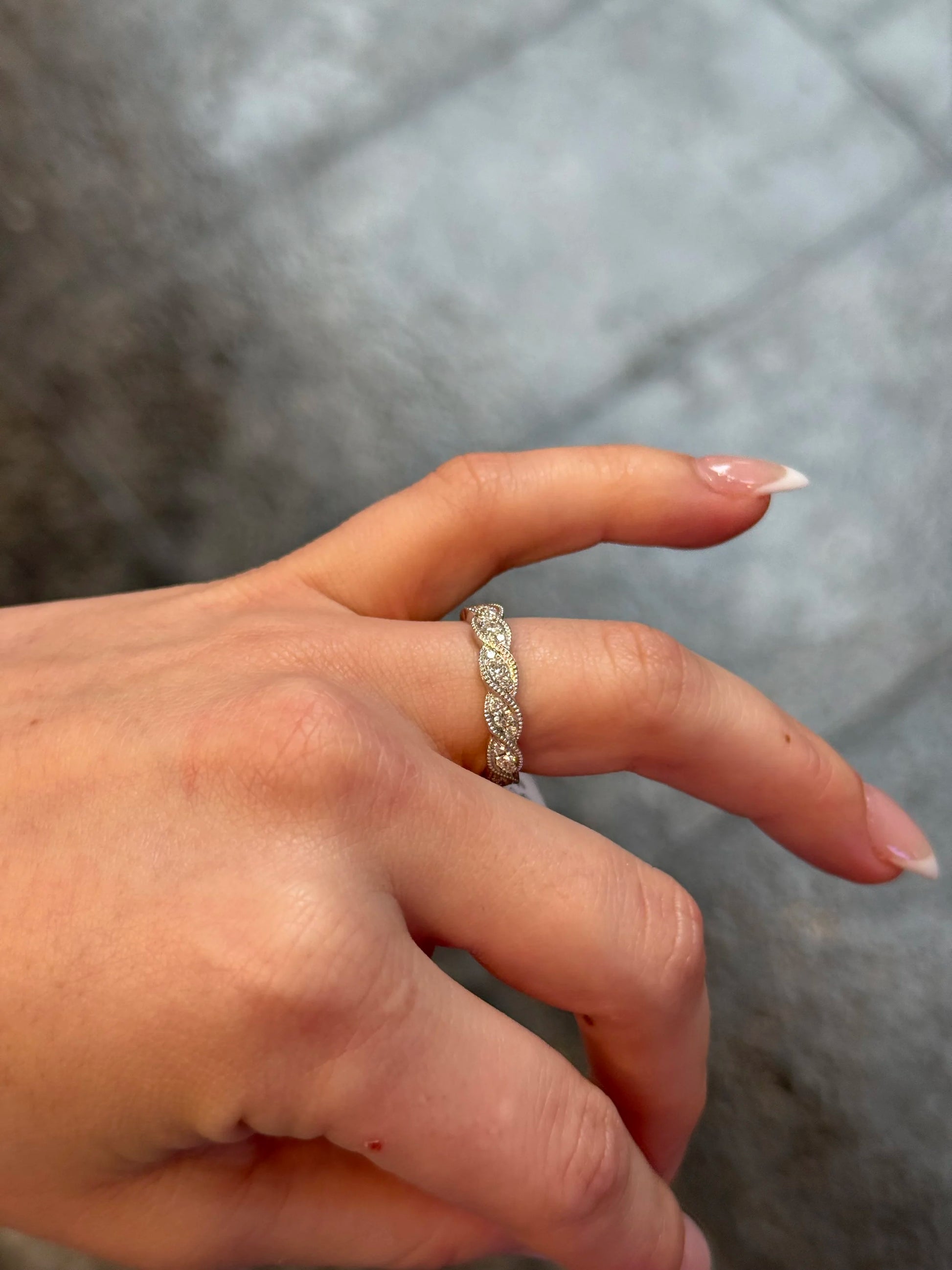 Ladies East to West Cluster and Milgrain Diamond Wedding Band
