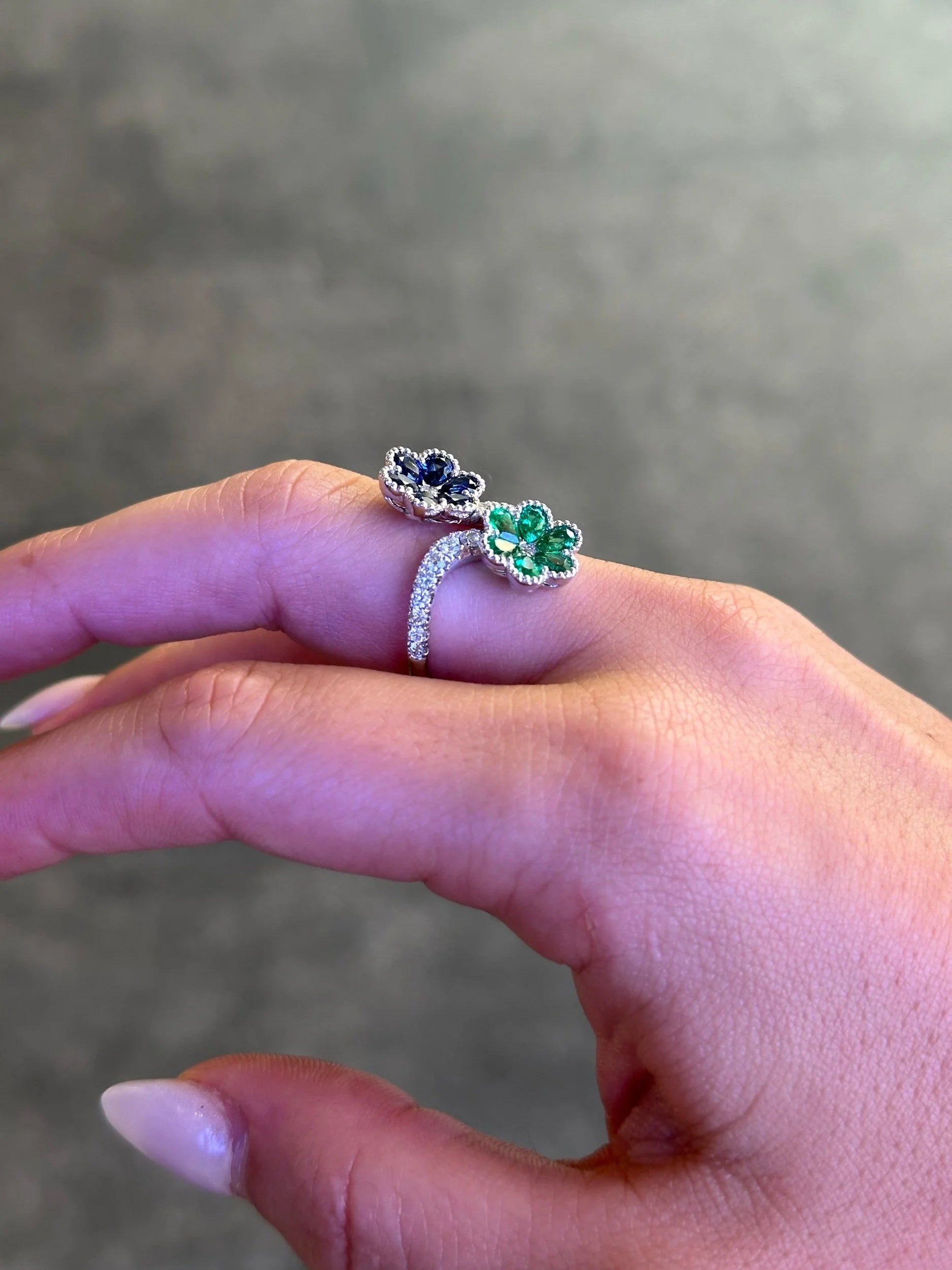 Ladies Emerald and Sapphire Stone Flower Round Diamond Ring