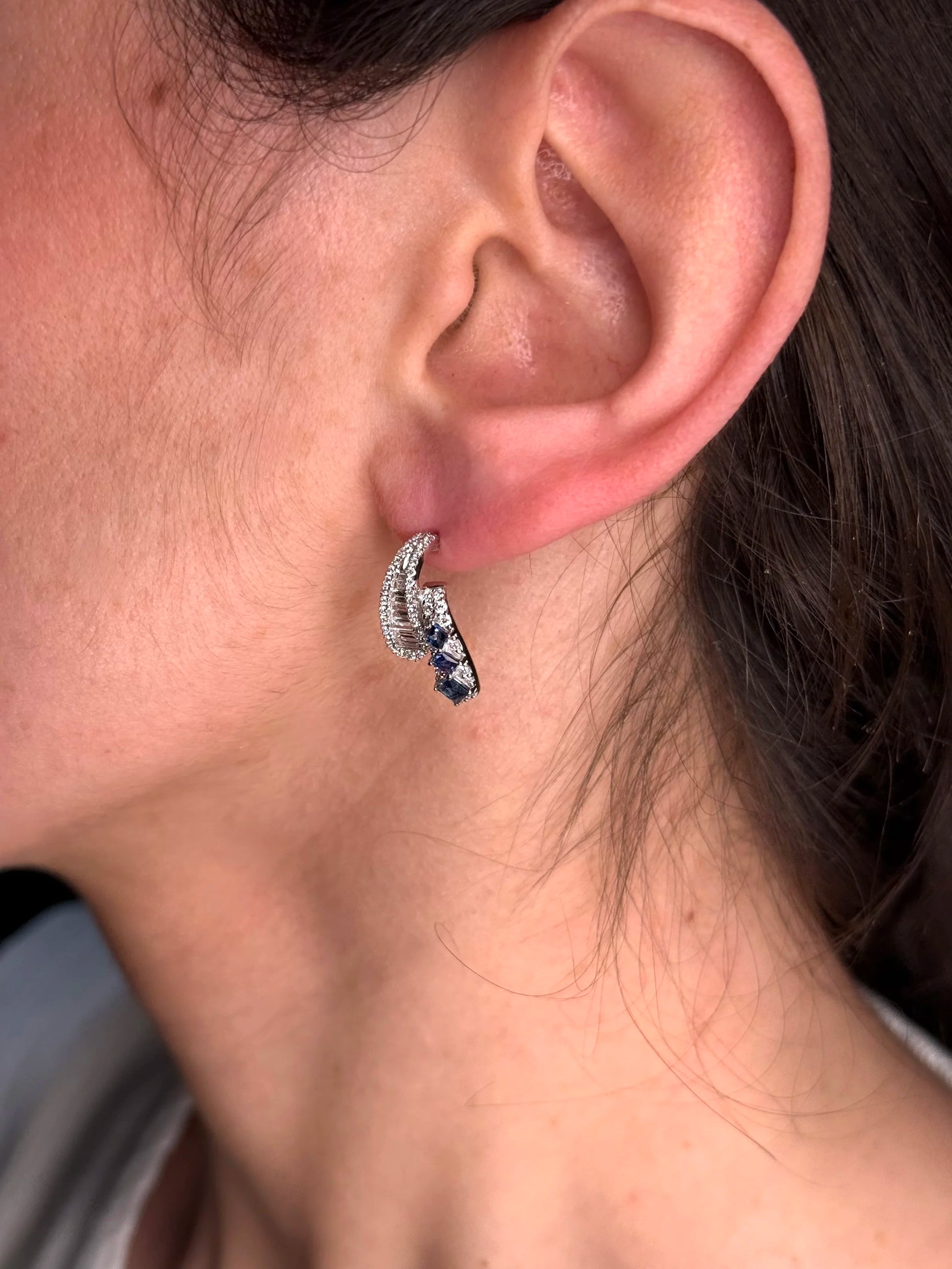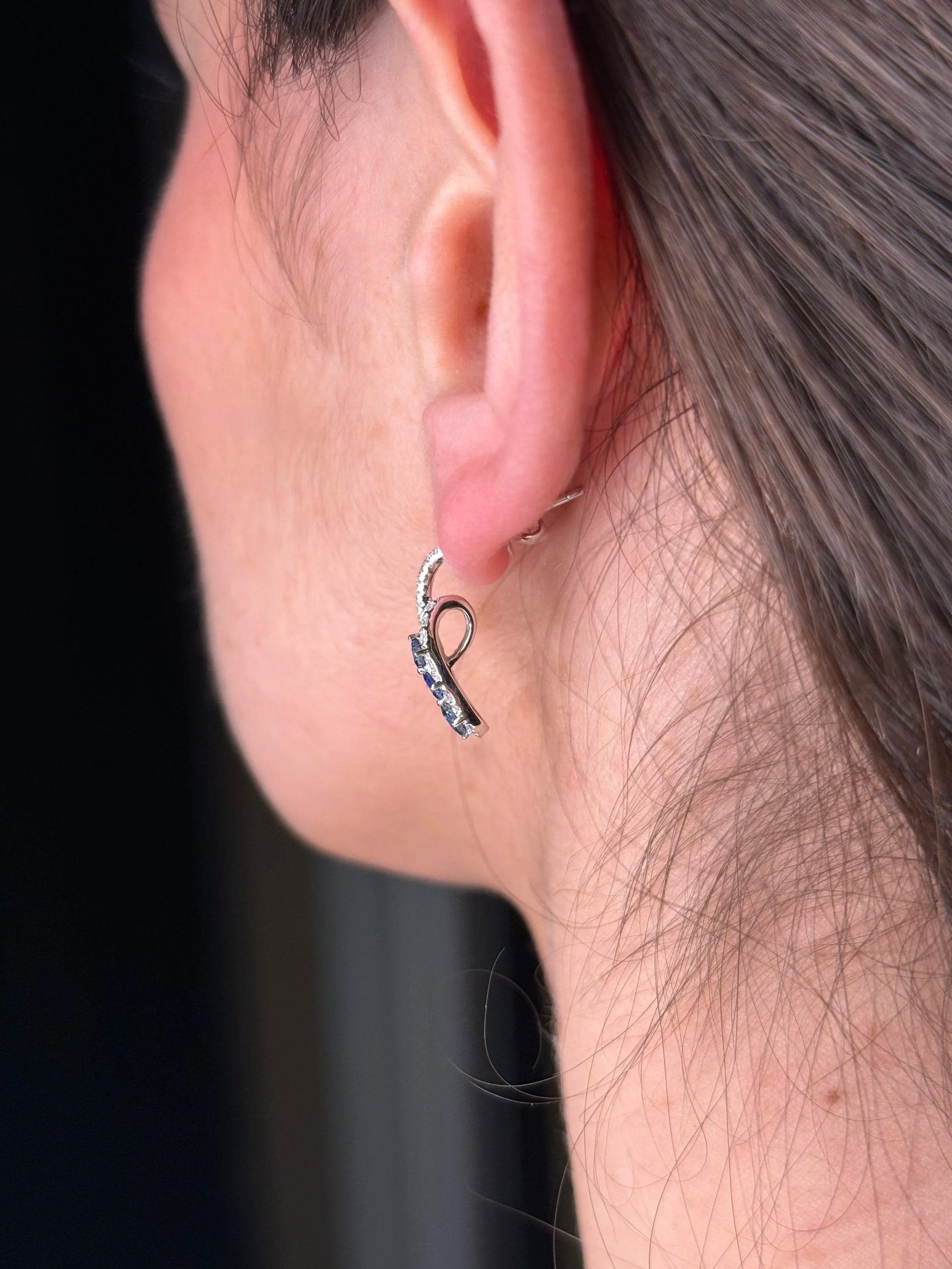 Ladies Fancy Sapphire, Round and Baguette Diamond Earring