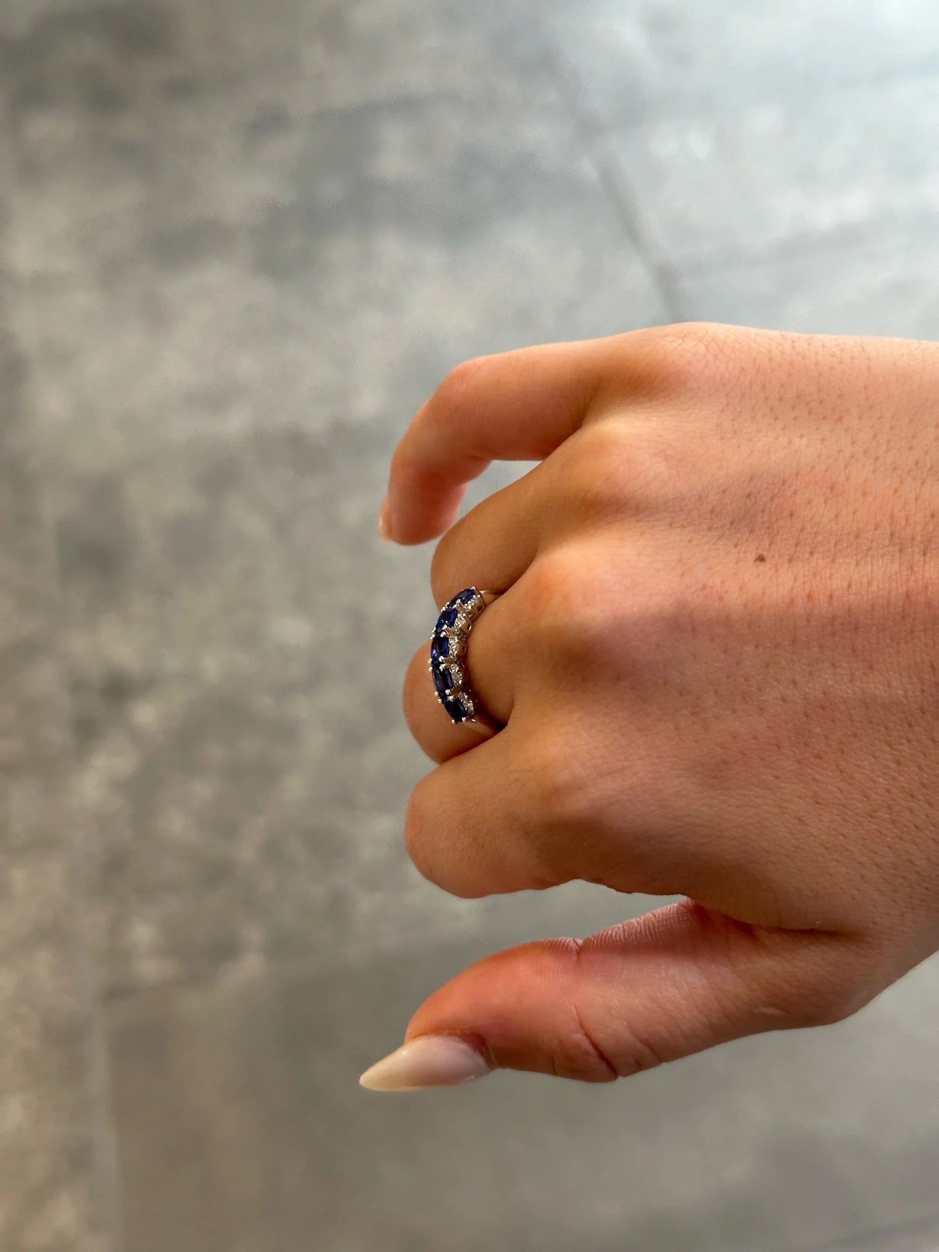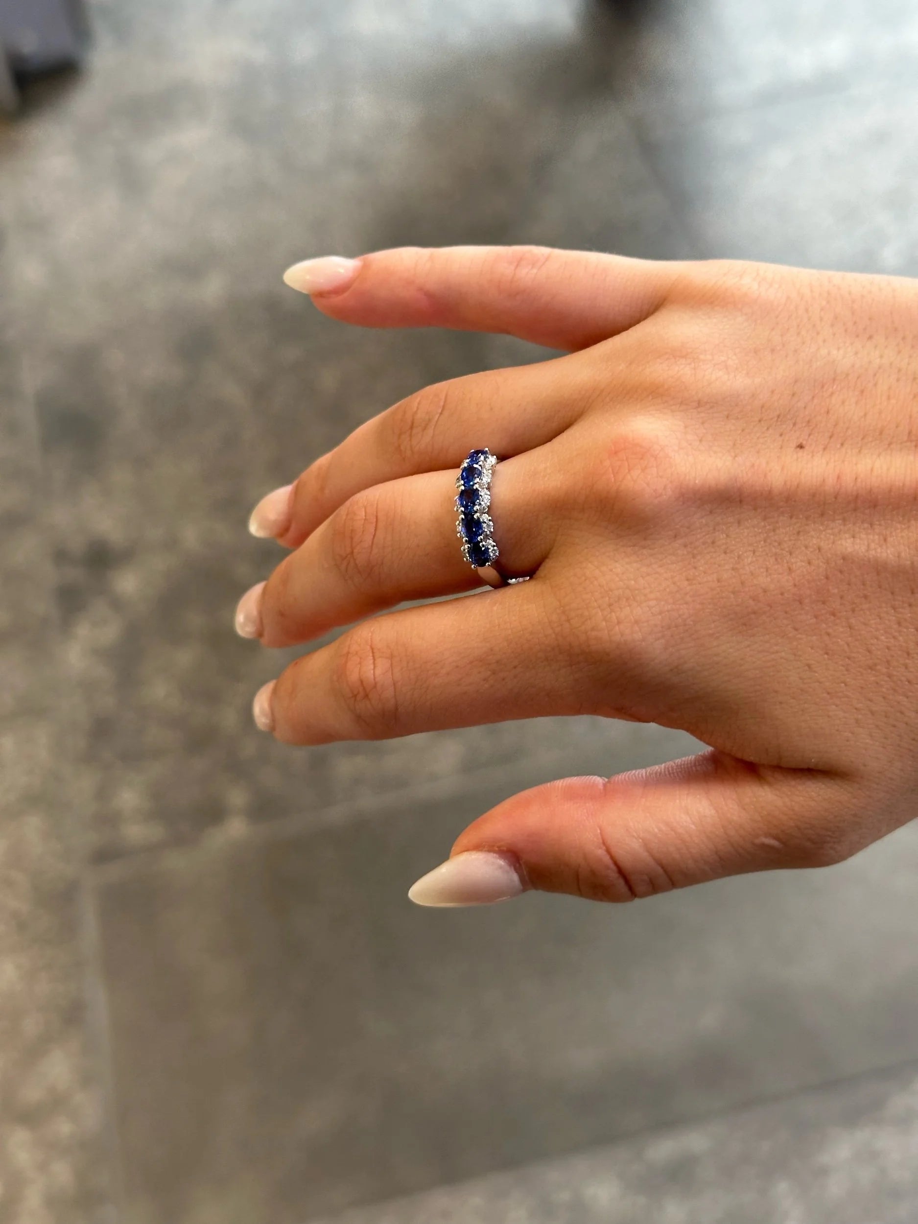 Ladies Five Sapphire Stone and Round Diamond Ring