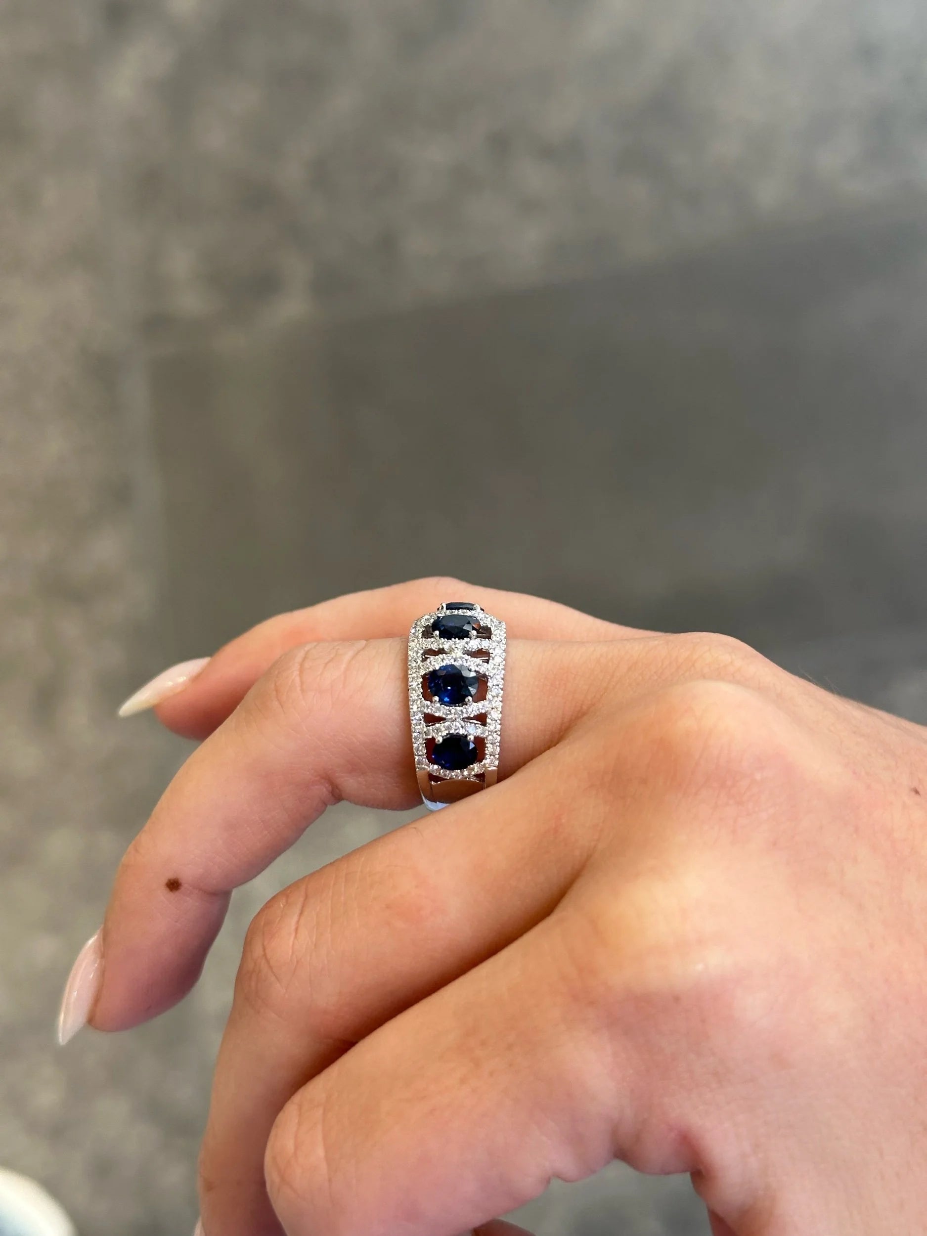 Ladies Five Stone Round Sapphire and Round Diamond Ring