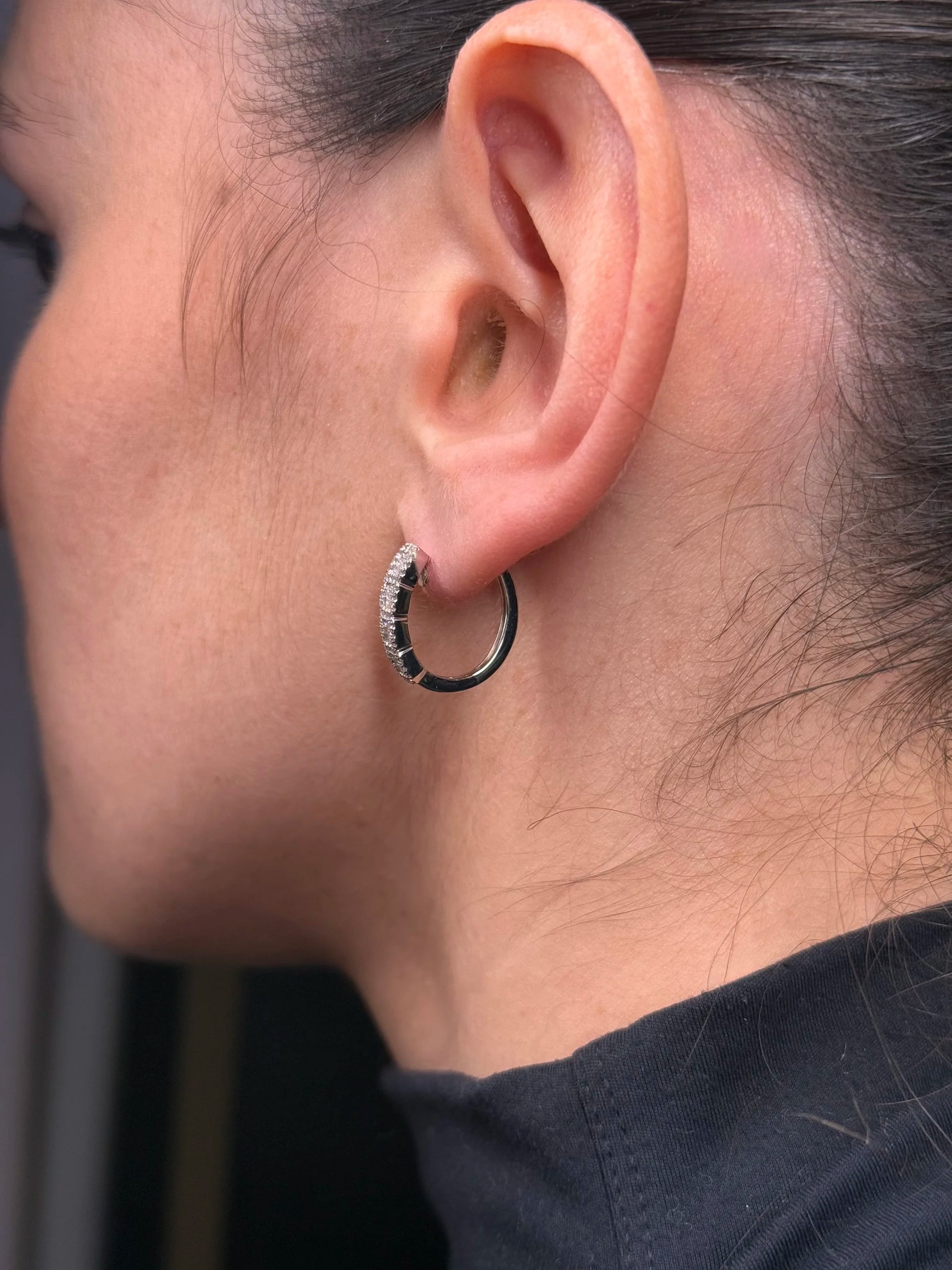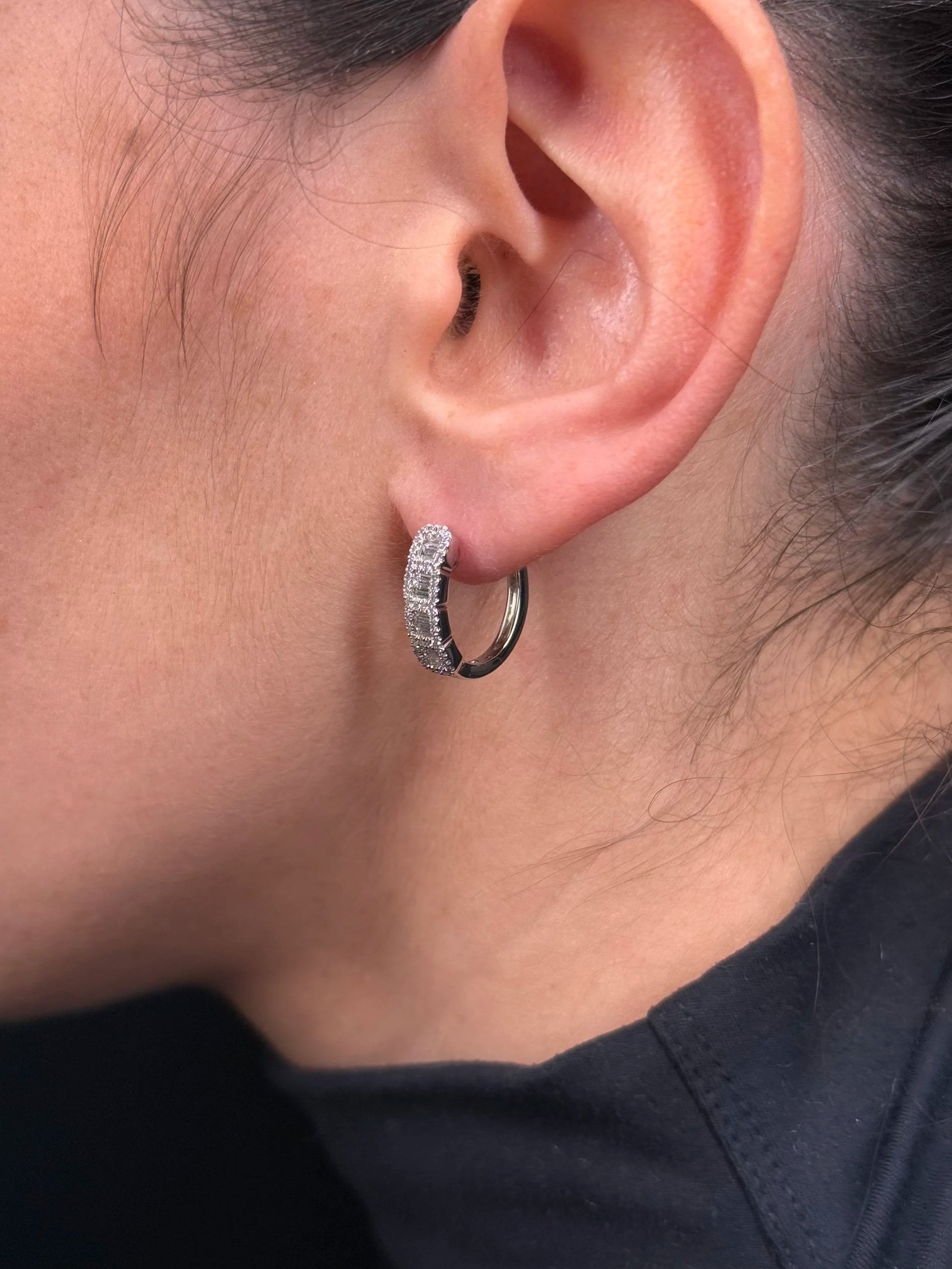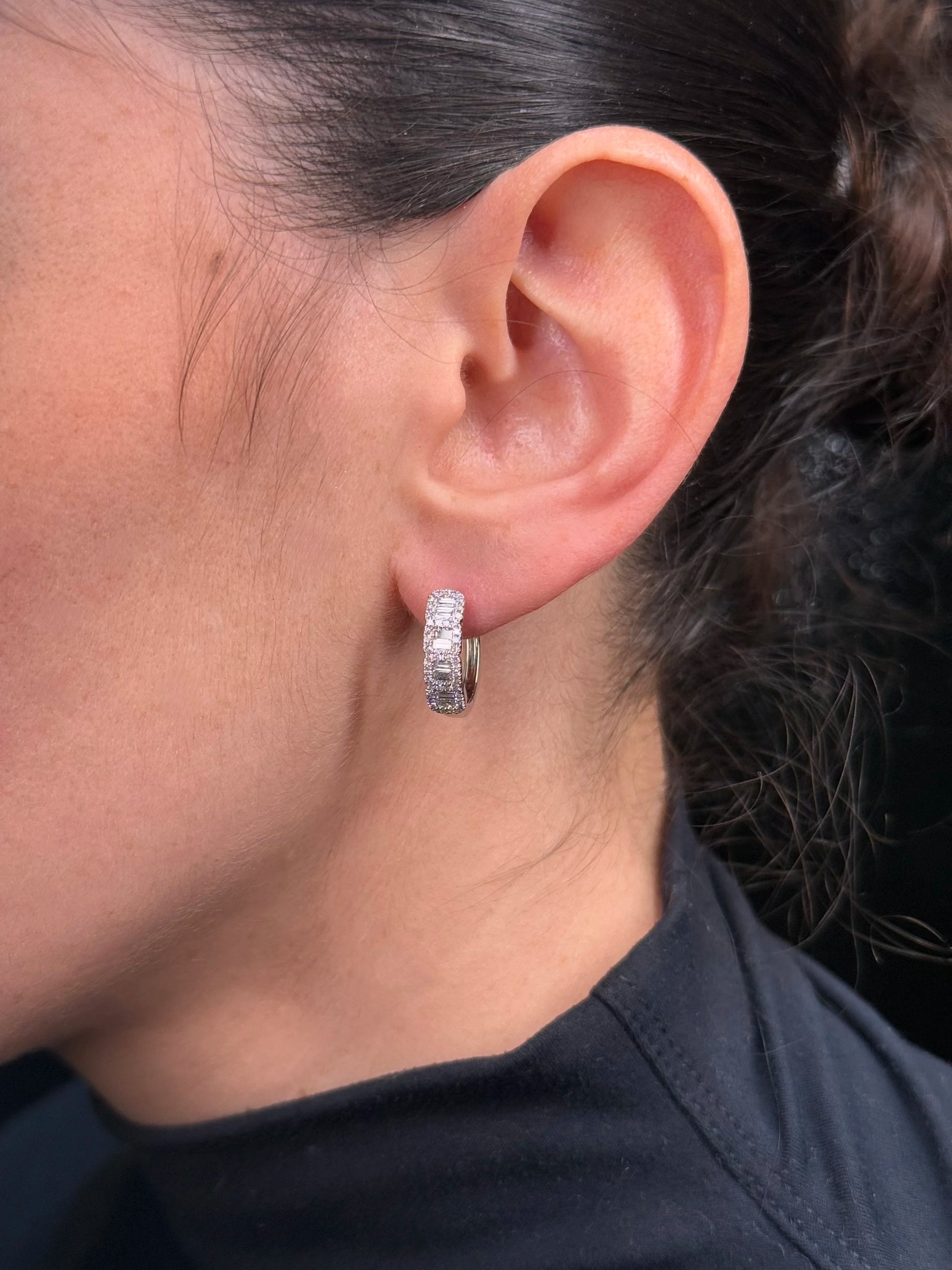 Ladies Four Round and Baguette Cluster Diamond Huggie