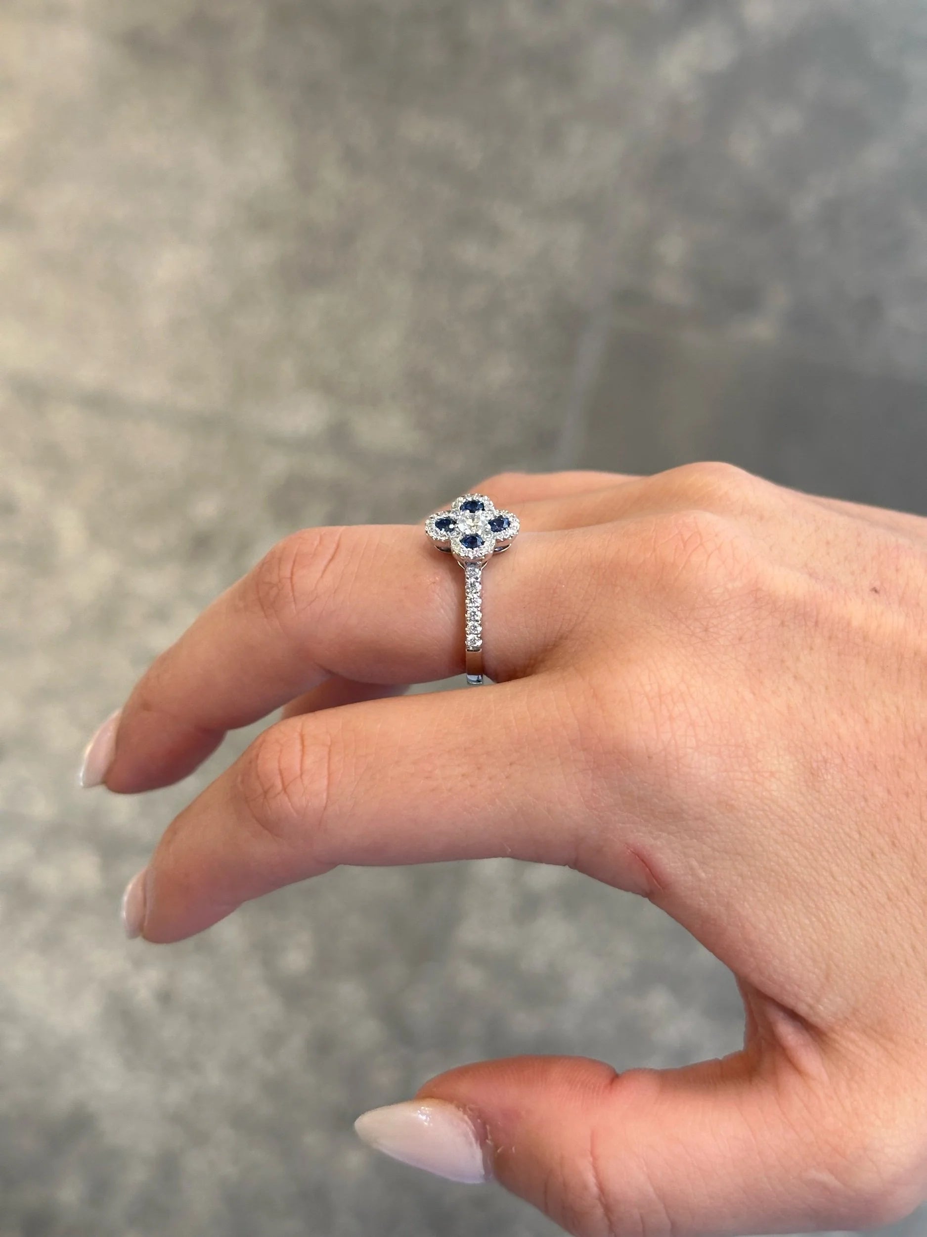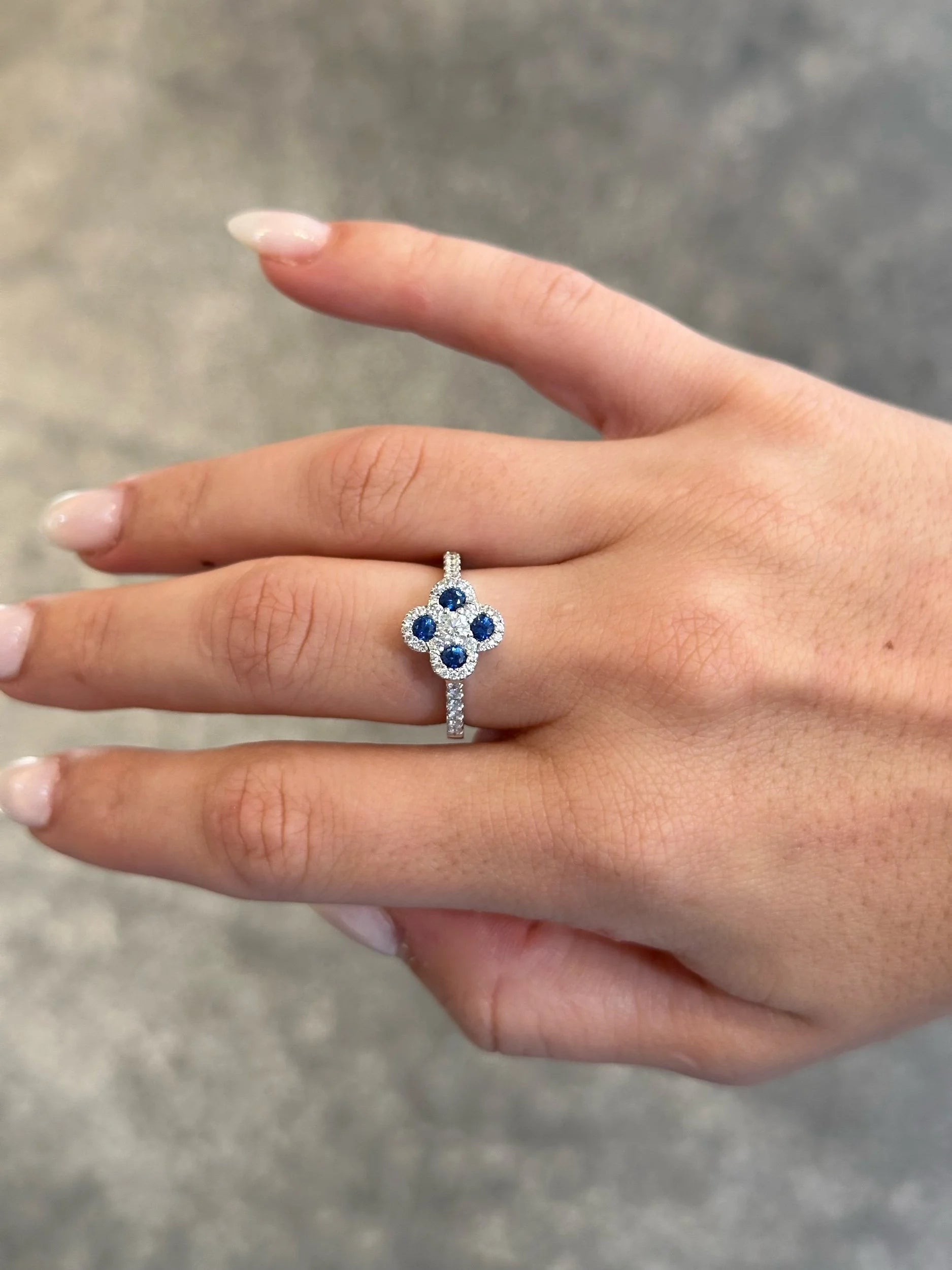 Ladies Four Stone Sapphire and Round Diamond Ring