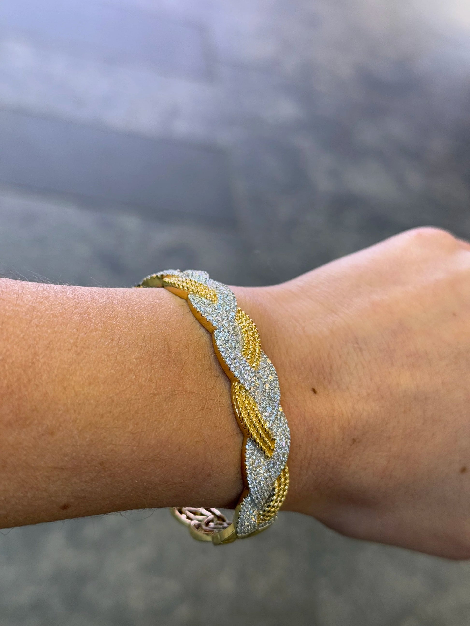 Ladies Gold and Diamond Twist Bangle