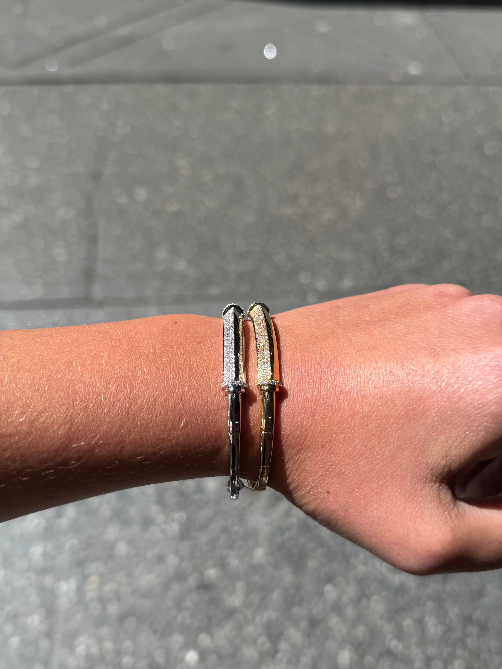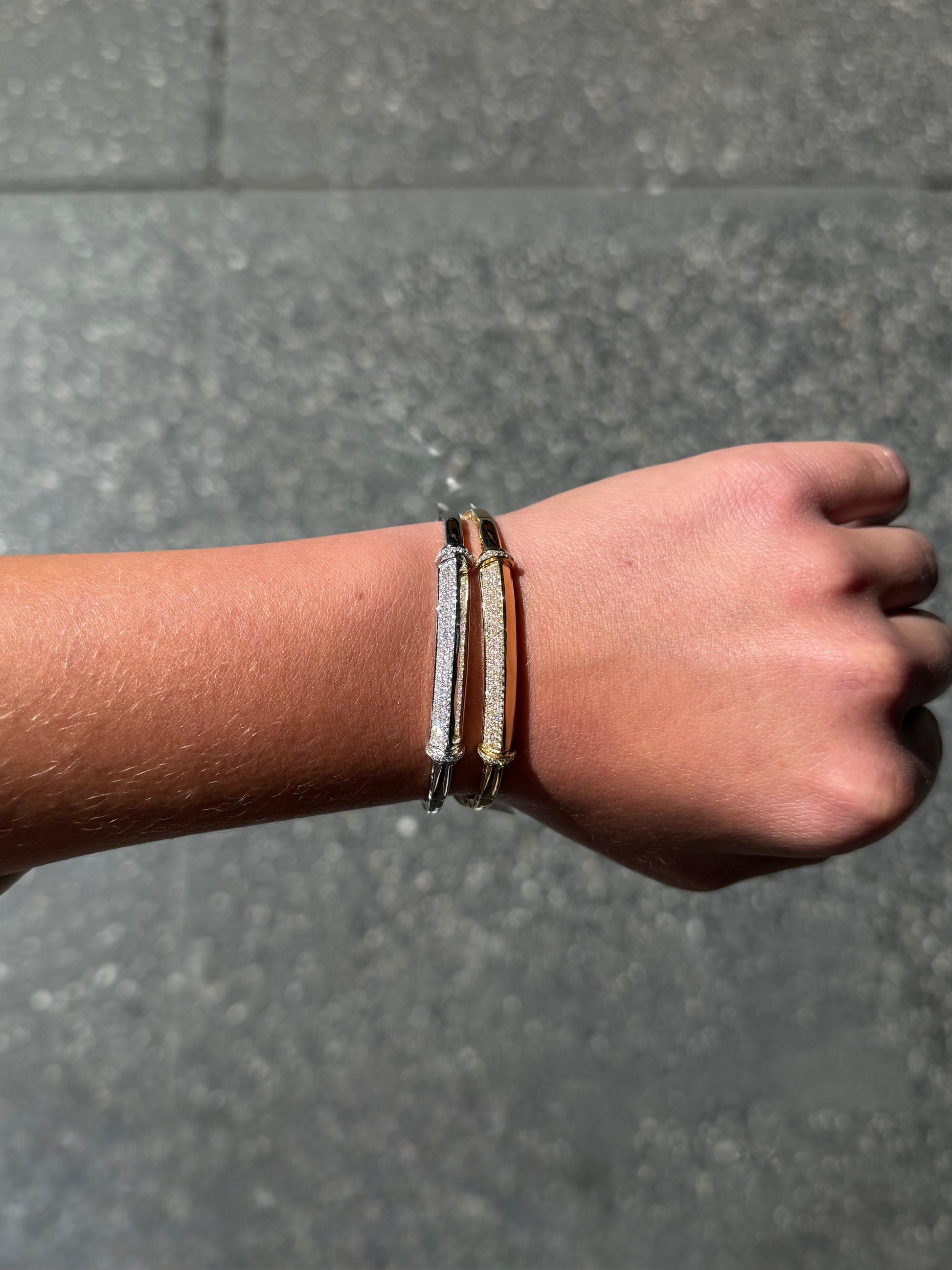 Ladies Half-Gold Half-Diamond Pave Set Bangle