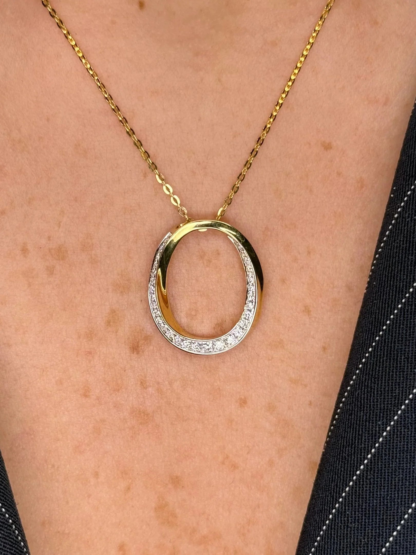 Ladies Hallow Circle Round Diamond and Gold Pendant