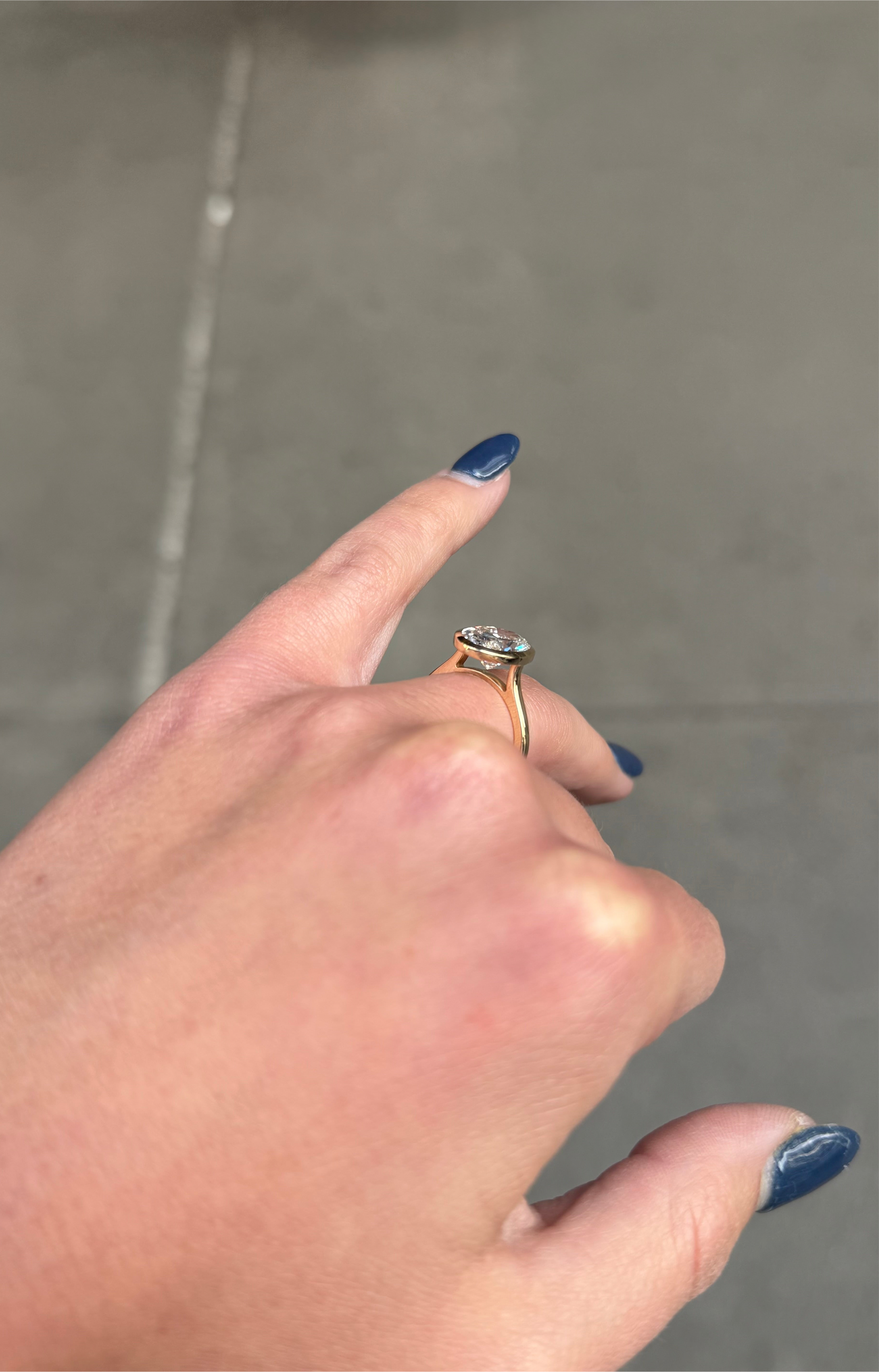 Ladies Lab Grown Oval Bezel Set Engagement Ring