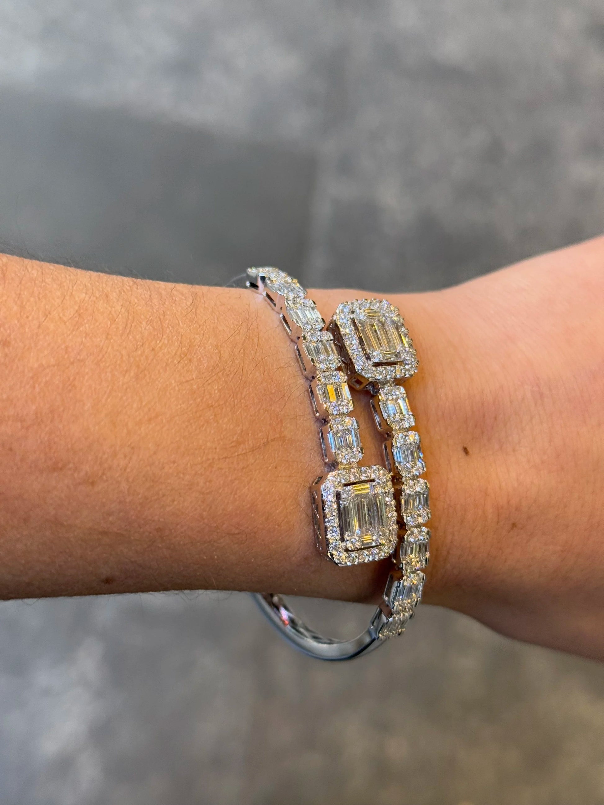Ladies Large Fancy Baguette and Round Diamond Bangle