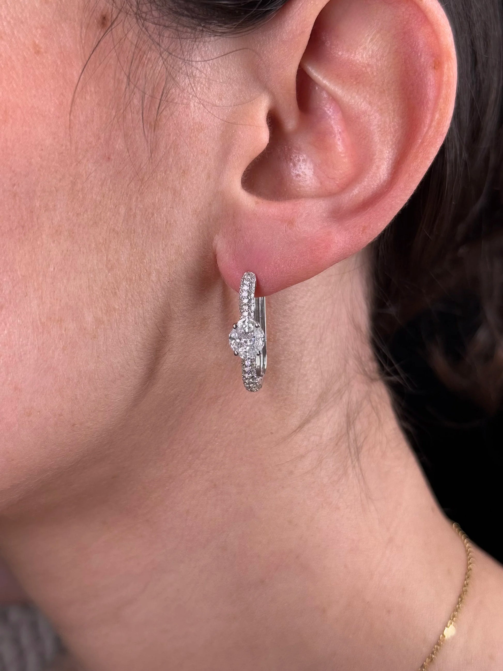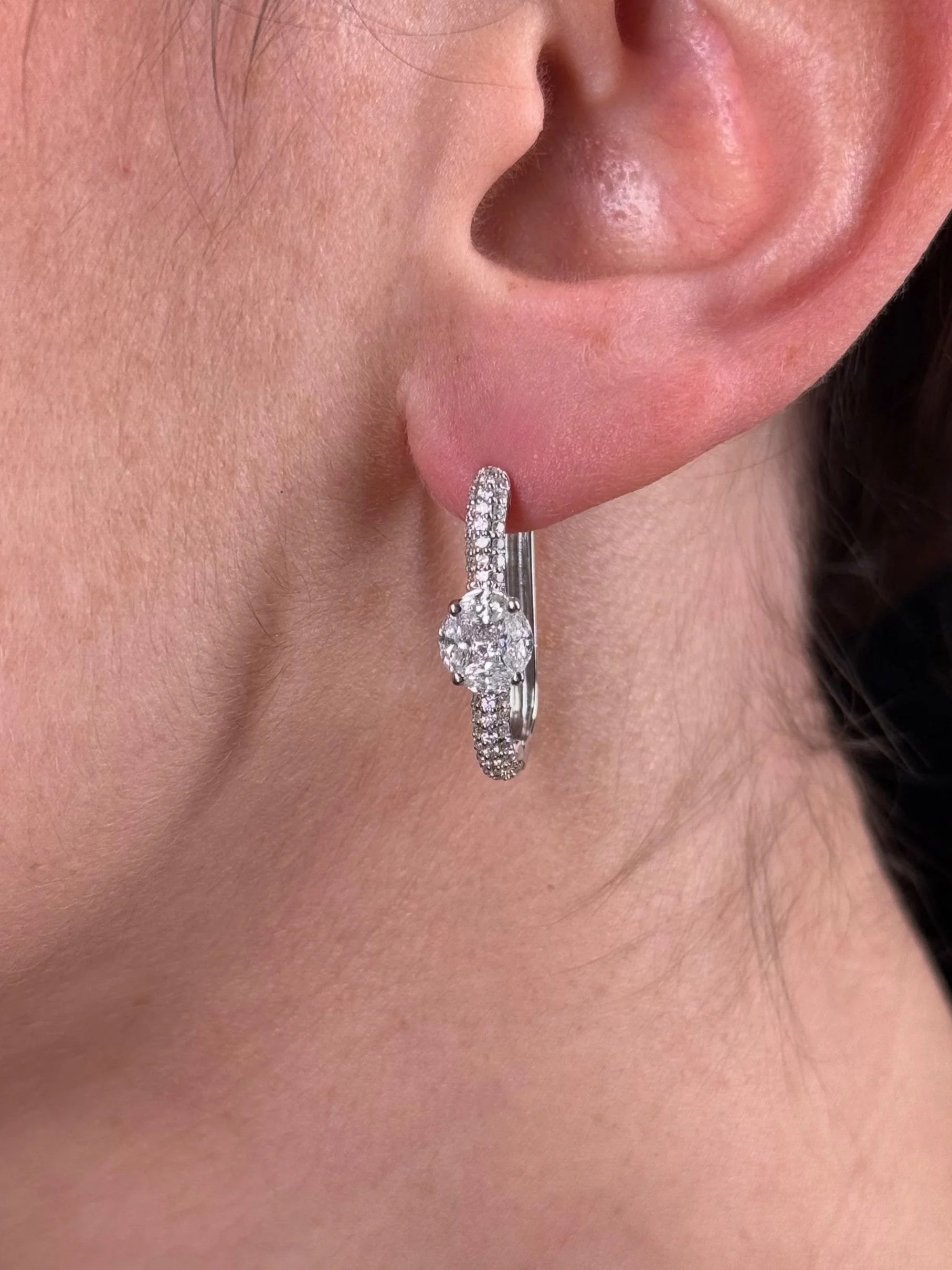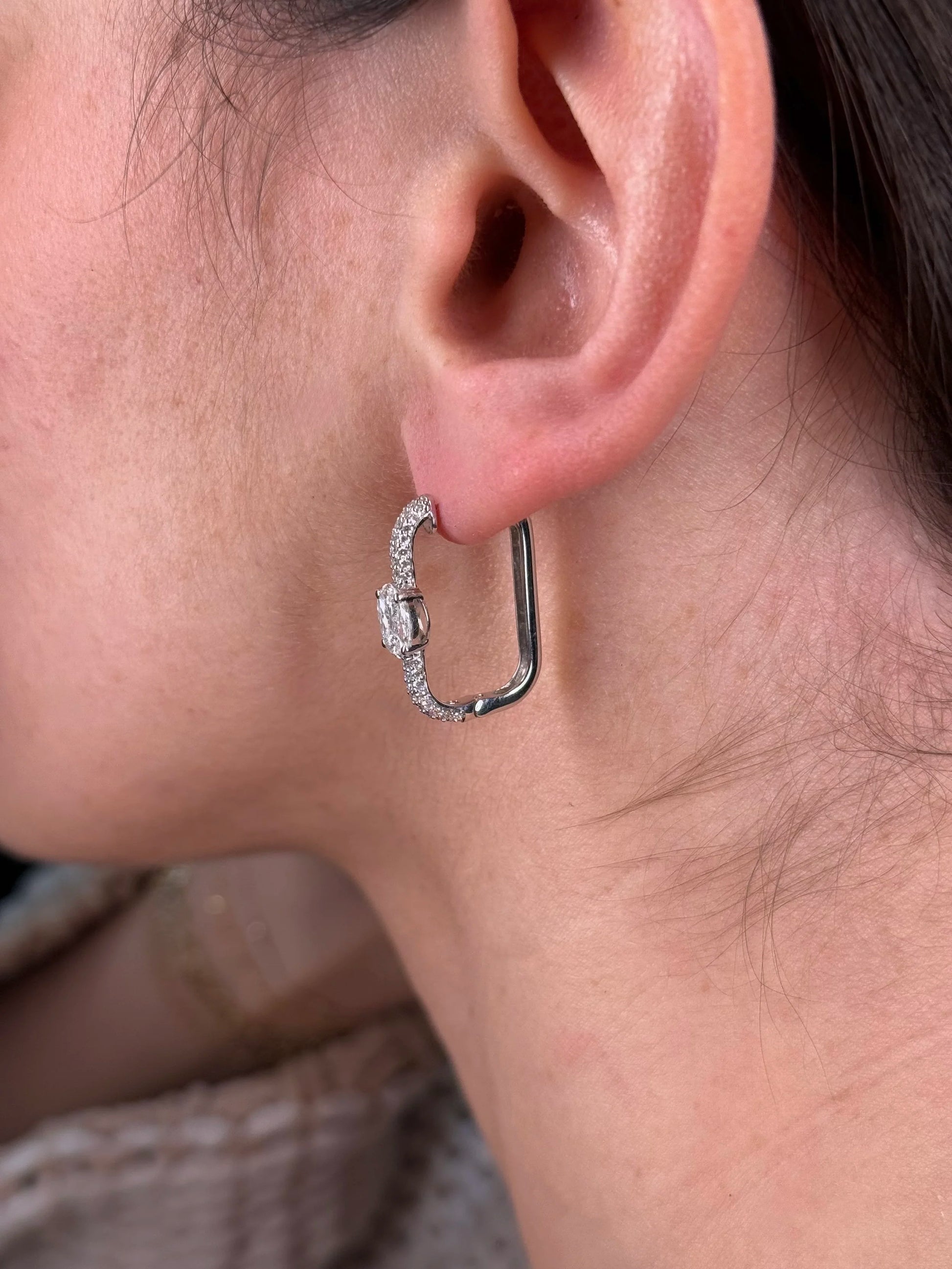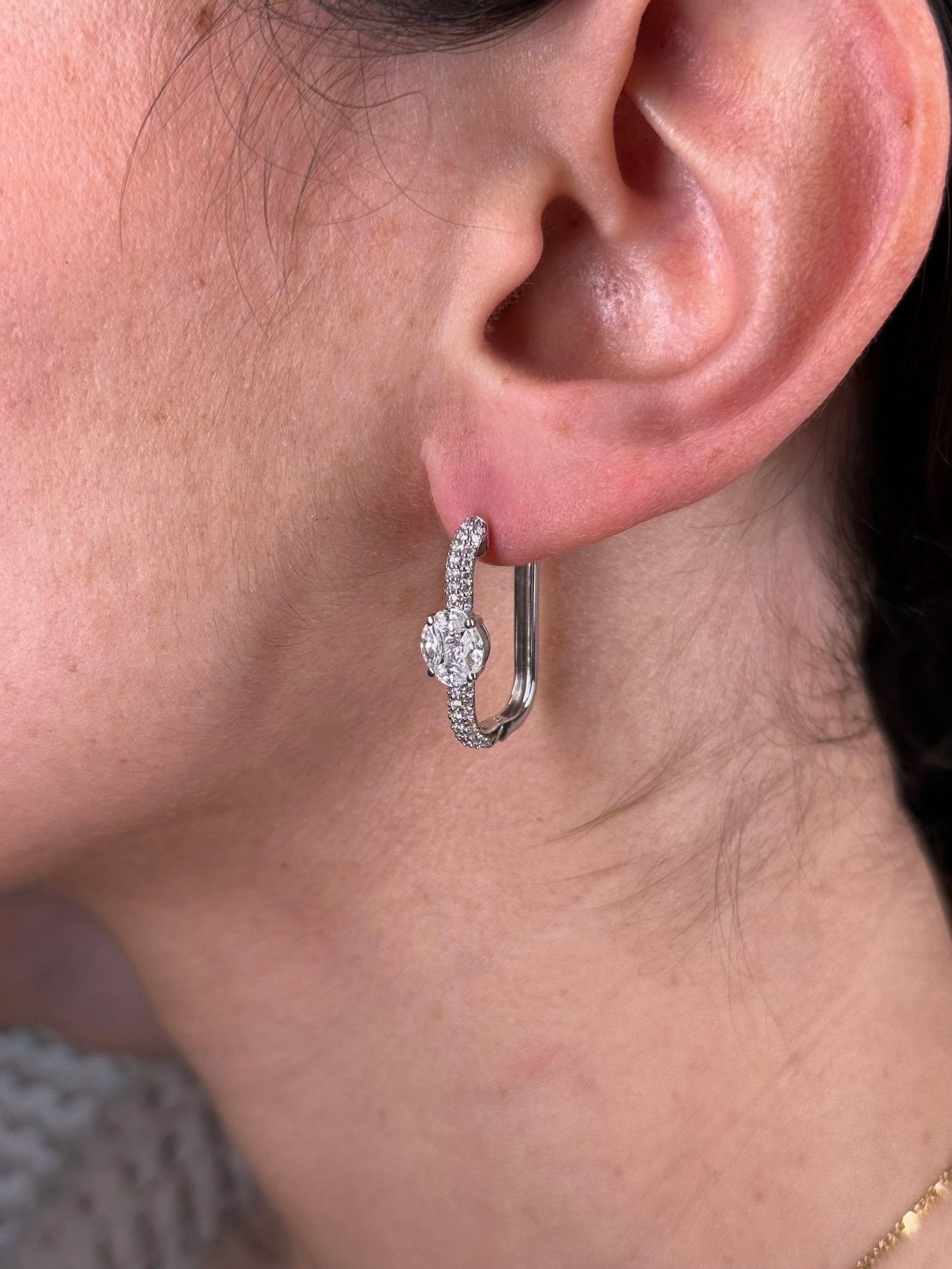 Ladies Large Pave Set Rectangular Diamond Huggie