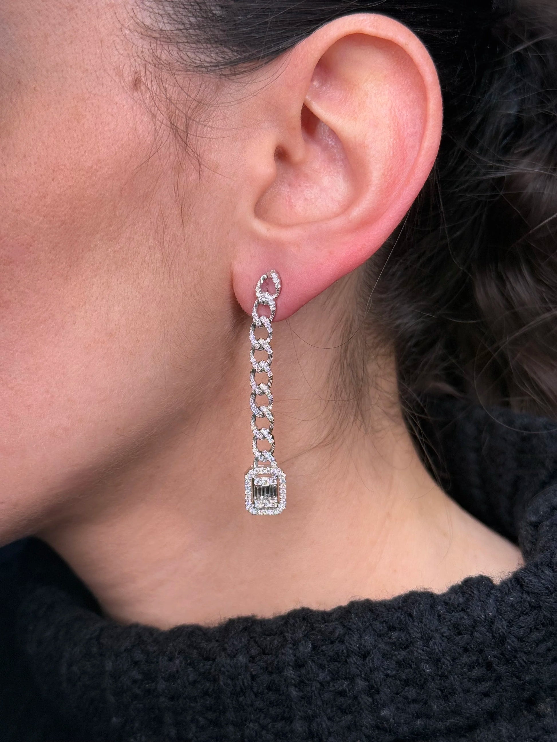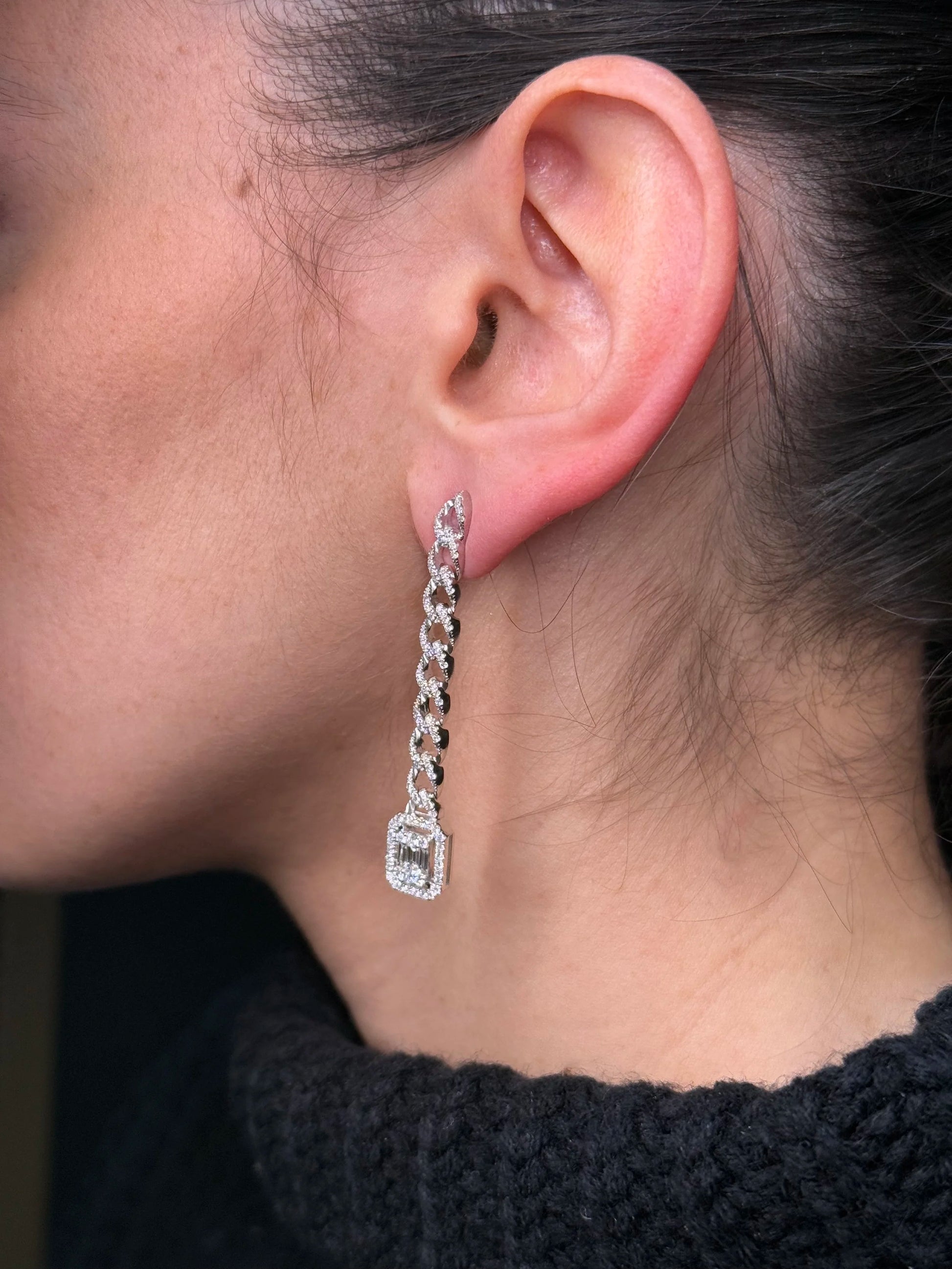 Ladies Link and Emerald Shaped Cluster Dangling Earrings