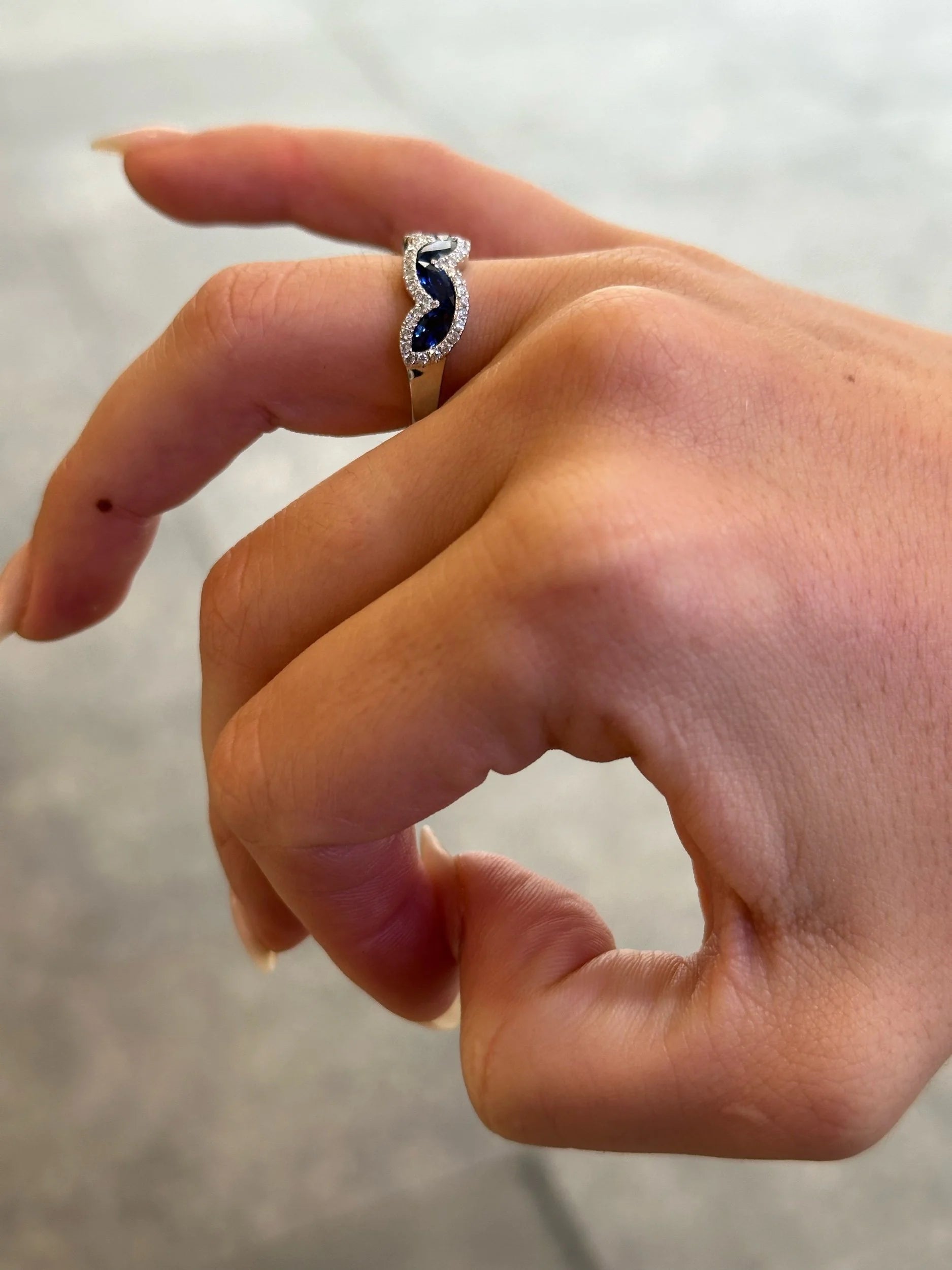 Ladies Marquise Sapphire Stone and Round Diamond Ring