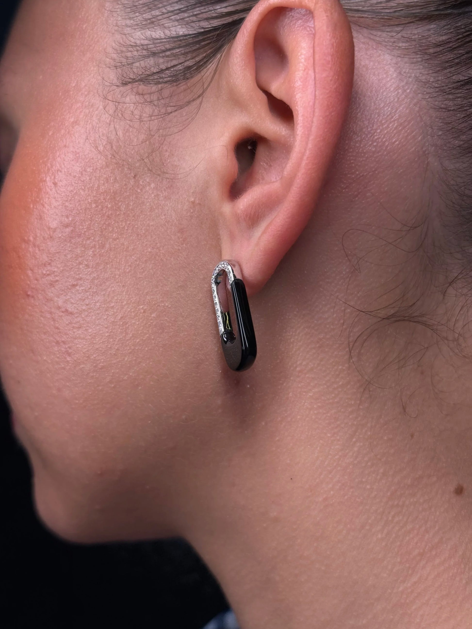 Ladies Onyx and Diamond Earring