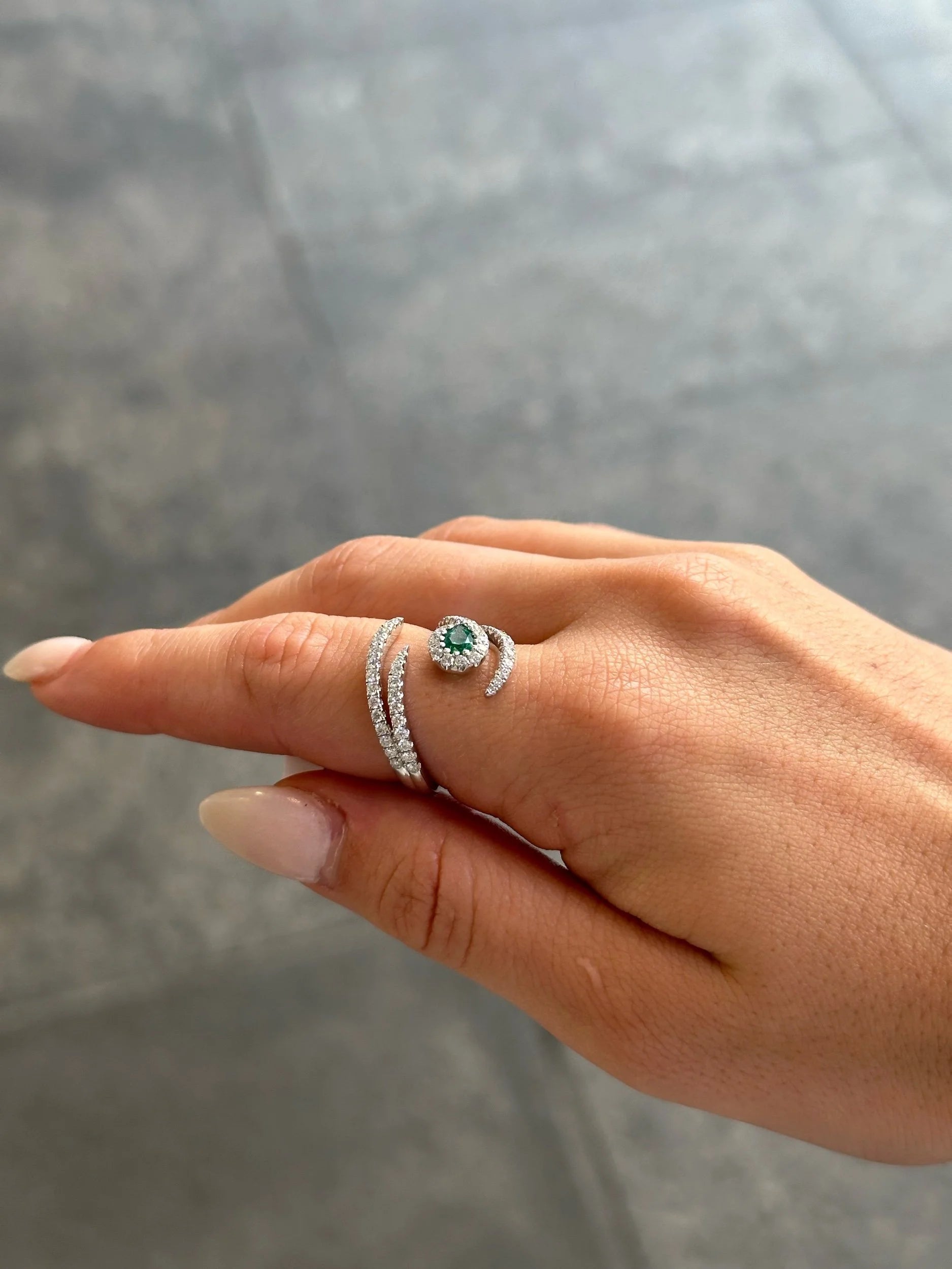 Ladies Open Emerald Stone and Round Diamond Ring