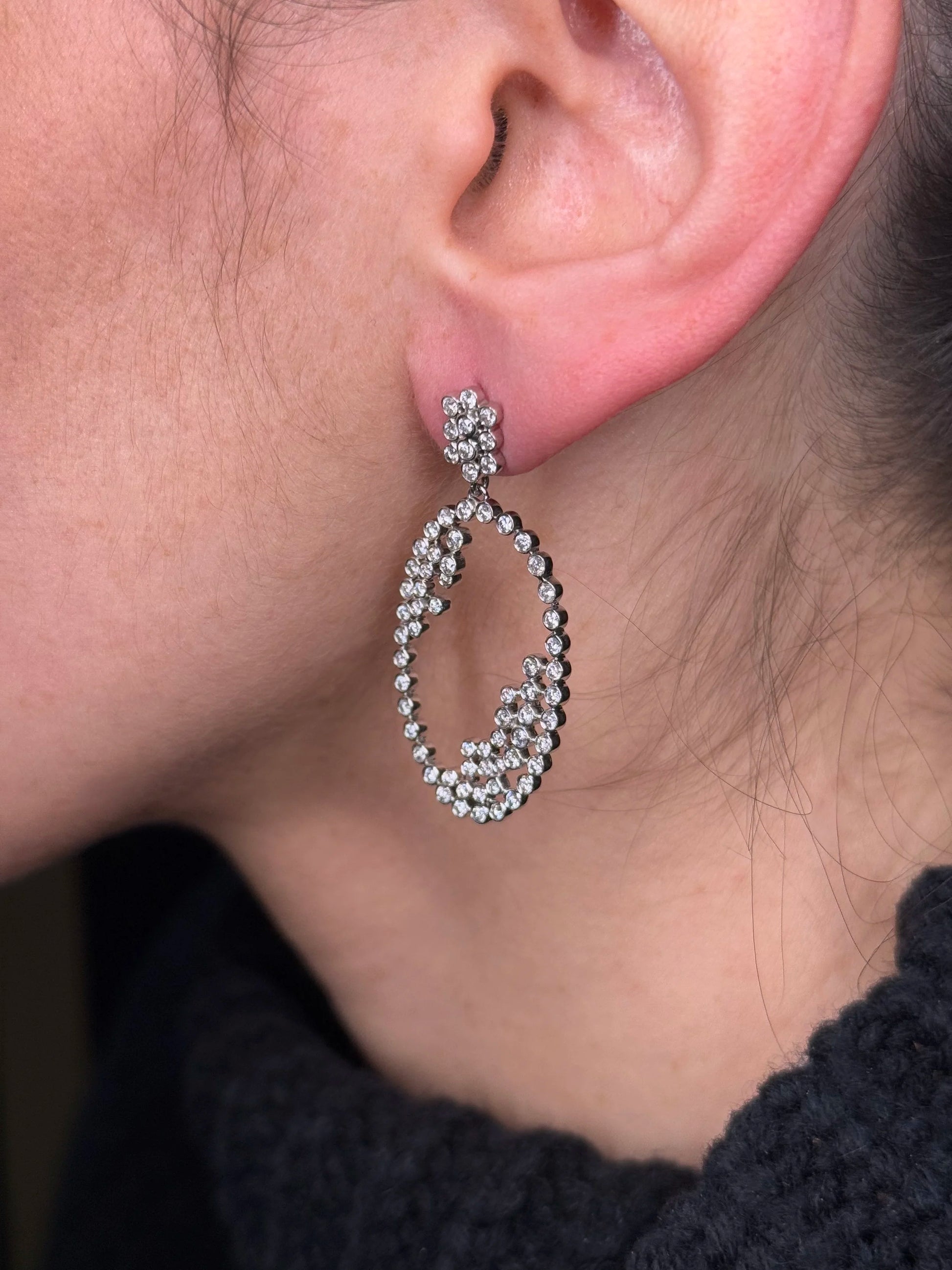 Ladies Oval Bezel Set Round Diamond Earring