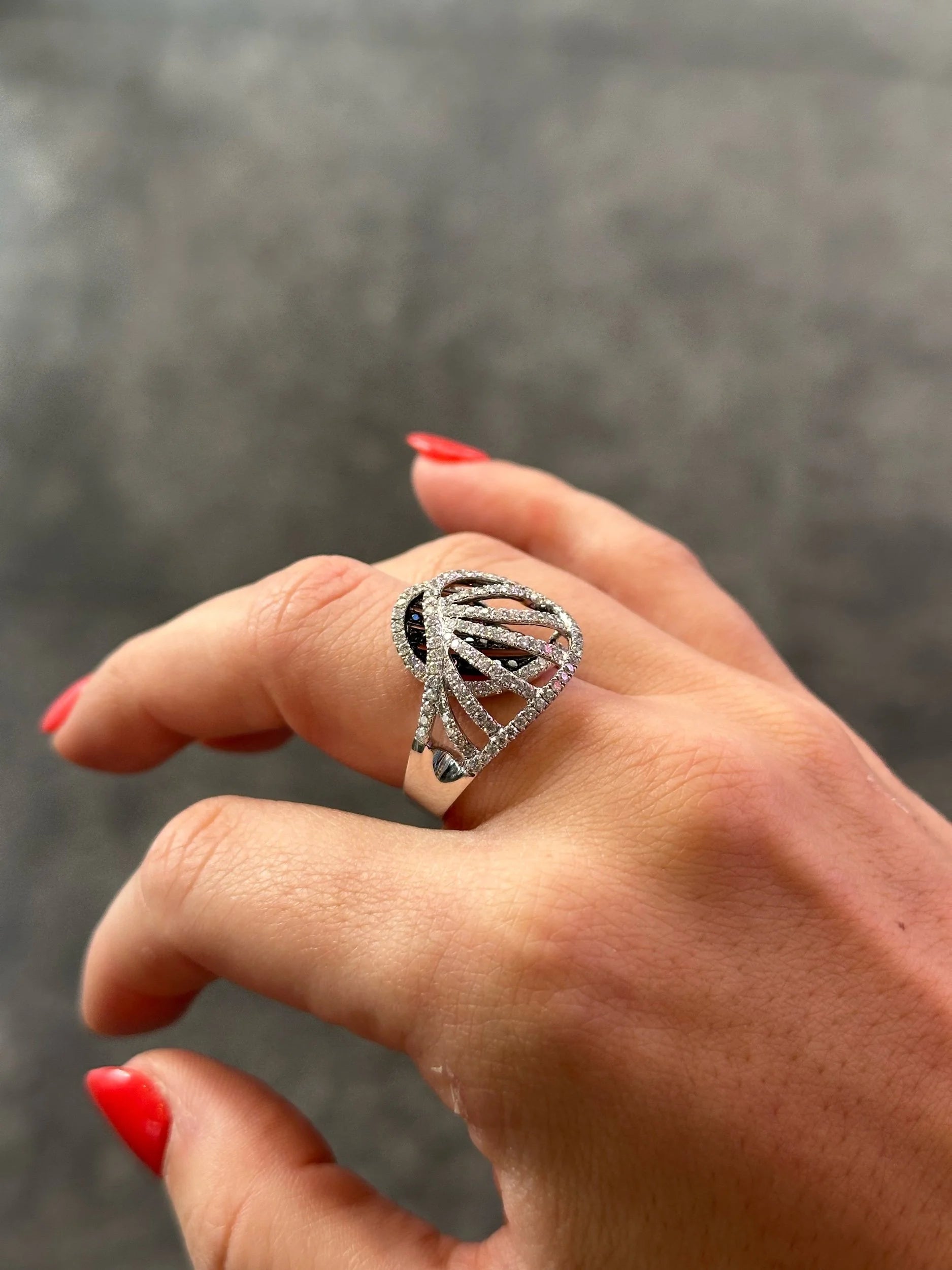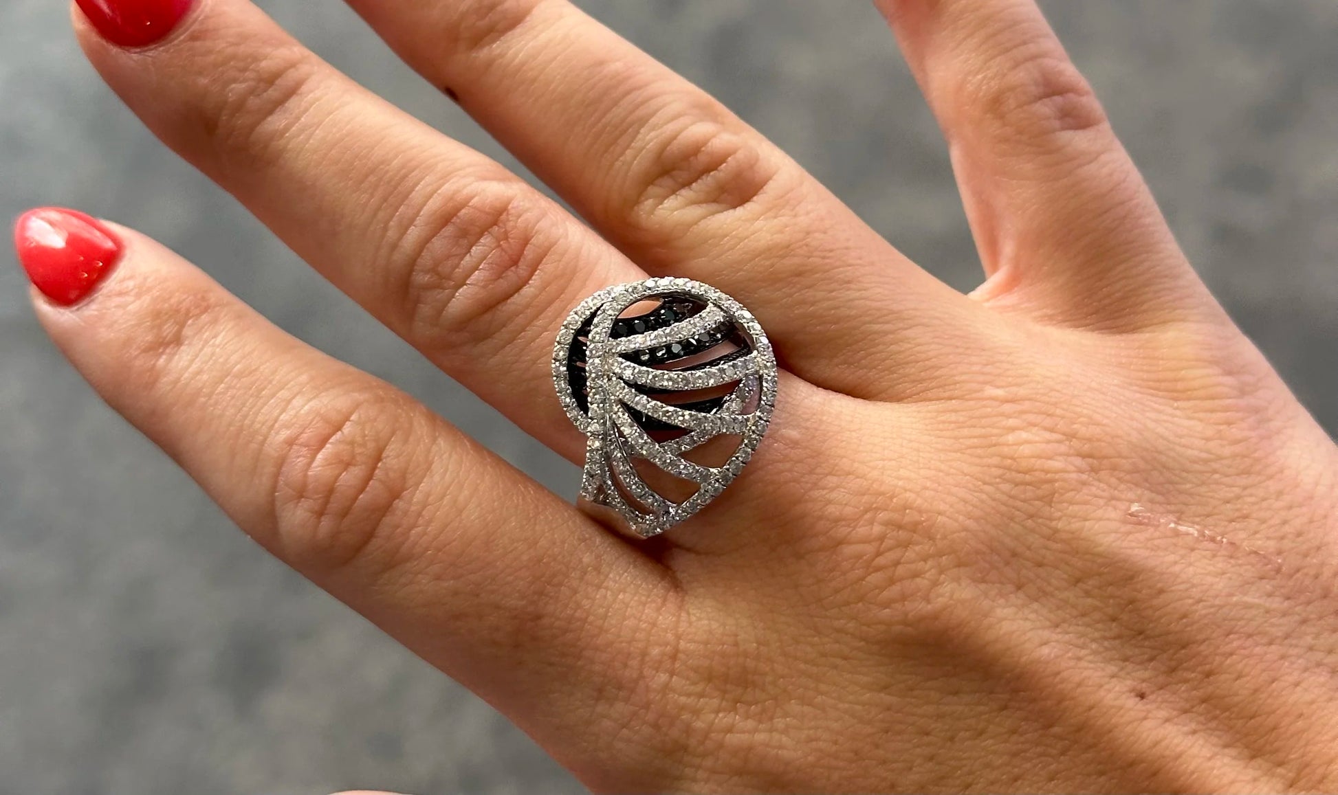 Ladies Overlapping Black Diamond and Round Diamond Ring