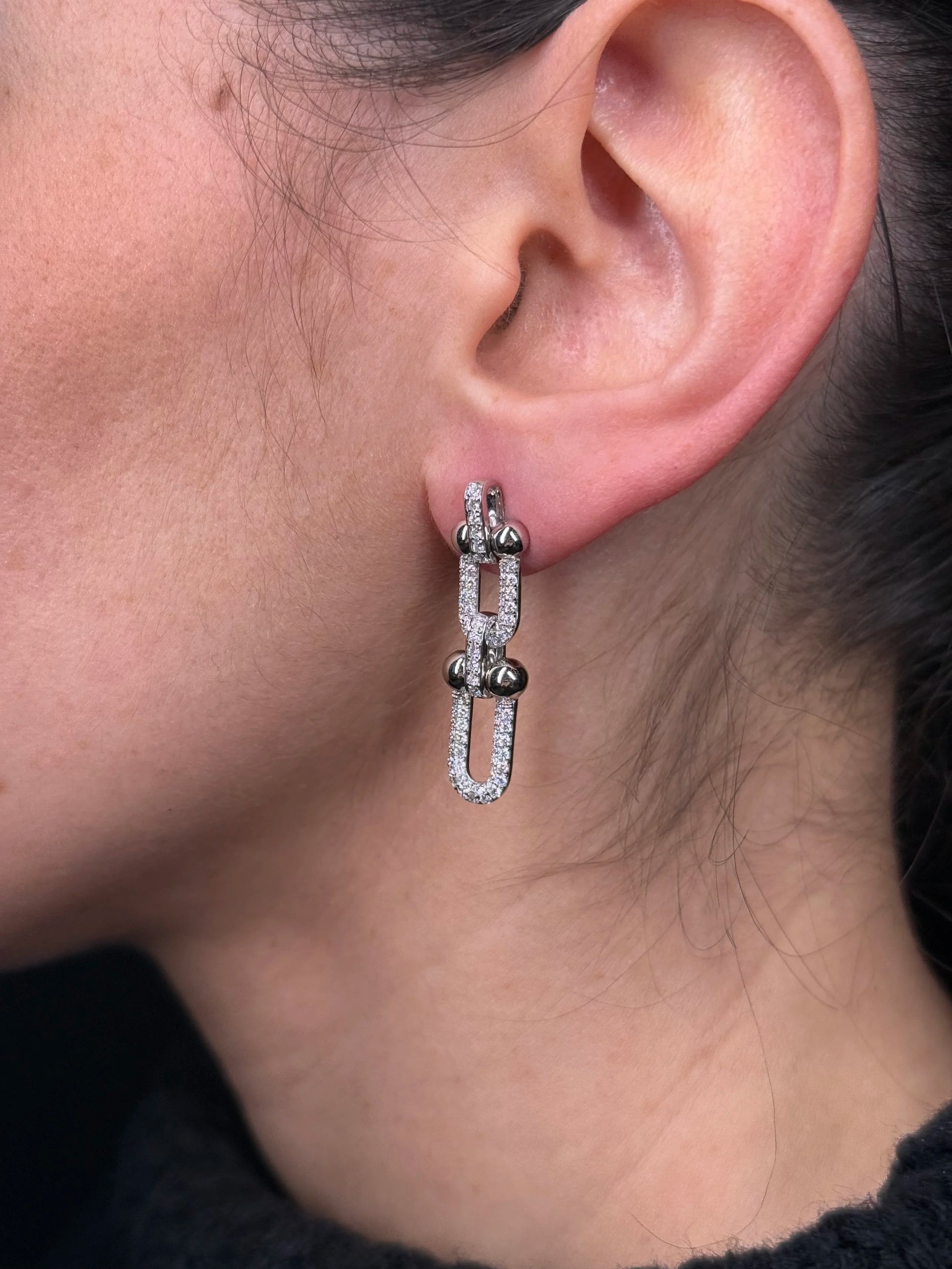 Ladies Pave Set Paperclip and Ball Earrings
