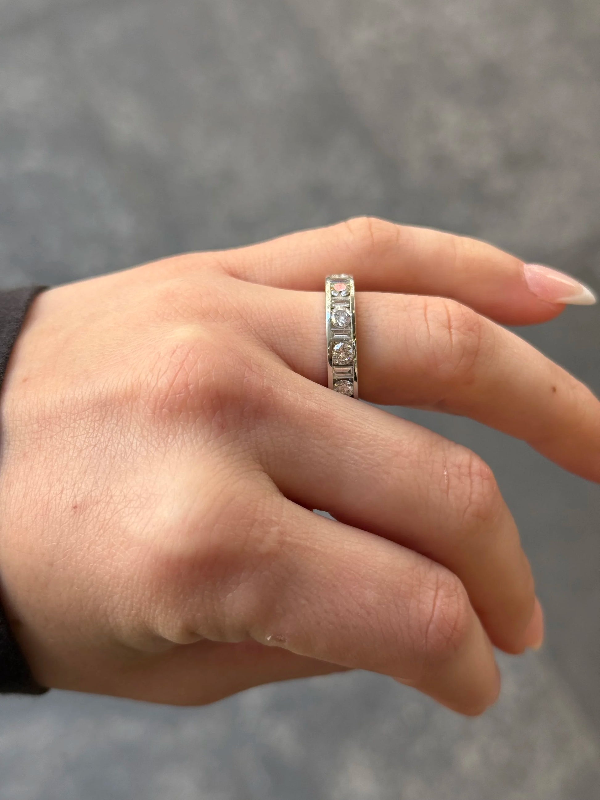 Ladies Round and Baguette Eternity Channel Set Wedding Band