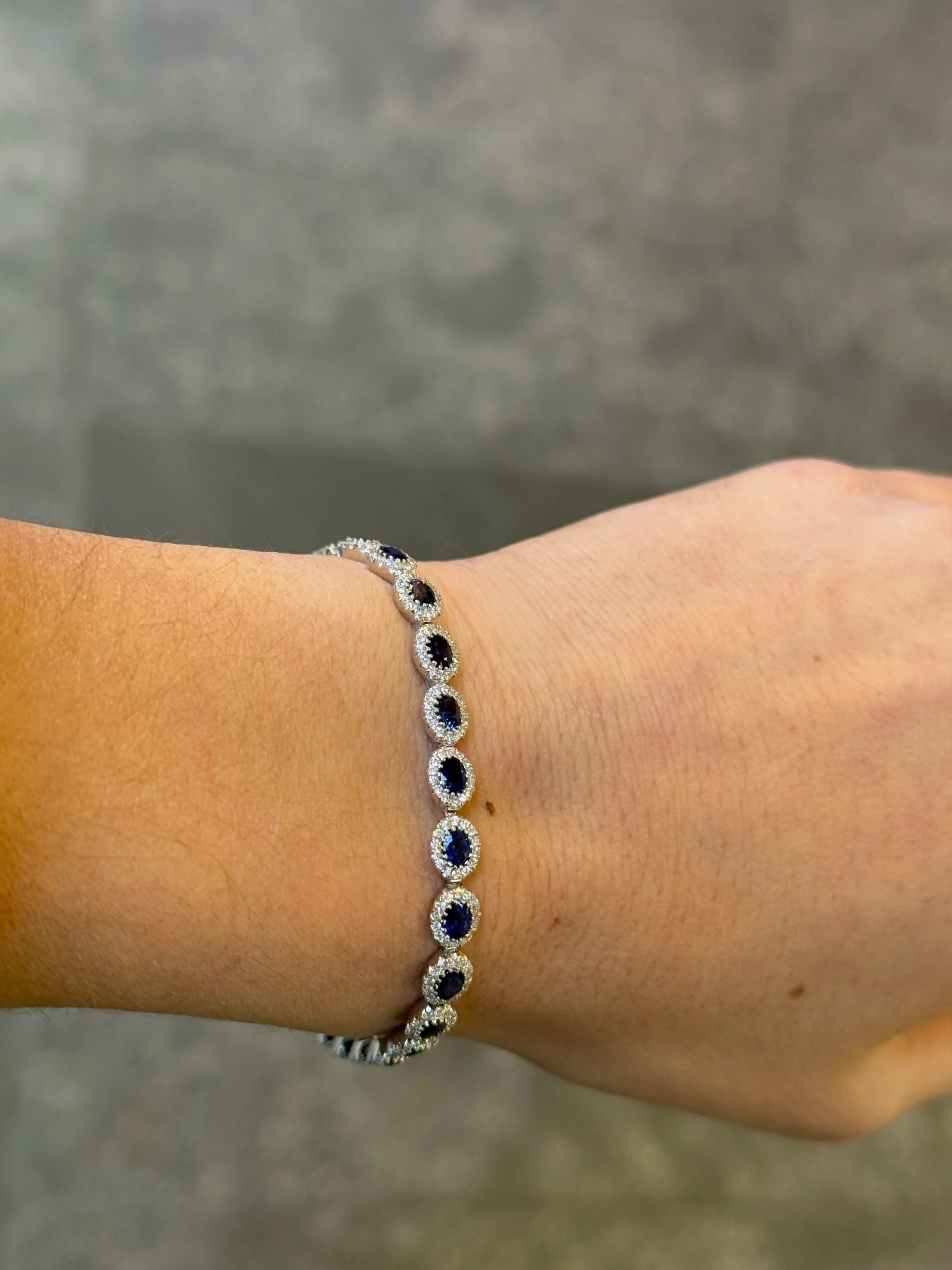 Ladies Round Diamond and Sapphire Halo Bracelet