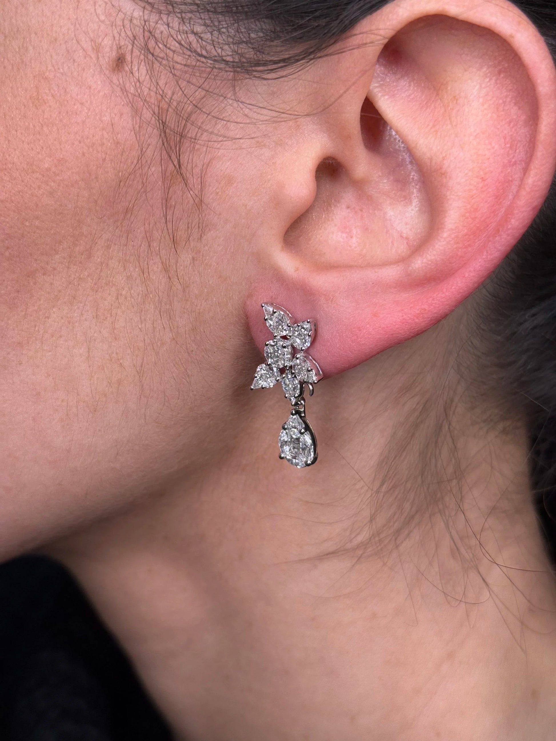 Ladies Round, Pear, and Marquise Cluster Diamond Earrings