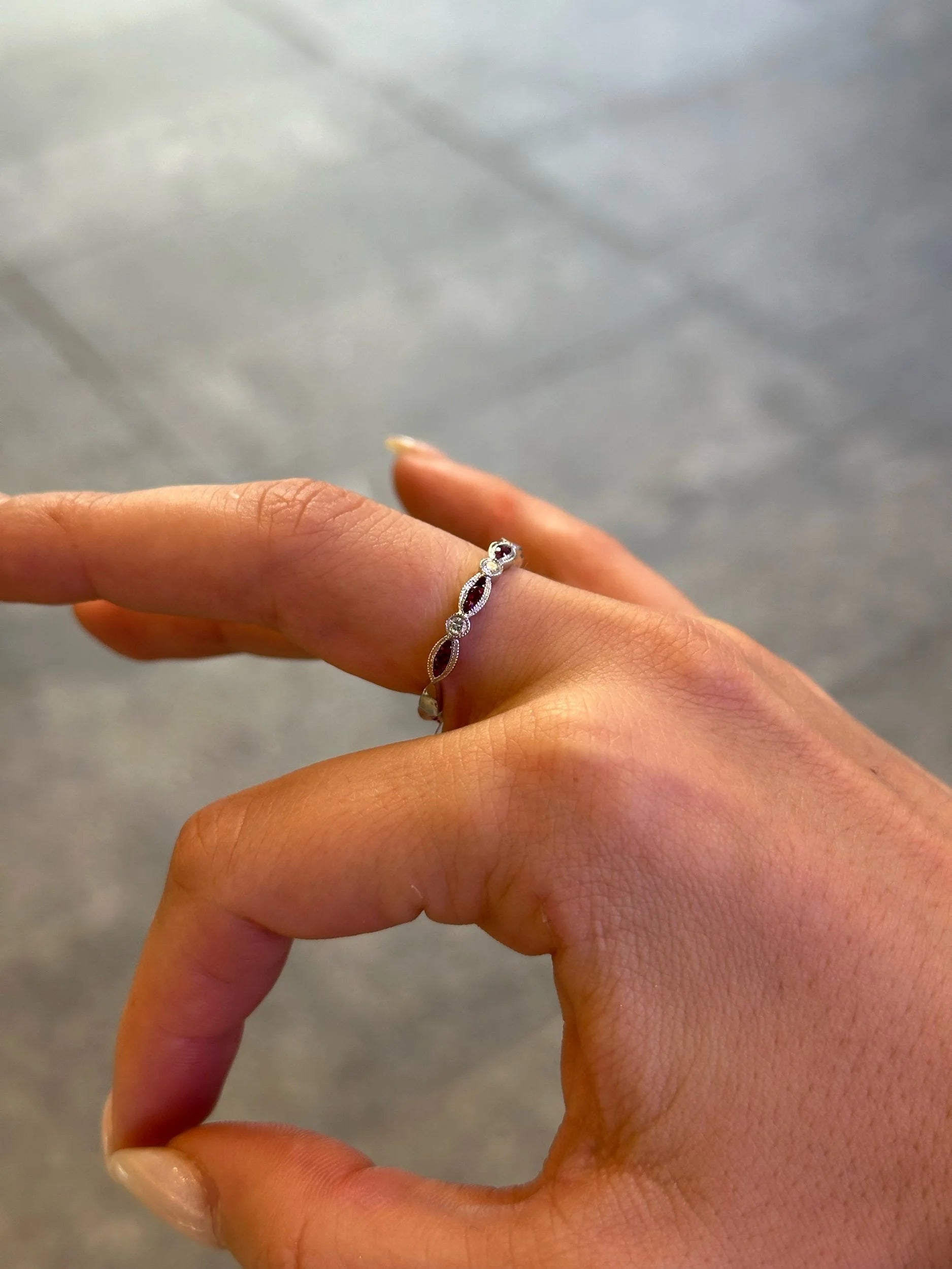 Ladies Ruby Stone and Round Diamond Alternating Ring