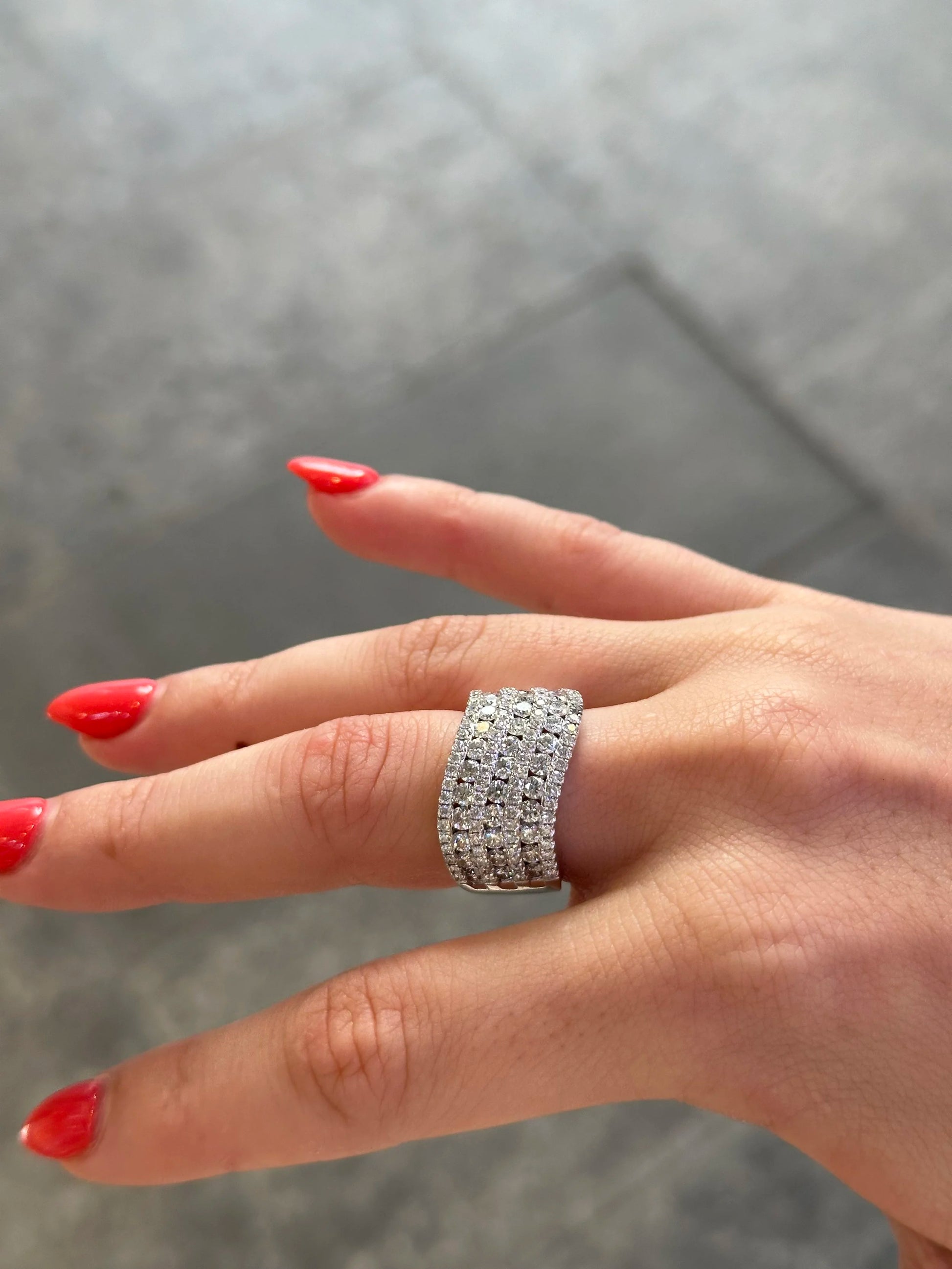 Ladies Seven Row Alternating Large and Small Round Diamond Ring