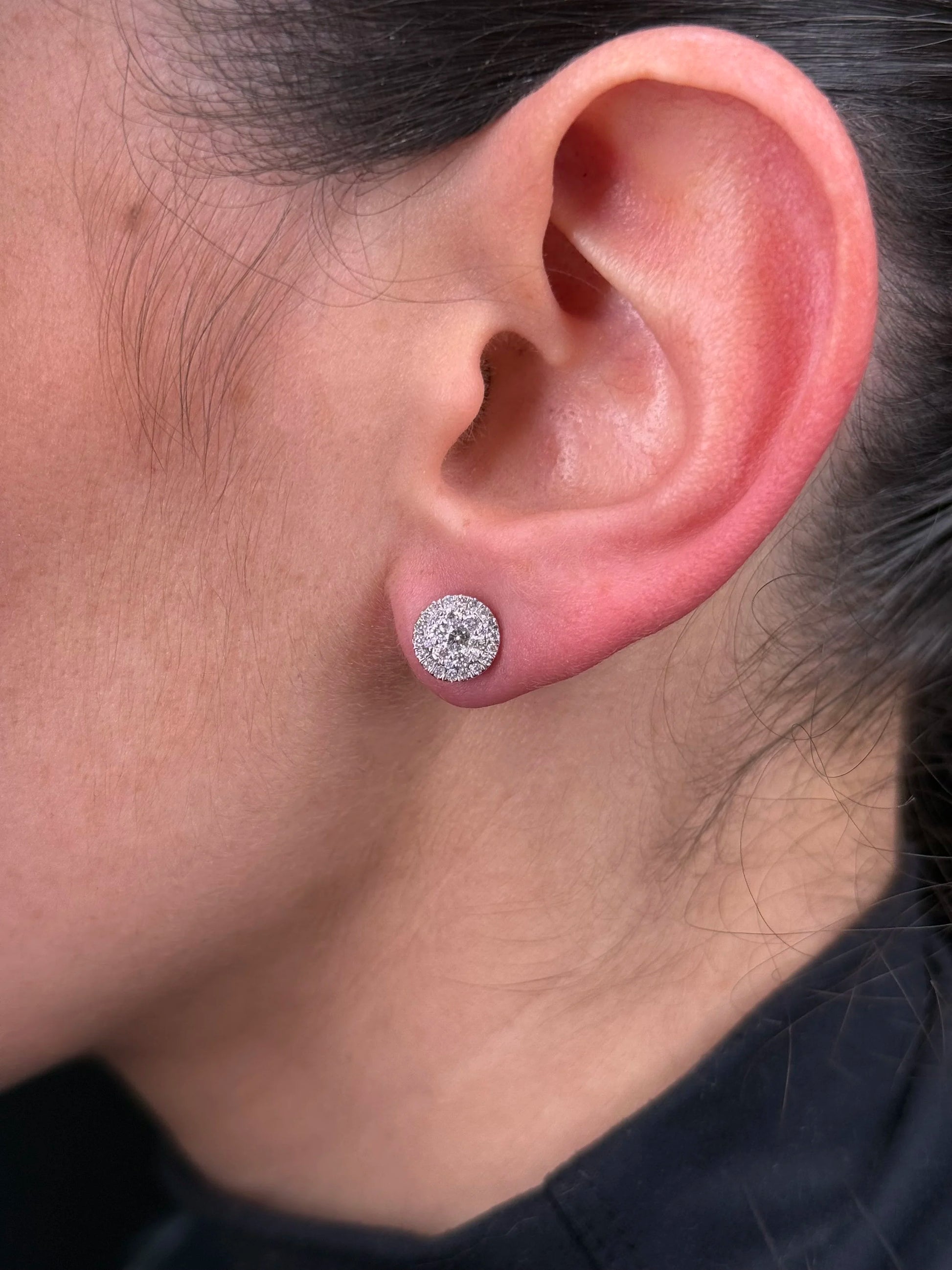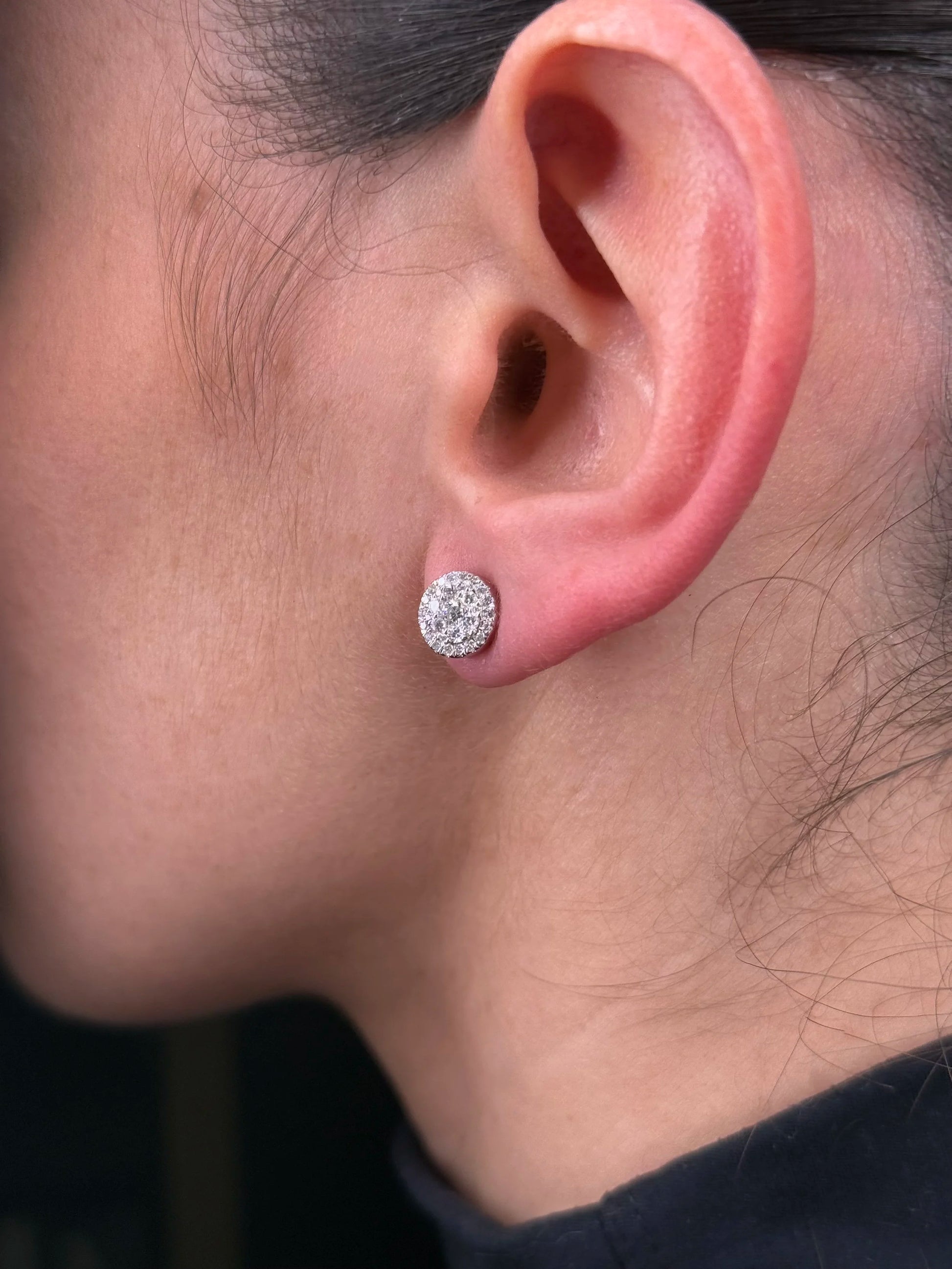 Ladies Small White Gold Cluster Round Diamond Earrings