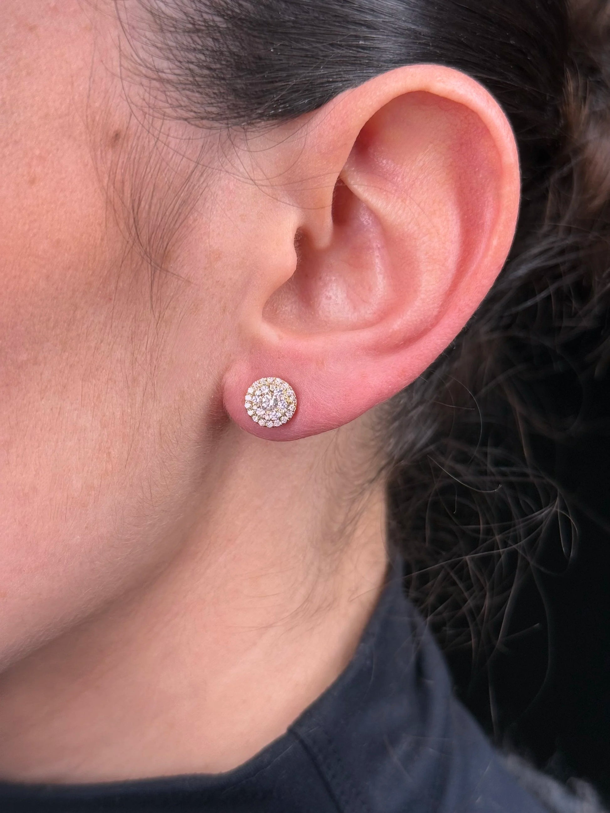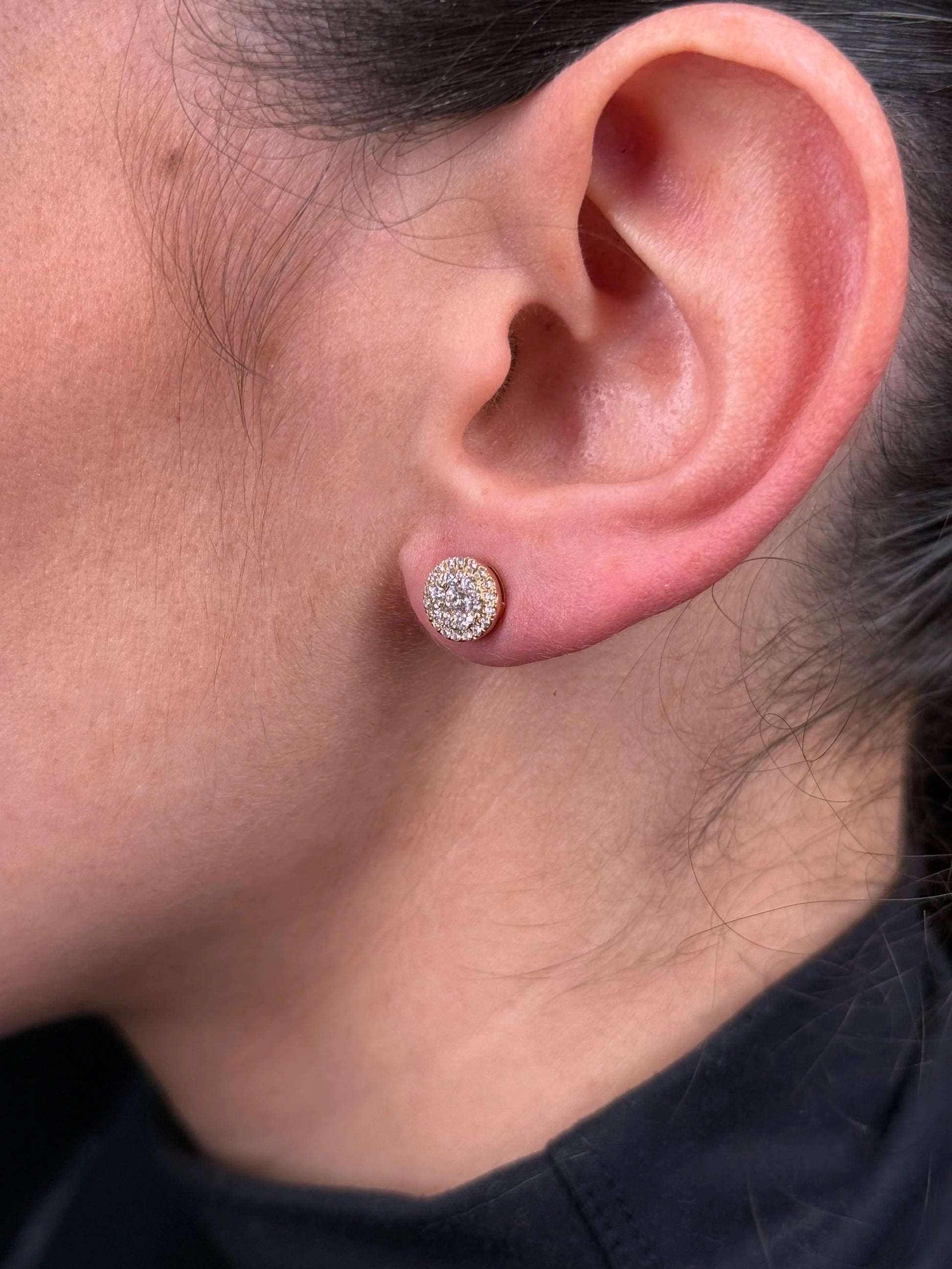 Ladies Small Yellow Gold Cluster Round Diamond Earrings