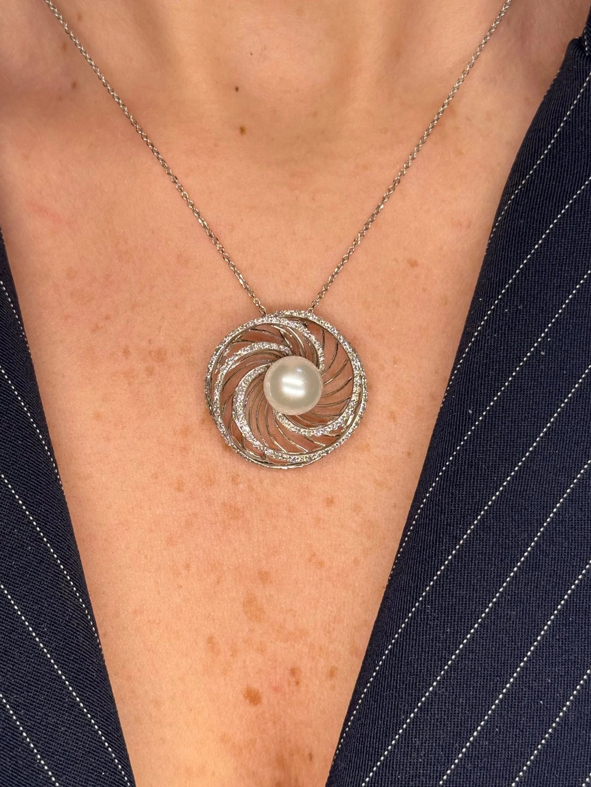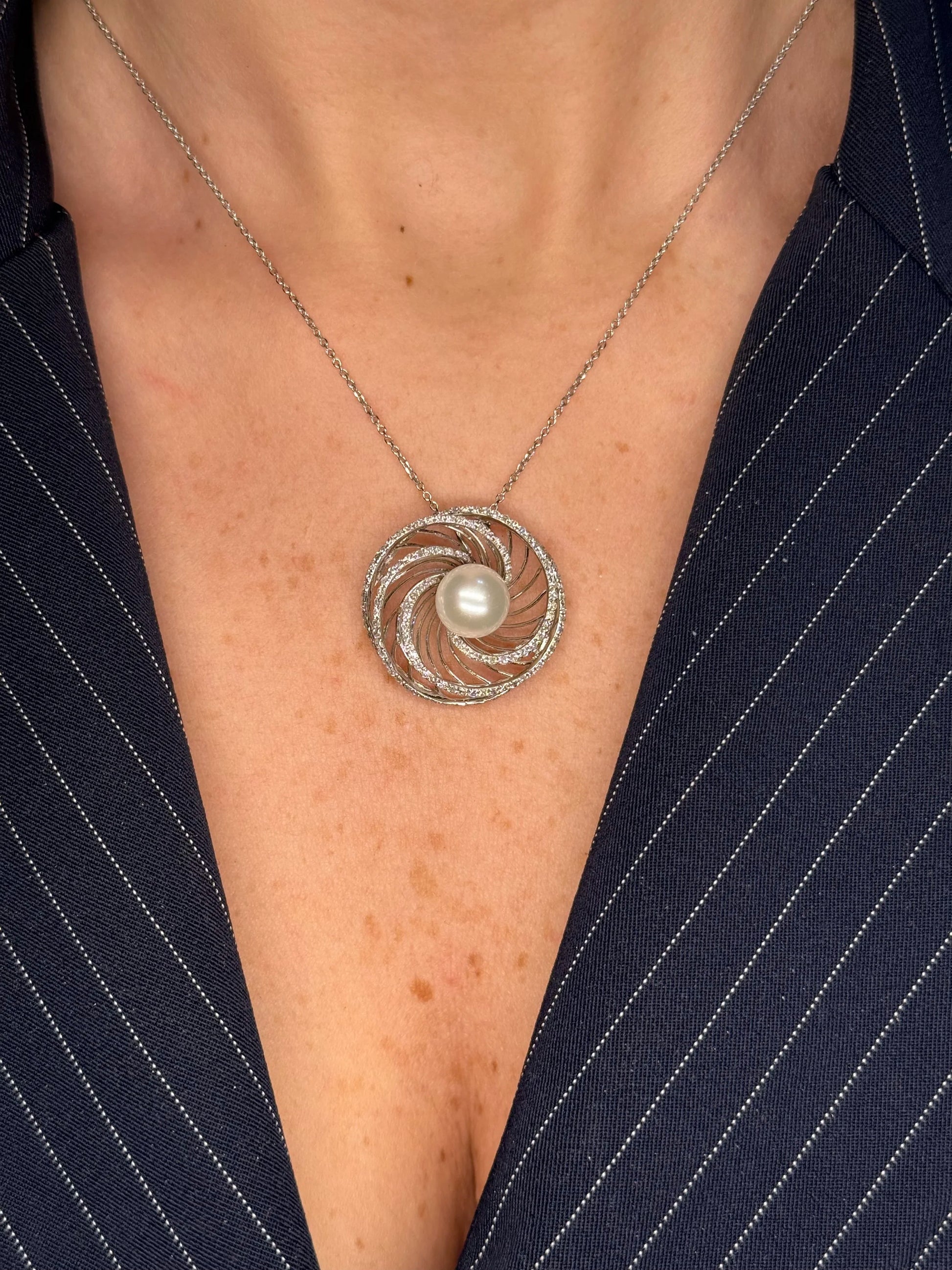 Ladies Spaced Out Diamond and Pearl Pendant