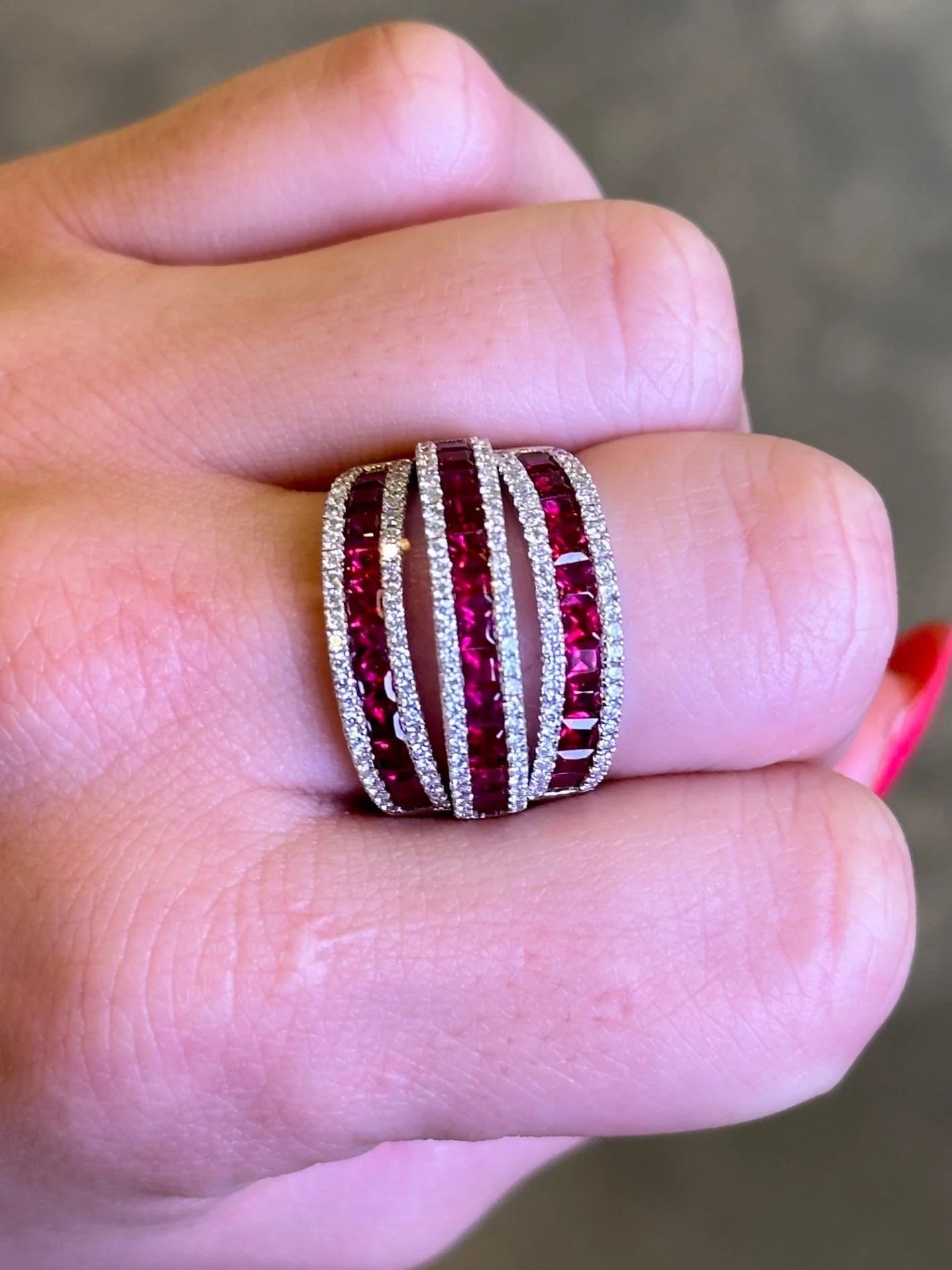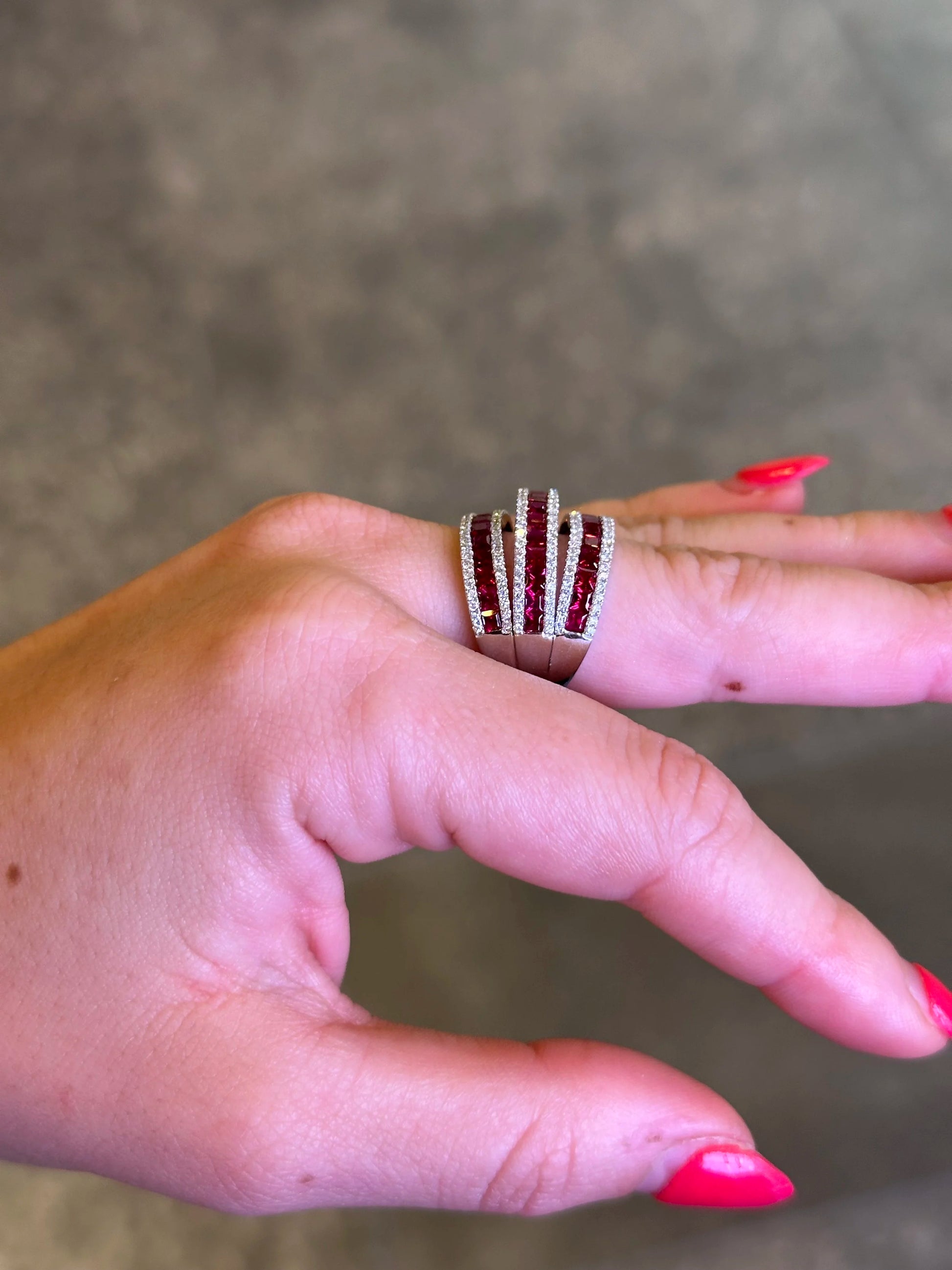 Ladies Split Ruby and Diamond Ring