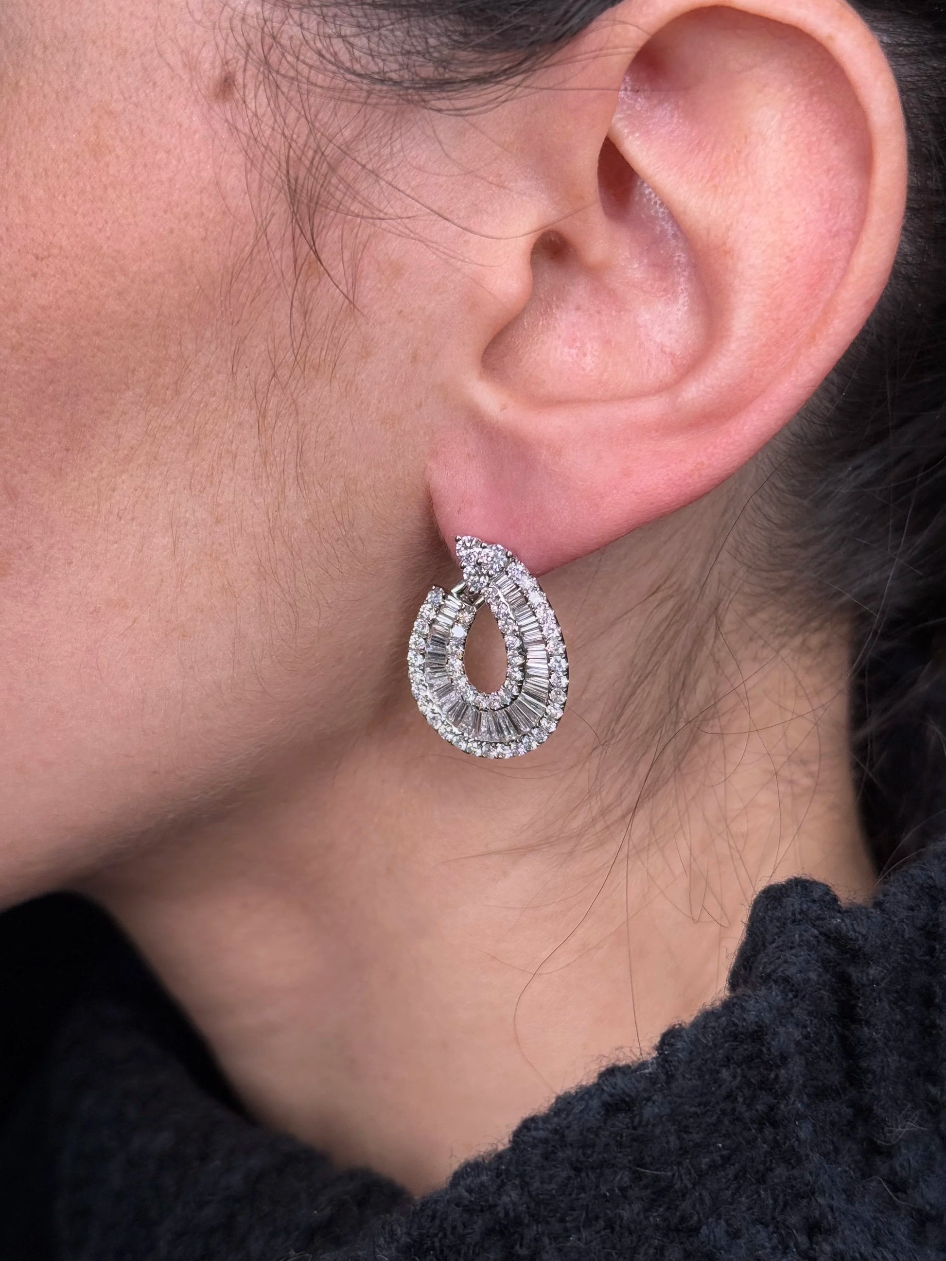 Ladies Thick Frontal Baguette and Round Diamond Earrings