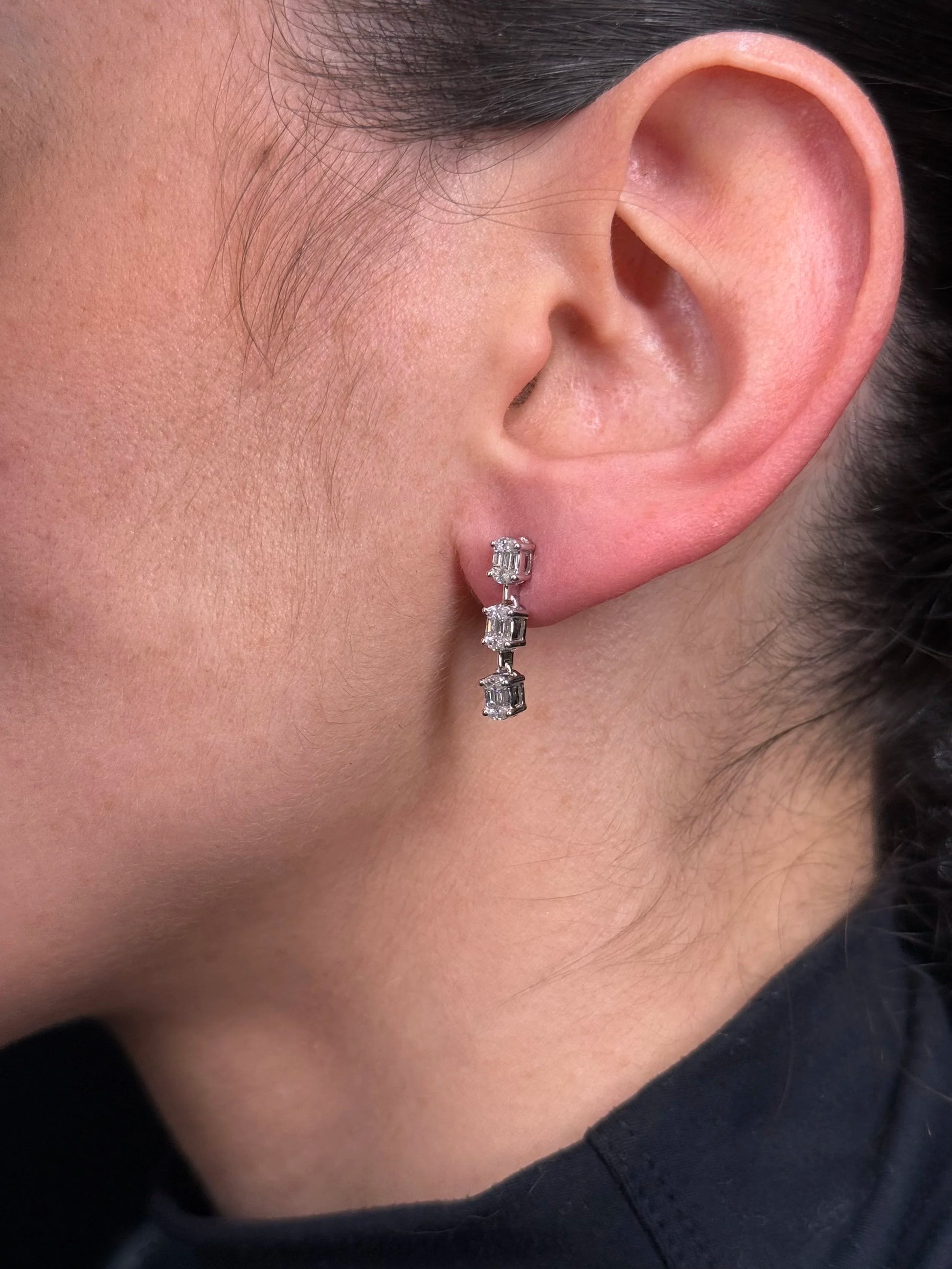 Ladies Three Piece Emerald Cluster Diamond Earrings