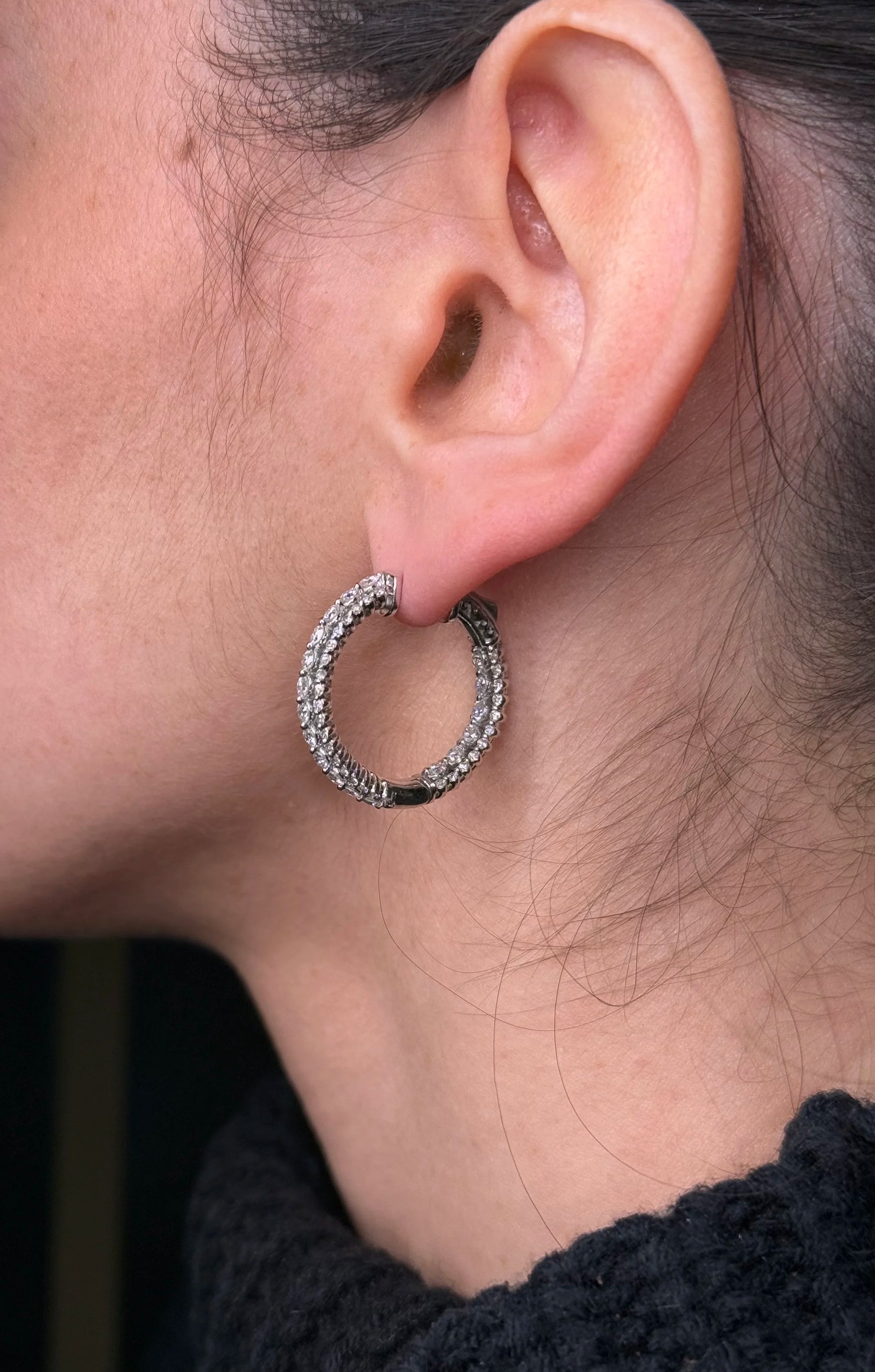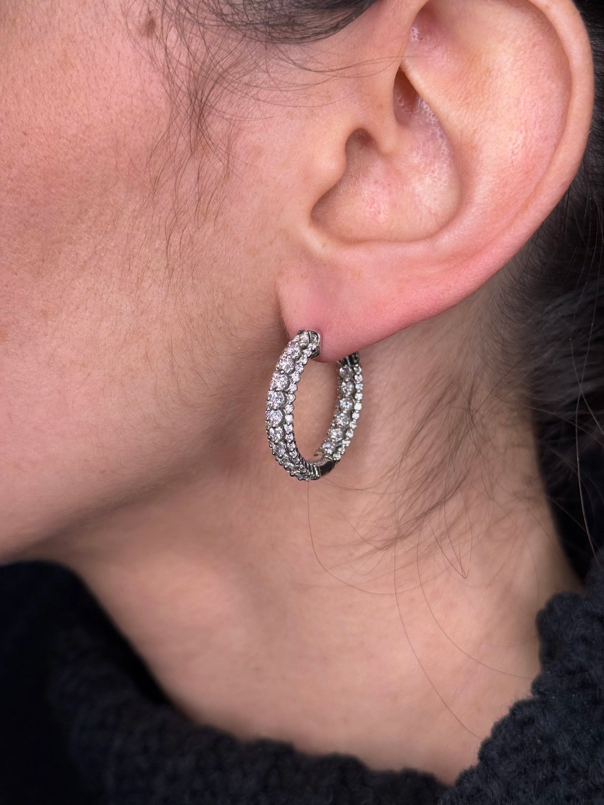 Ladies Three Row Round Diamond Hoops