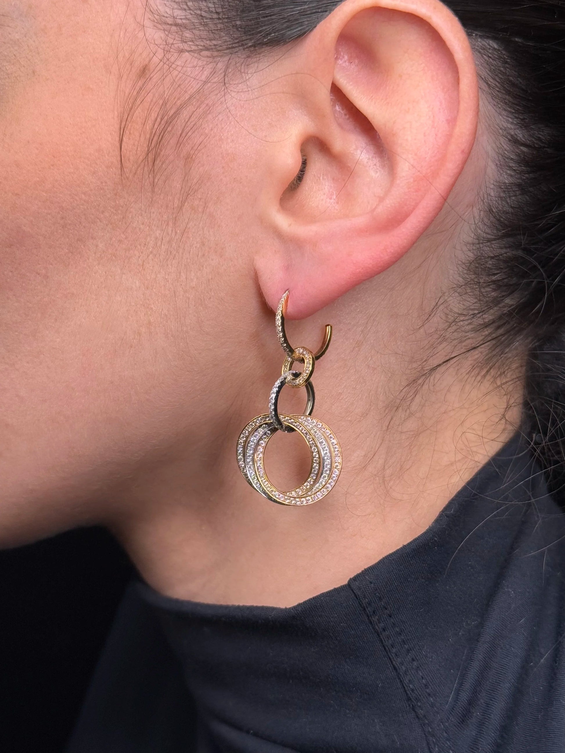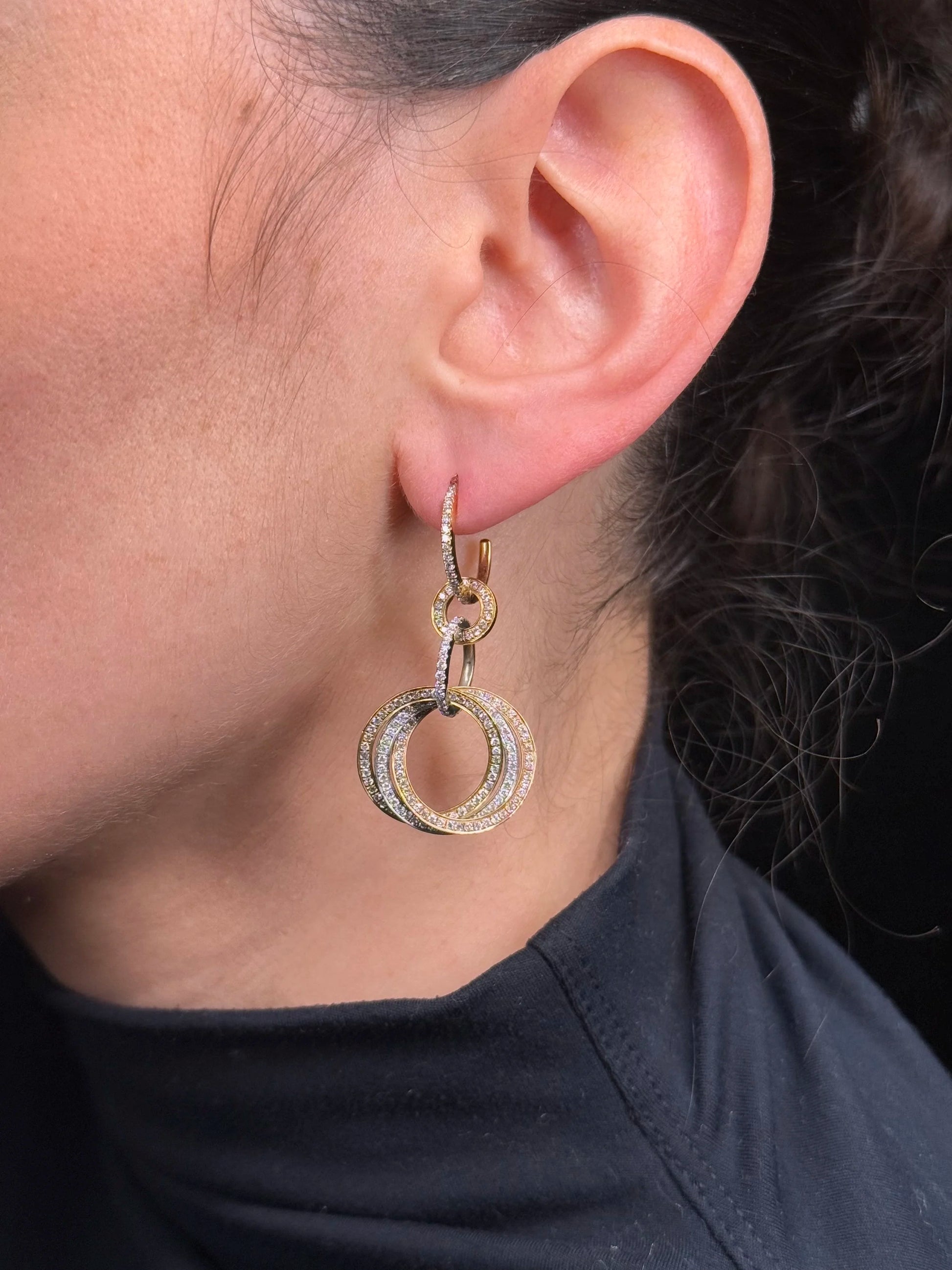 Ladies Trinity Pave Set White, Yellow, and Rose Gold Diamond Earrings