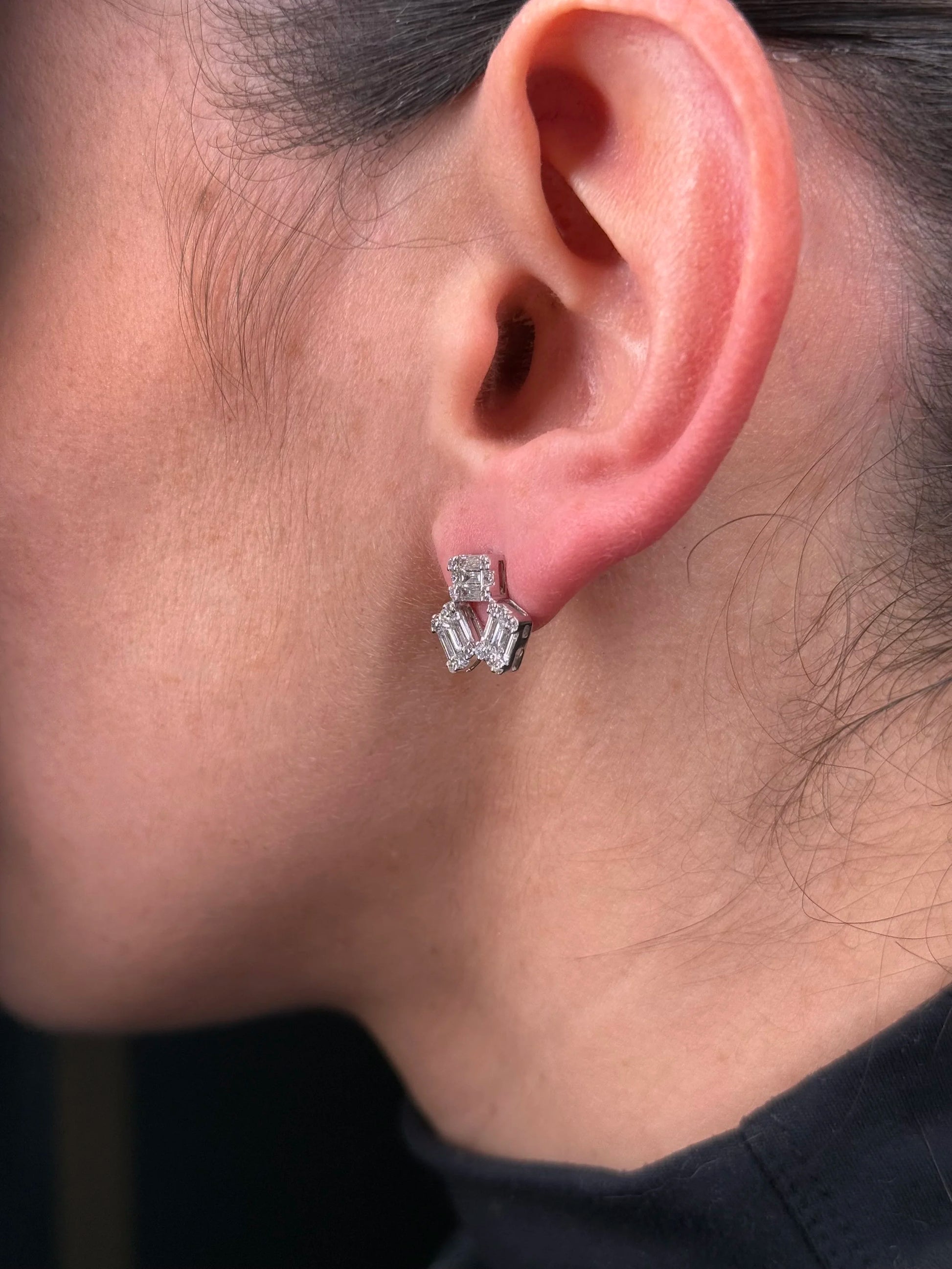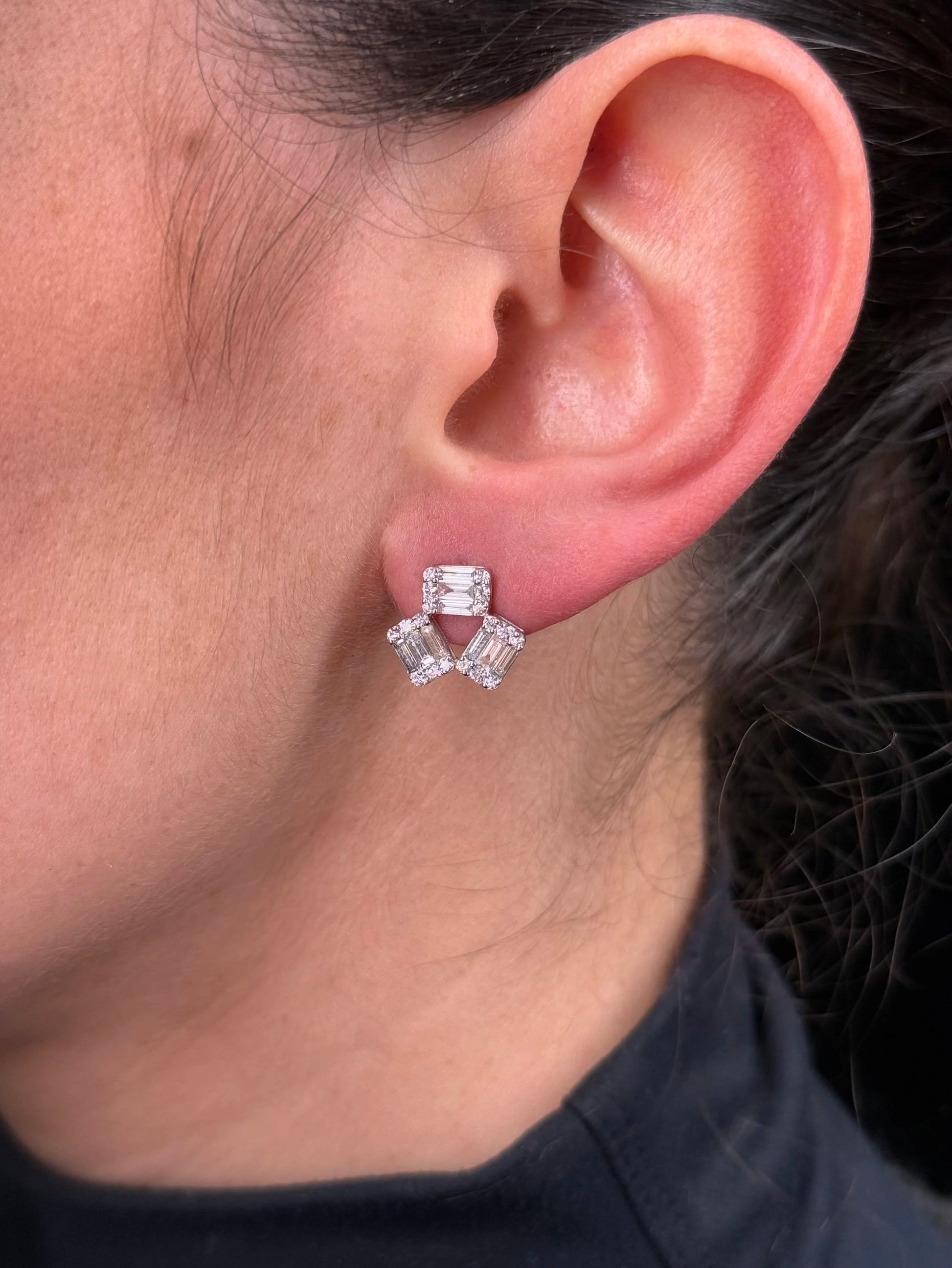 Ladies Triple Baguette and Round Diamond Earrings