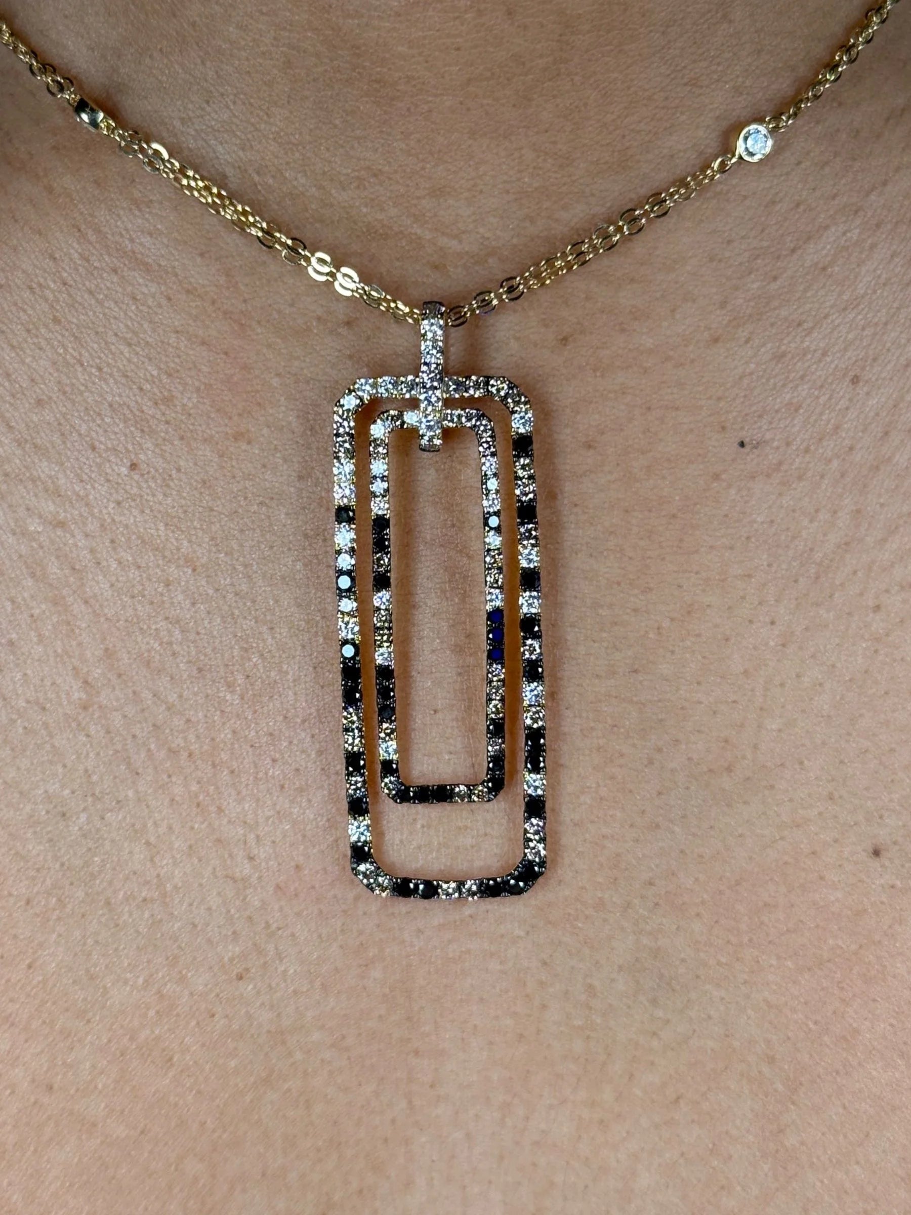 Ladies Two Layer Rectangular Shape Multicolor Diamond Pendant