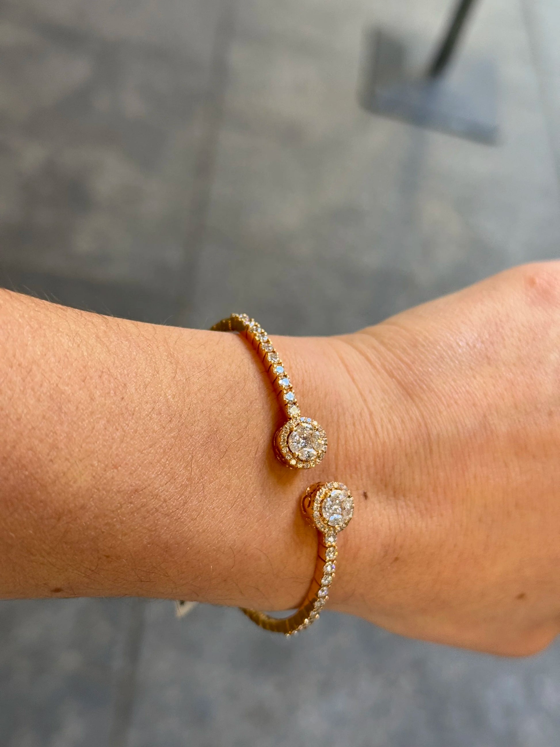 Ladies Two Round Diamond Cluster Cuff with Halo