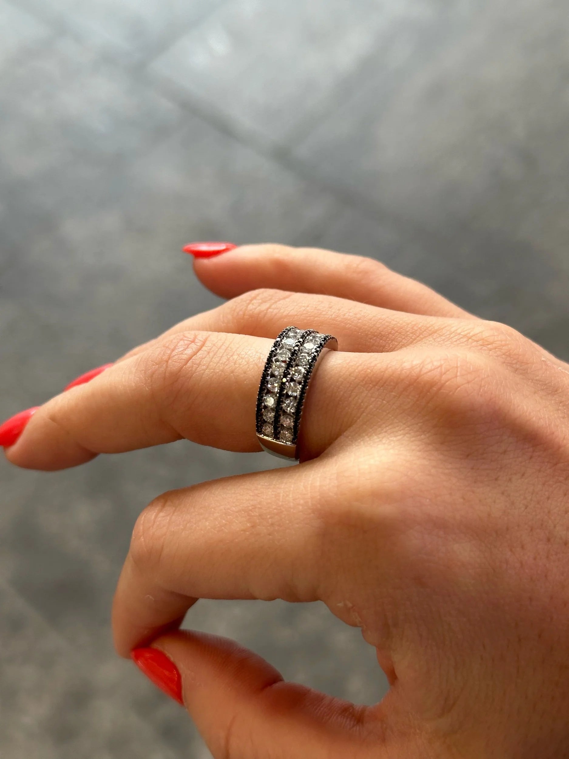 Ladies Two Row Black Diamond and Round Diamond Ring