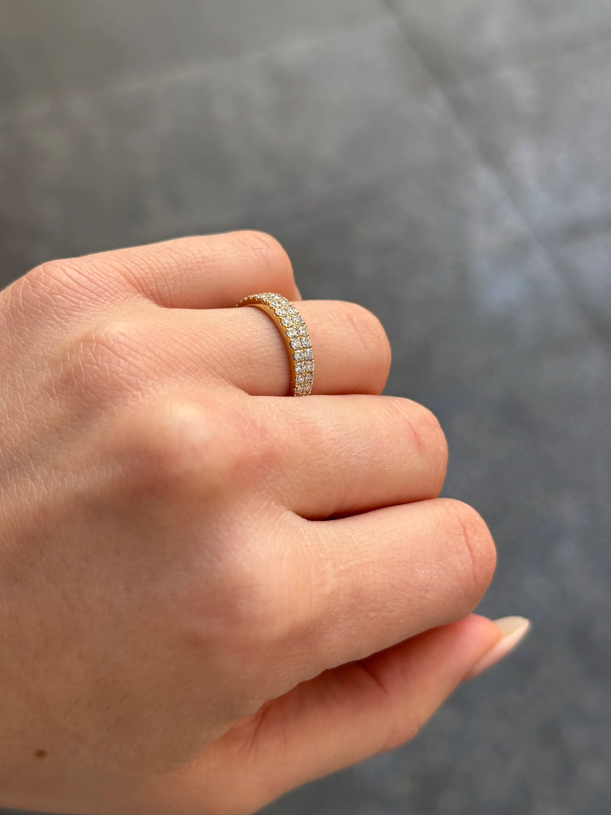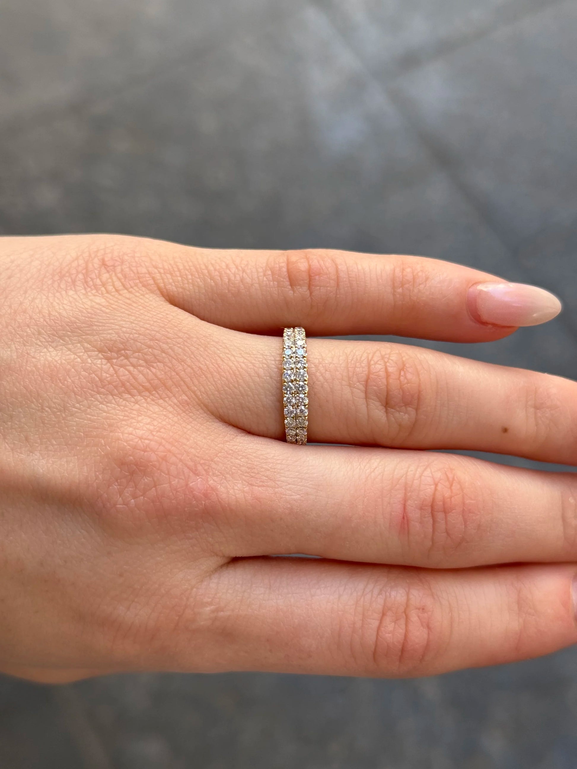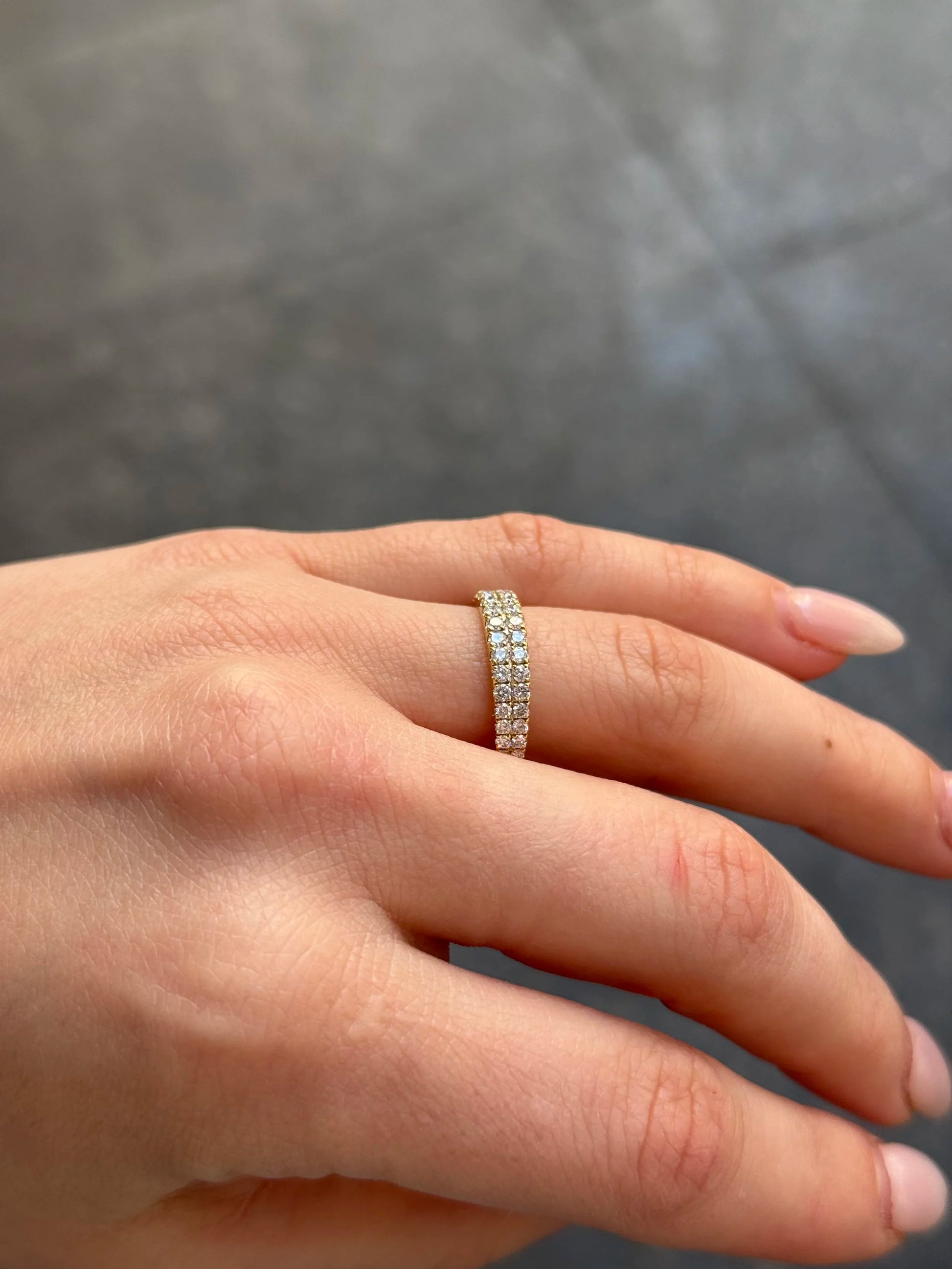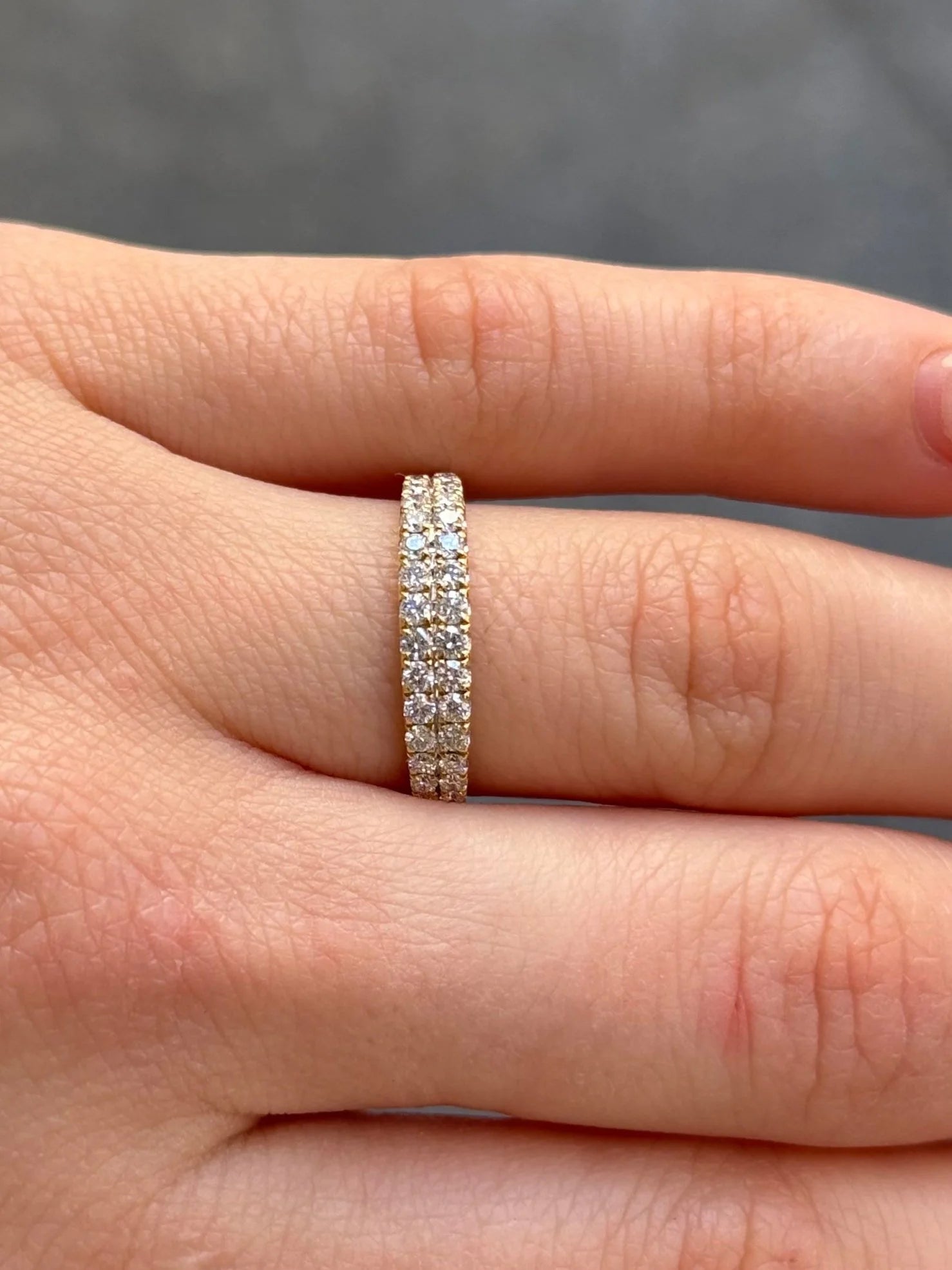 Ladies Two Row Yellow Gold and Diamond Wedding Band