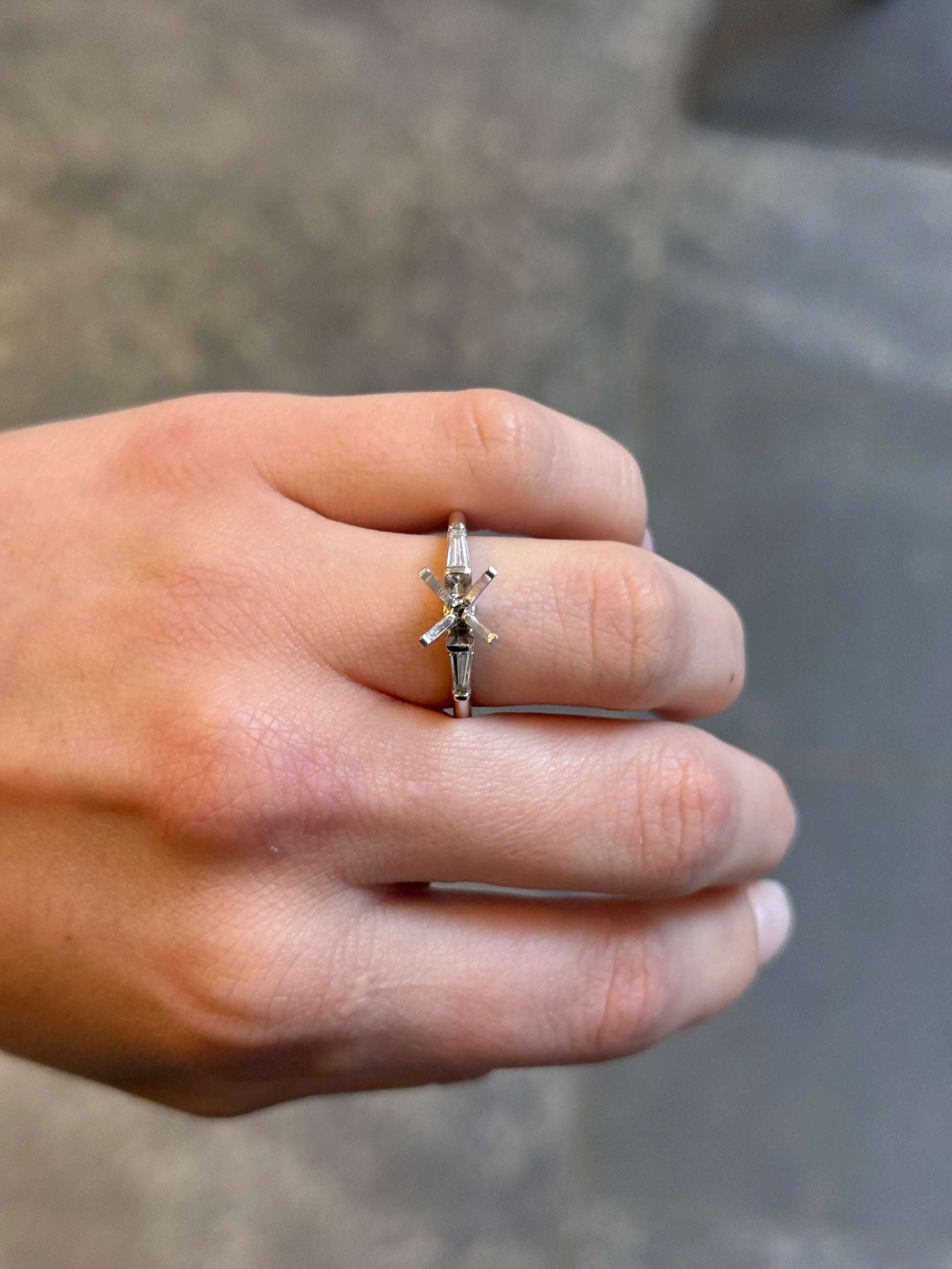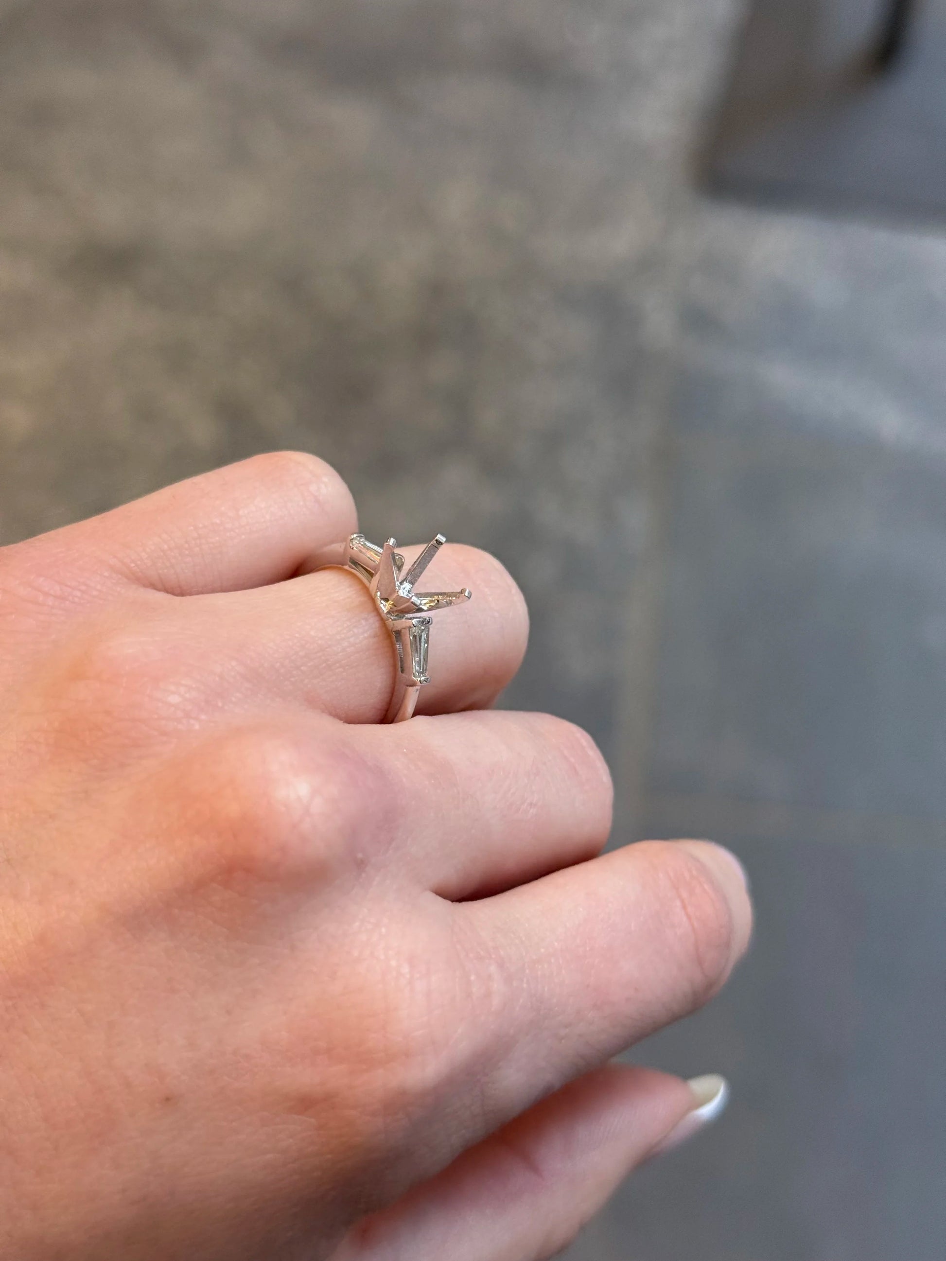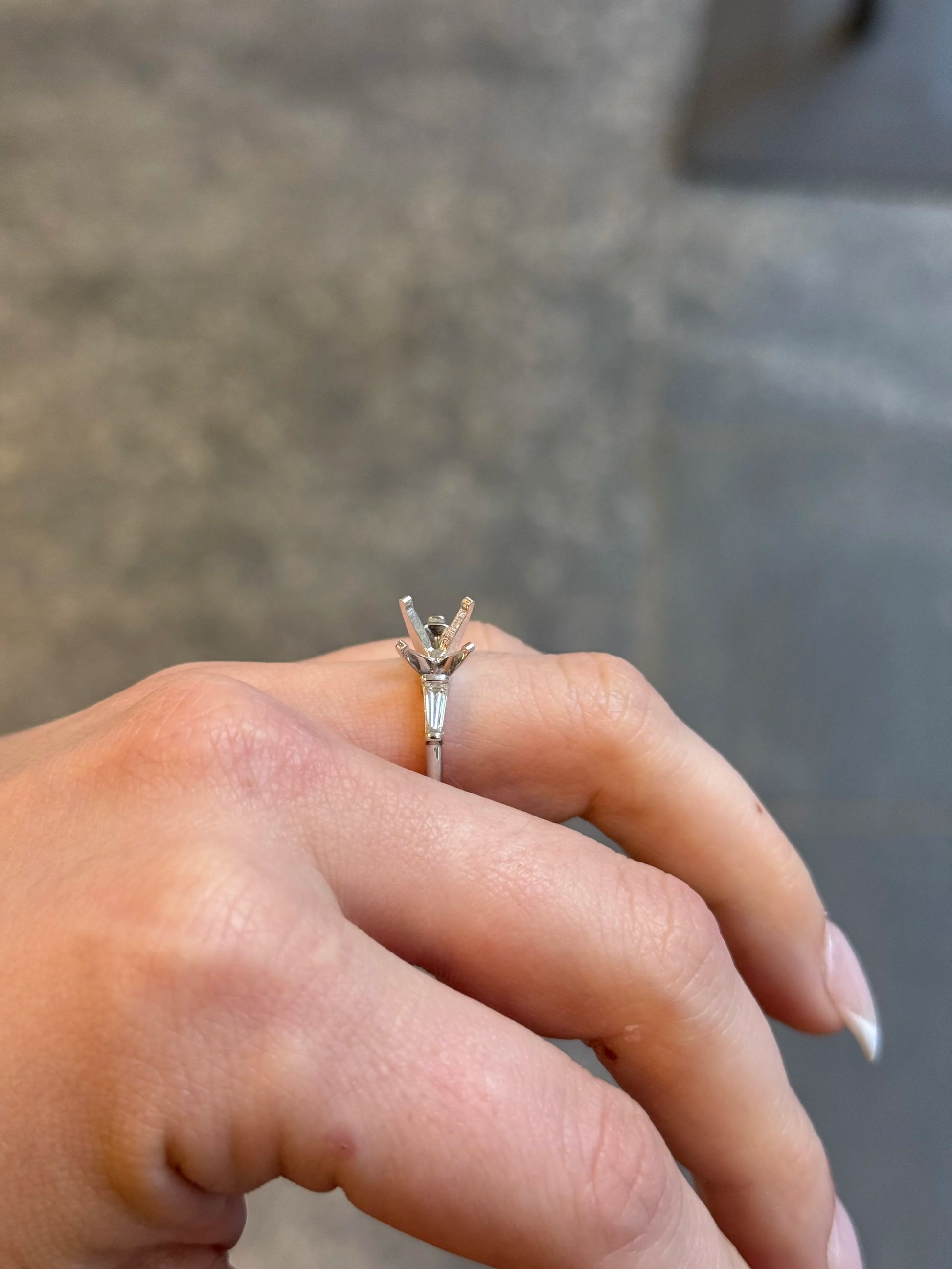 Ladies White Gold and Baguette Side Stone Engagement Ring