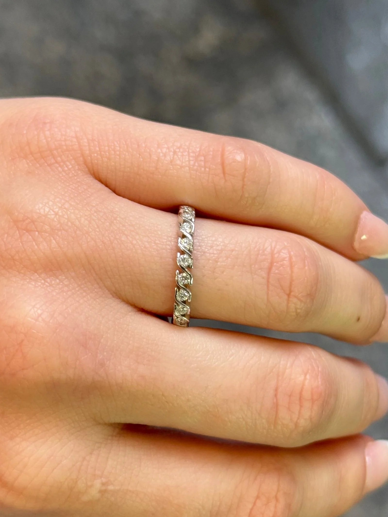Ladies White Gold Curved Channel Set Diamond Wedding Band